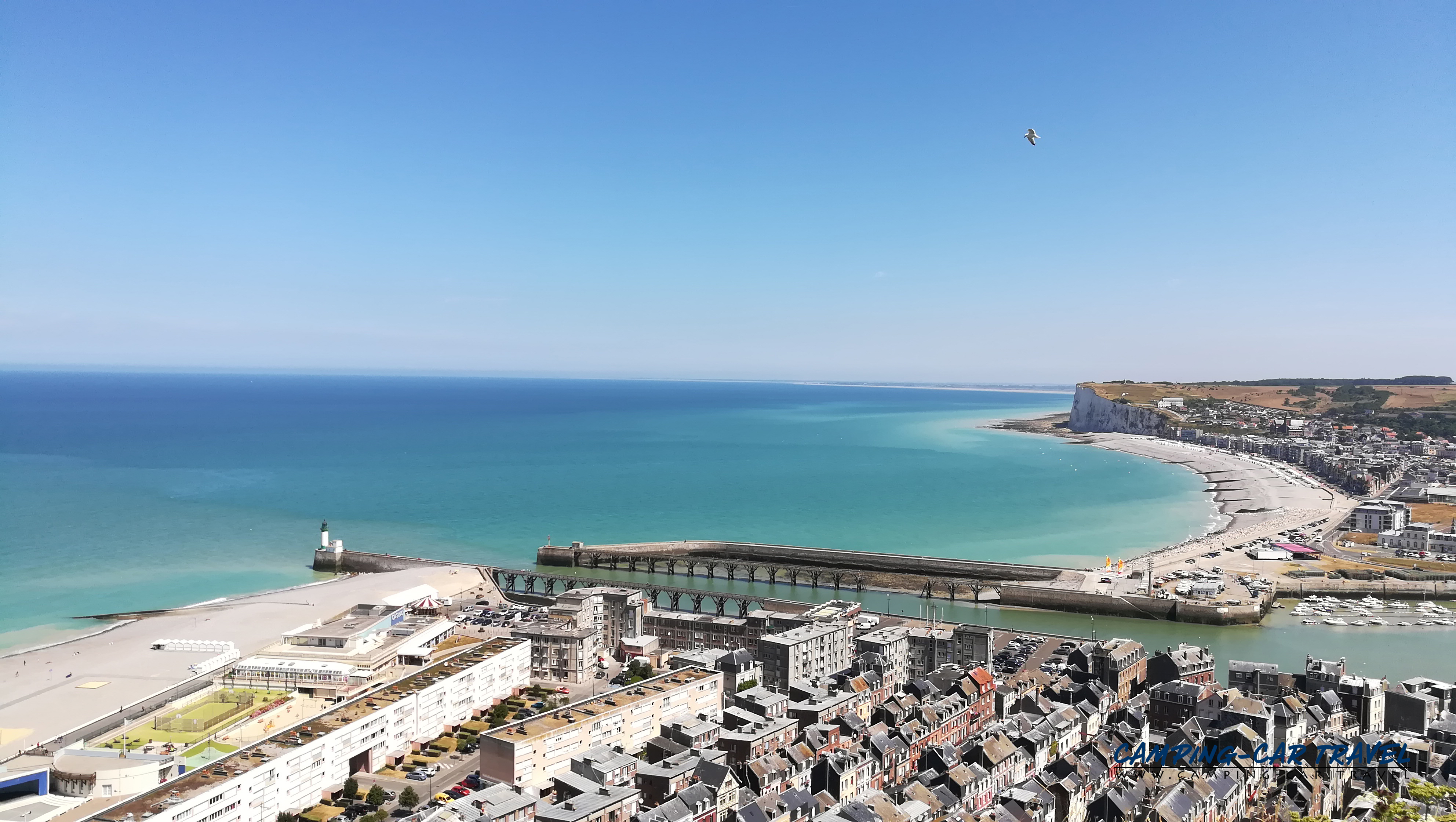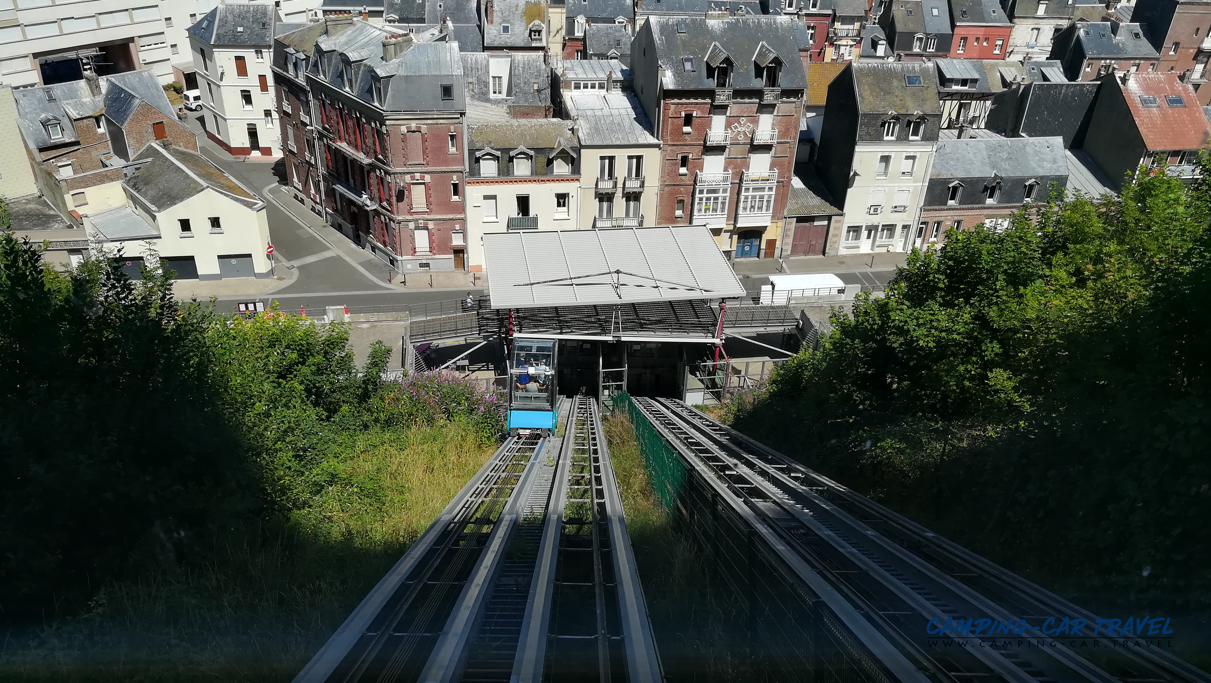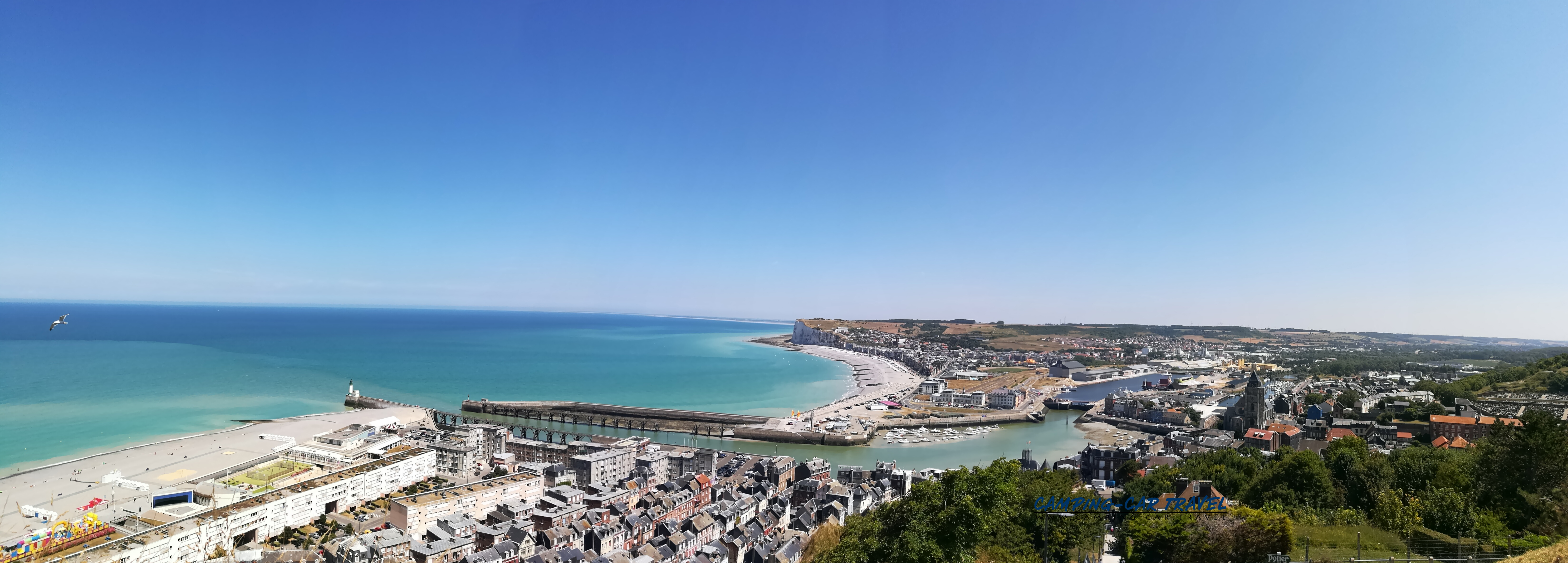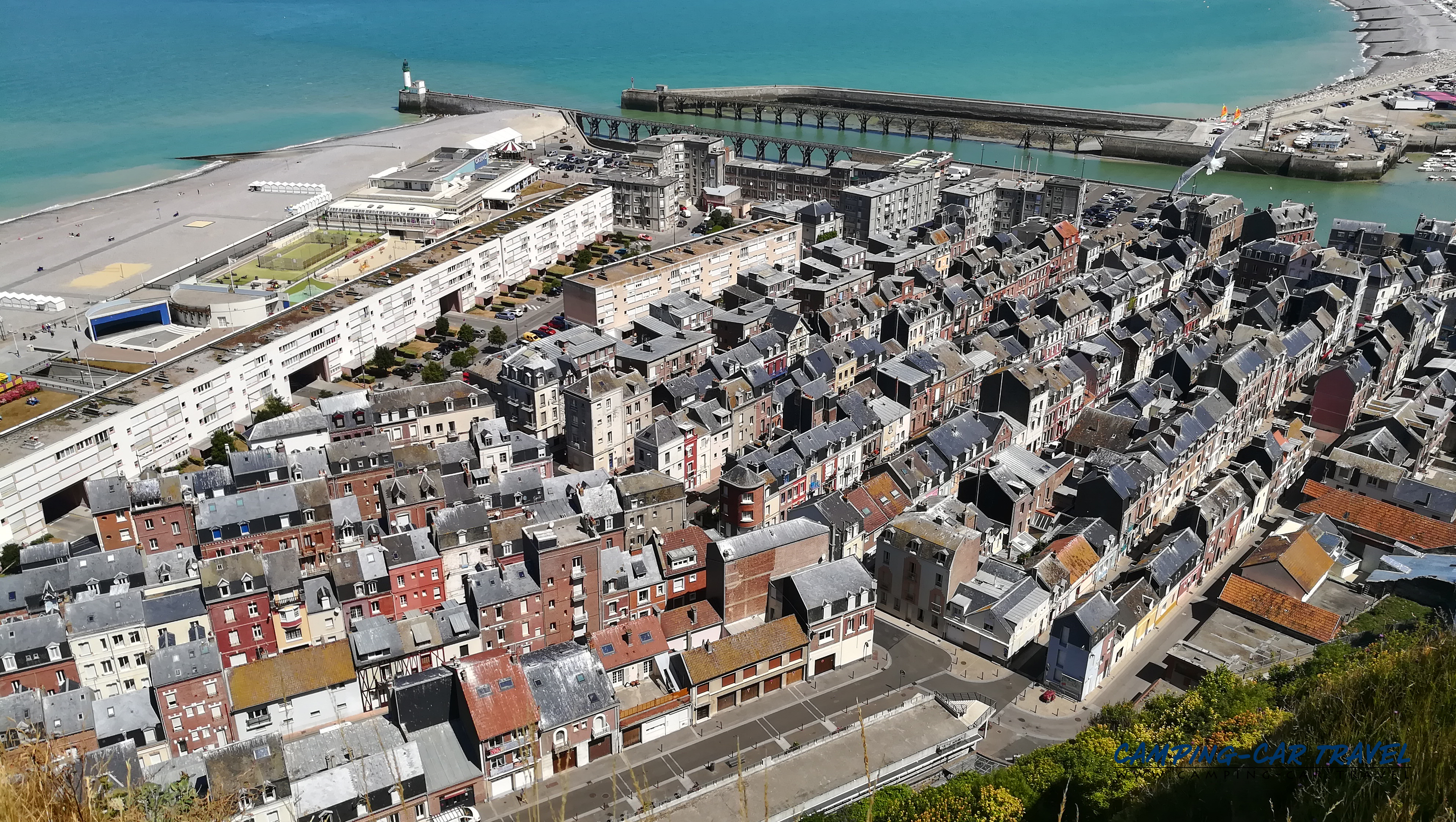 Le Tréport, en Seine-Maritime, est une destination prisée des camping-caristes. L’une des deux aires de la ville est située en haut de la falaise à coté du funiculaire que l’on peut emprunter gratuitement pour se rendre dans le centre. La vue de la haut est très jolie.