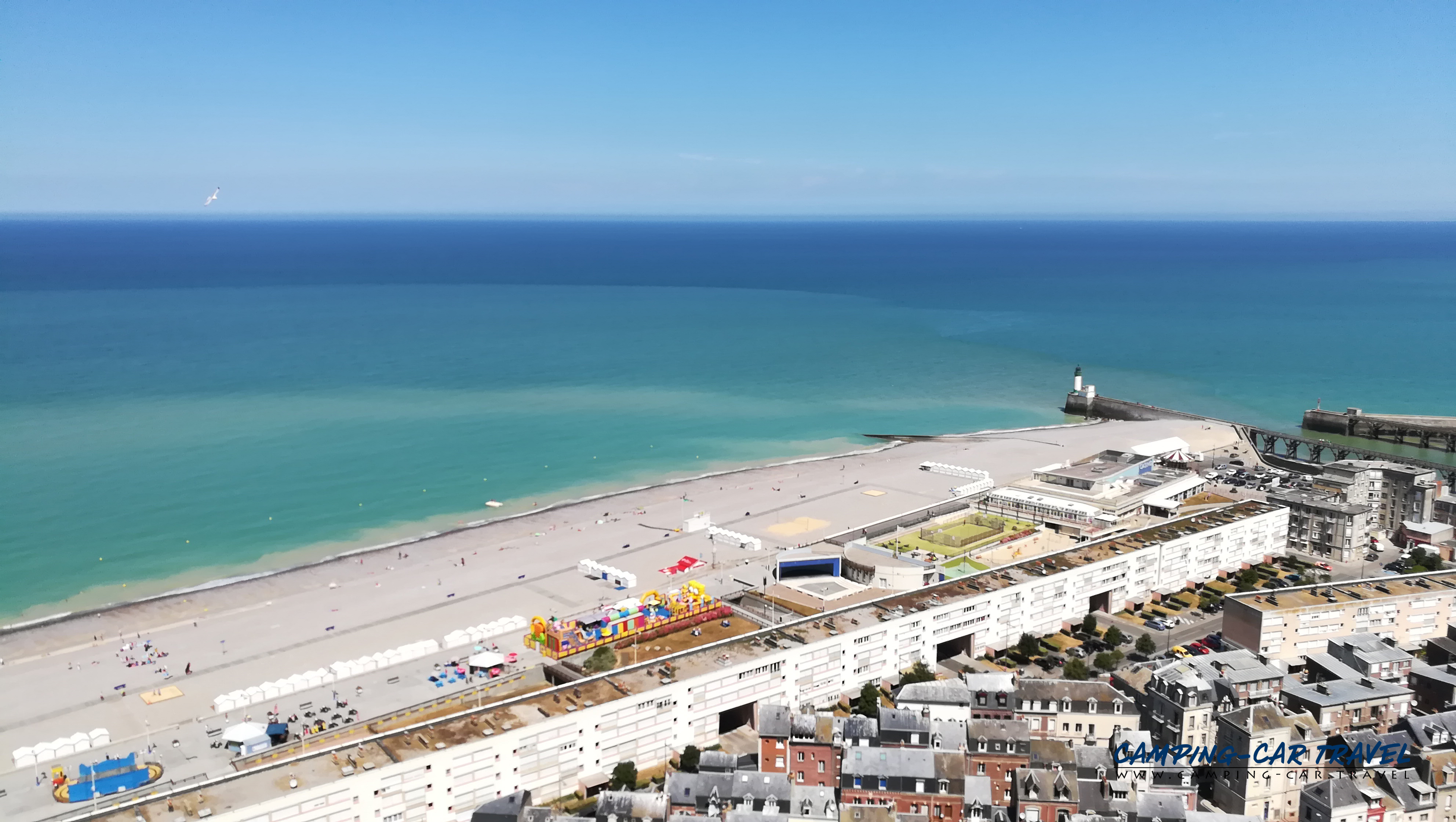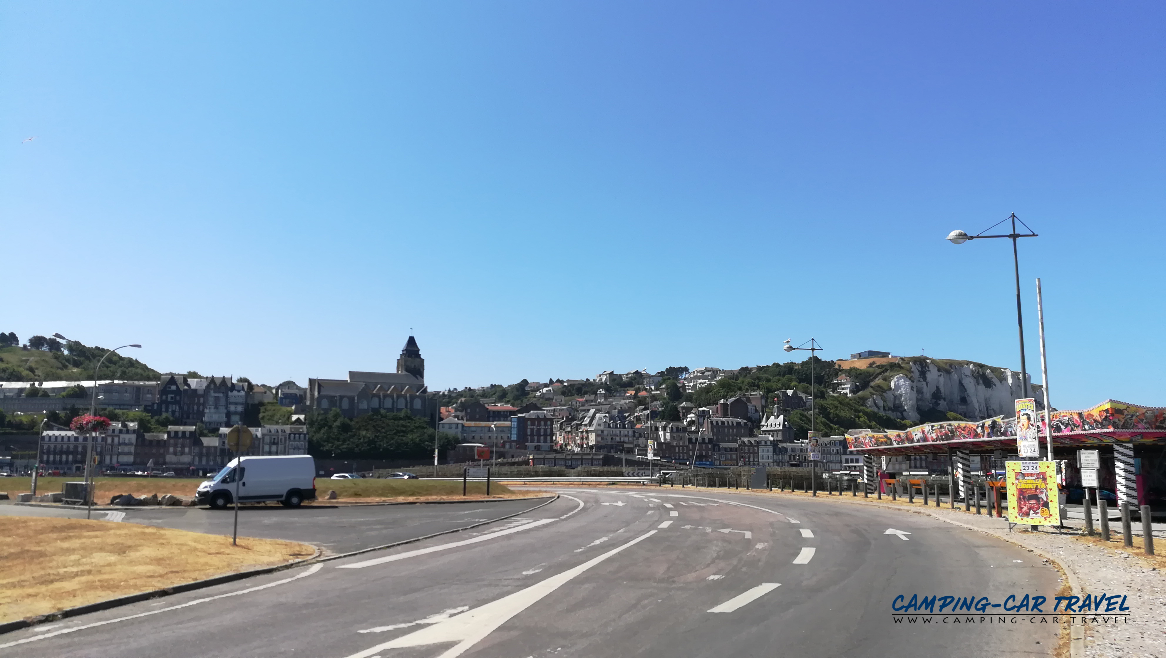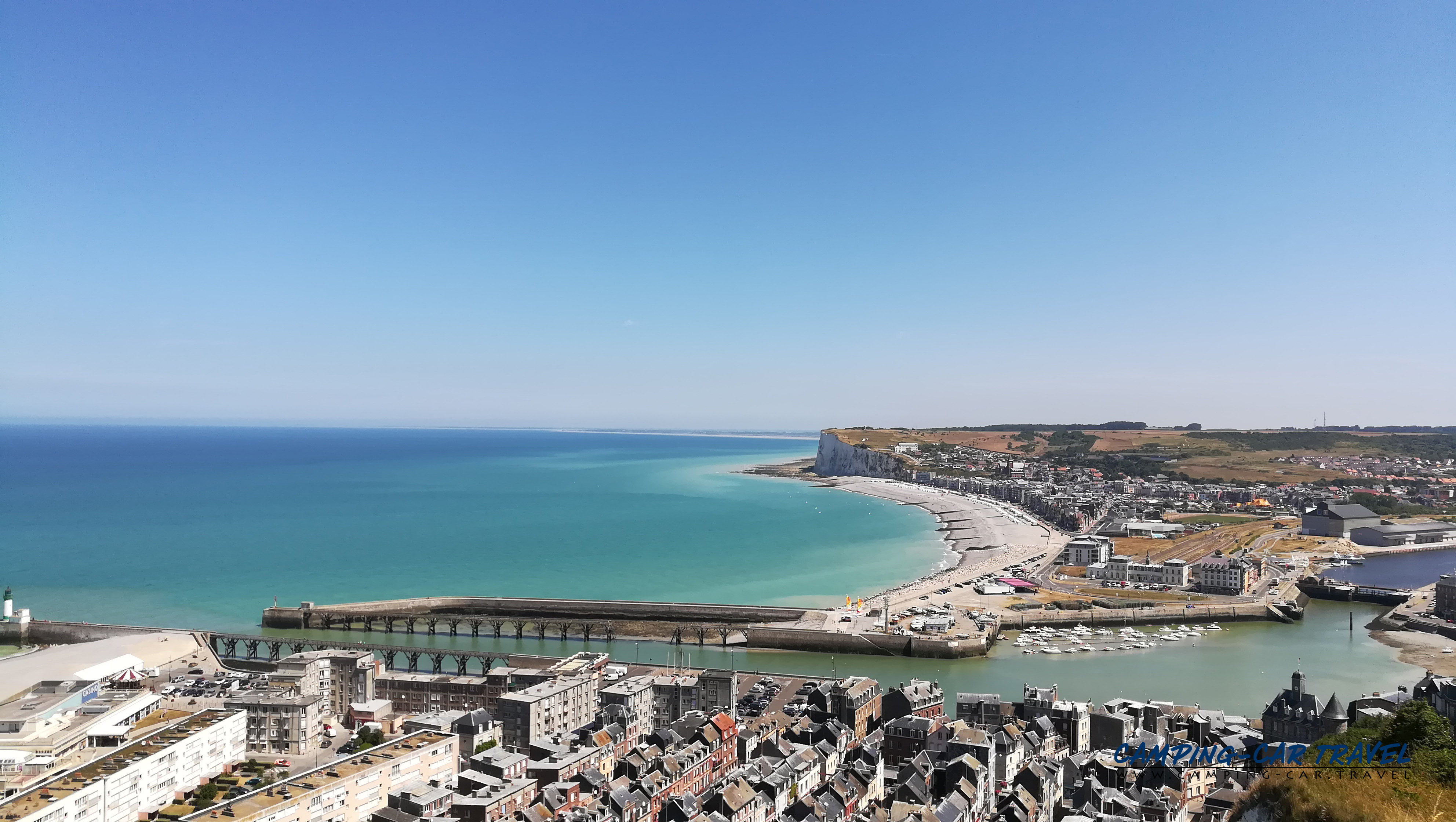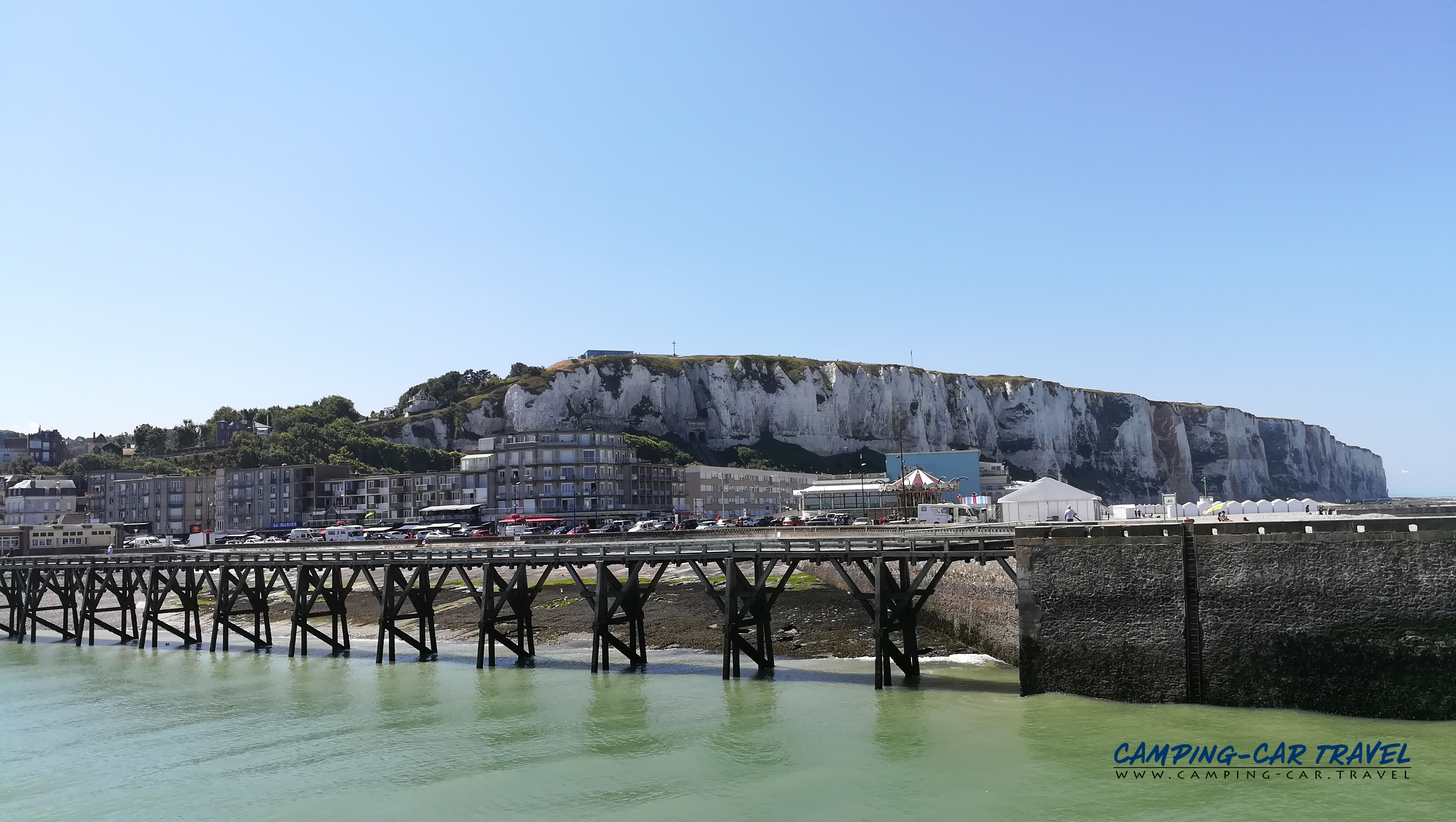 Le Tréport, en Seine-Maritime, est une destination prisée des camping-caristes. L’une des deux aires de la ville est située en haut de la falaise à coté du funiculaire que l’on peut emprunter gratuitement pour se rendre dans le centre. La vue de la haut est très jolie.