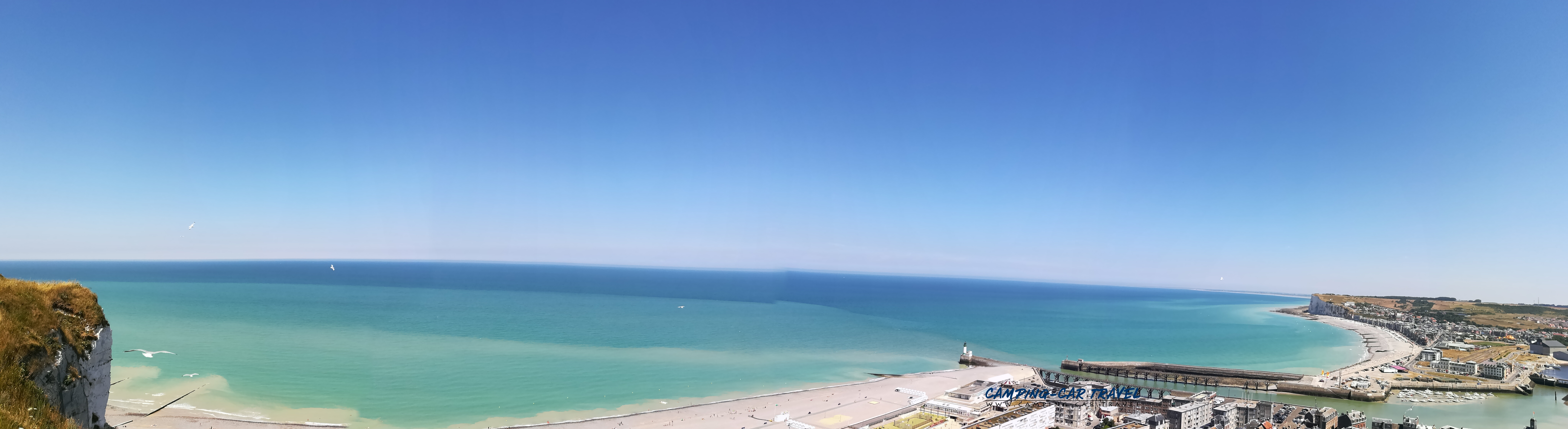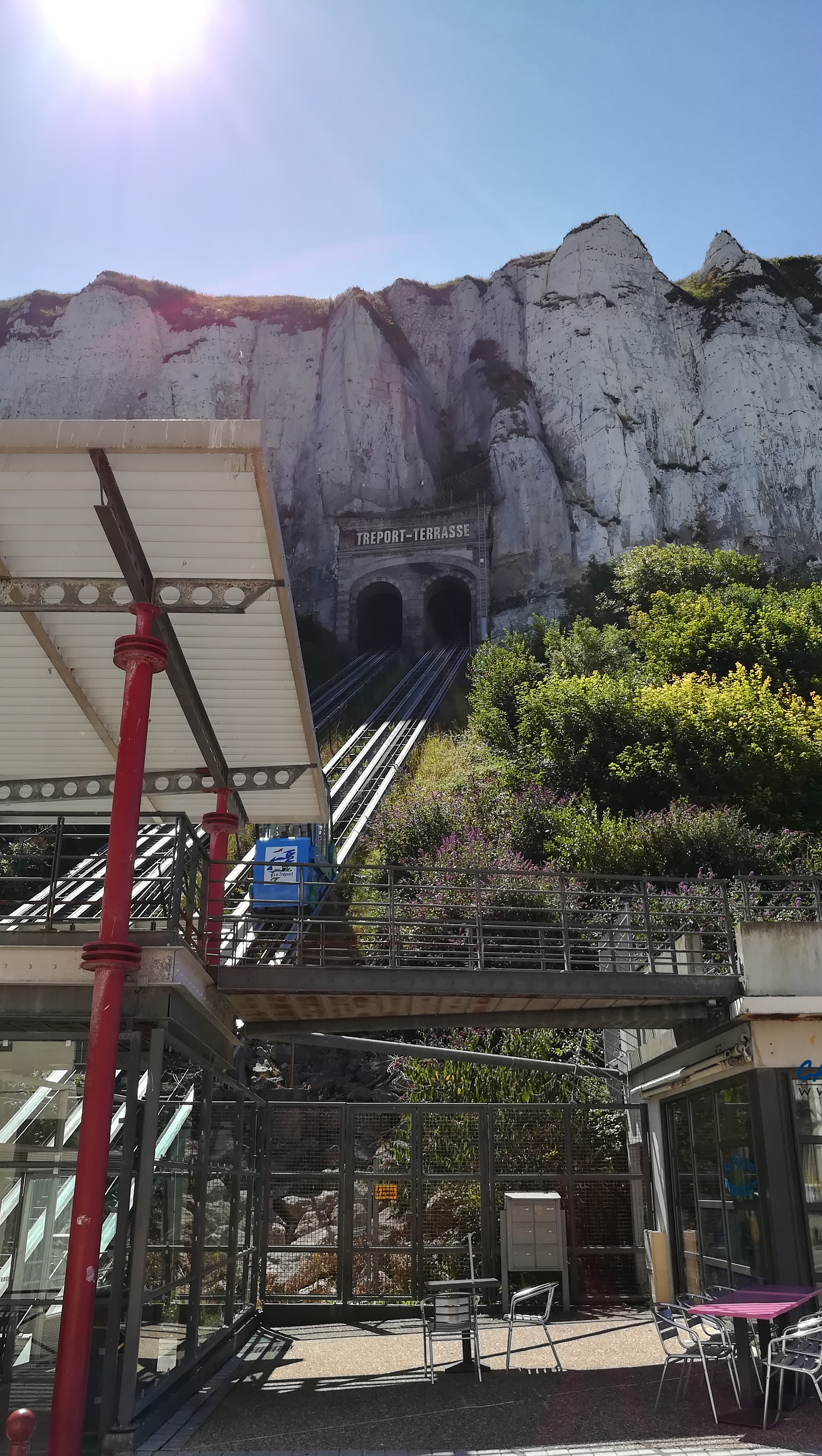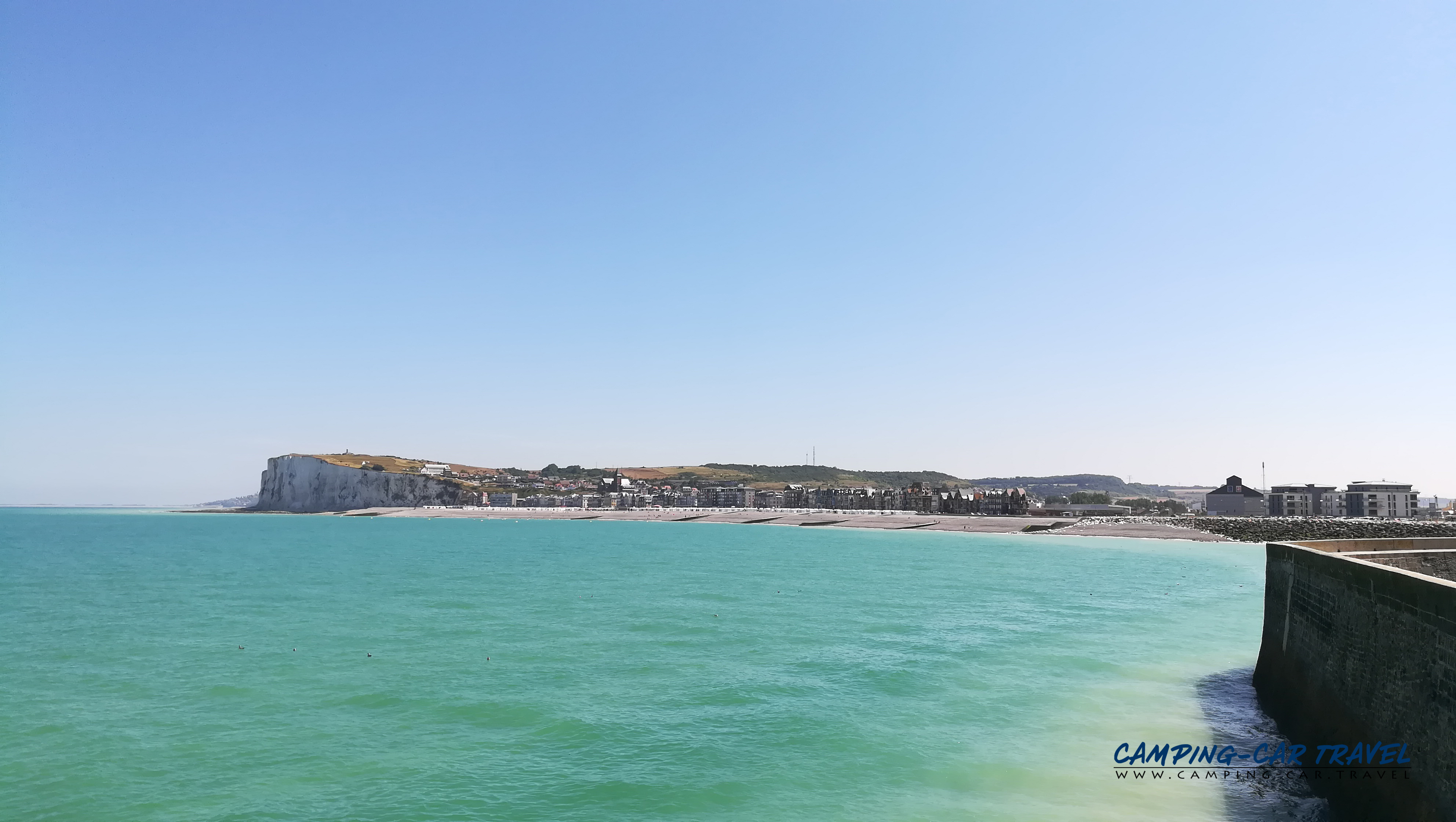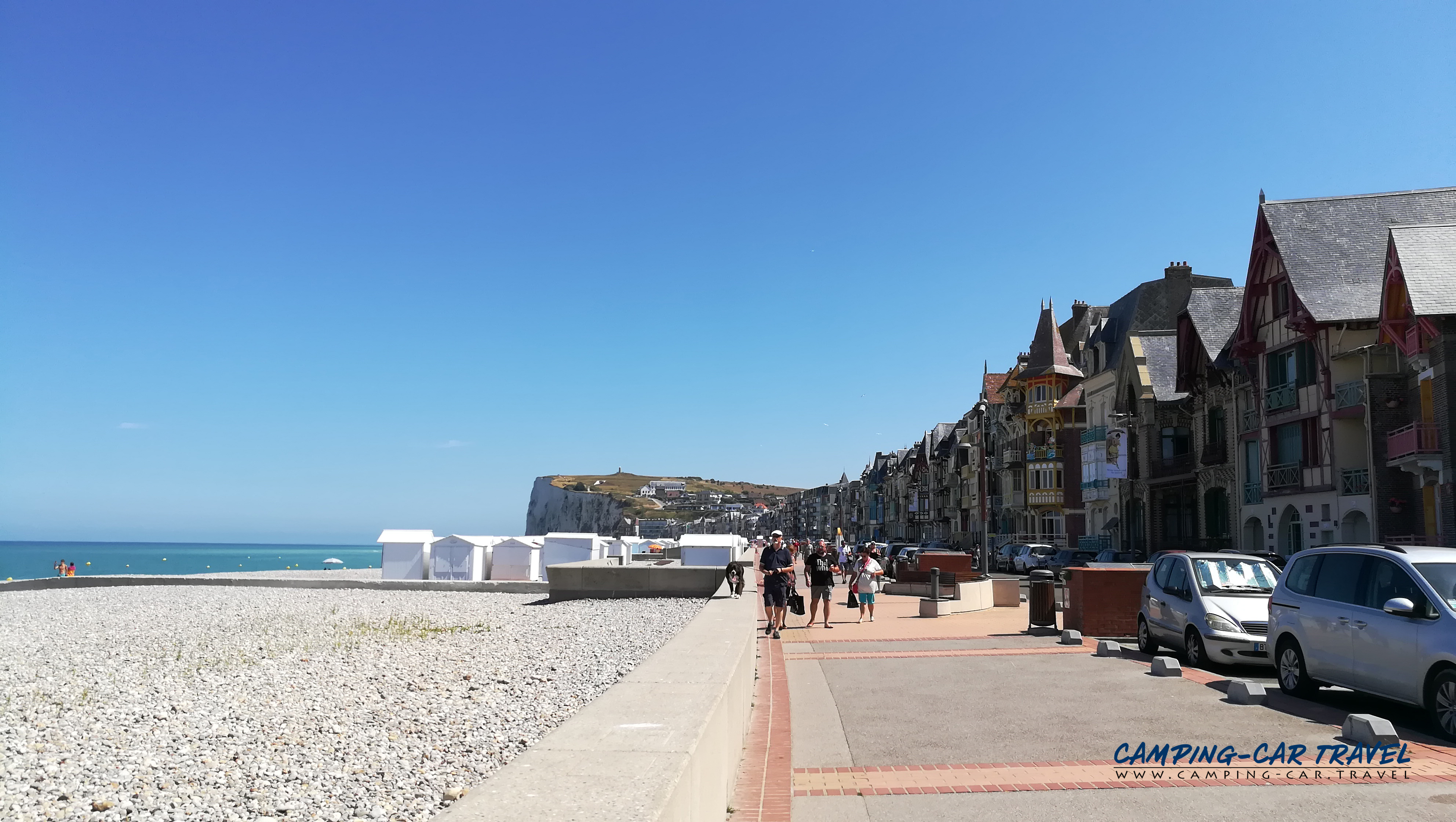 Le Tréport, en Seine-Maritime, est une destination prisée des camping-caristes. L’une des deux aires de la ville est située en haut de la falaise à coté du funiculaire que l’on peut emprunter gratuitement pour se rendre dans le centre. La vue de la haut est très jolie.