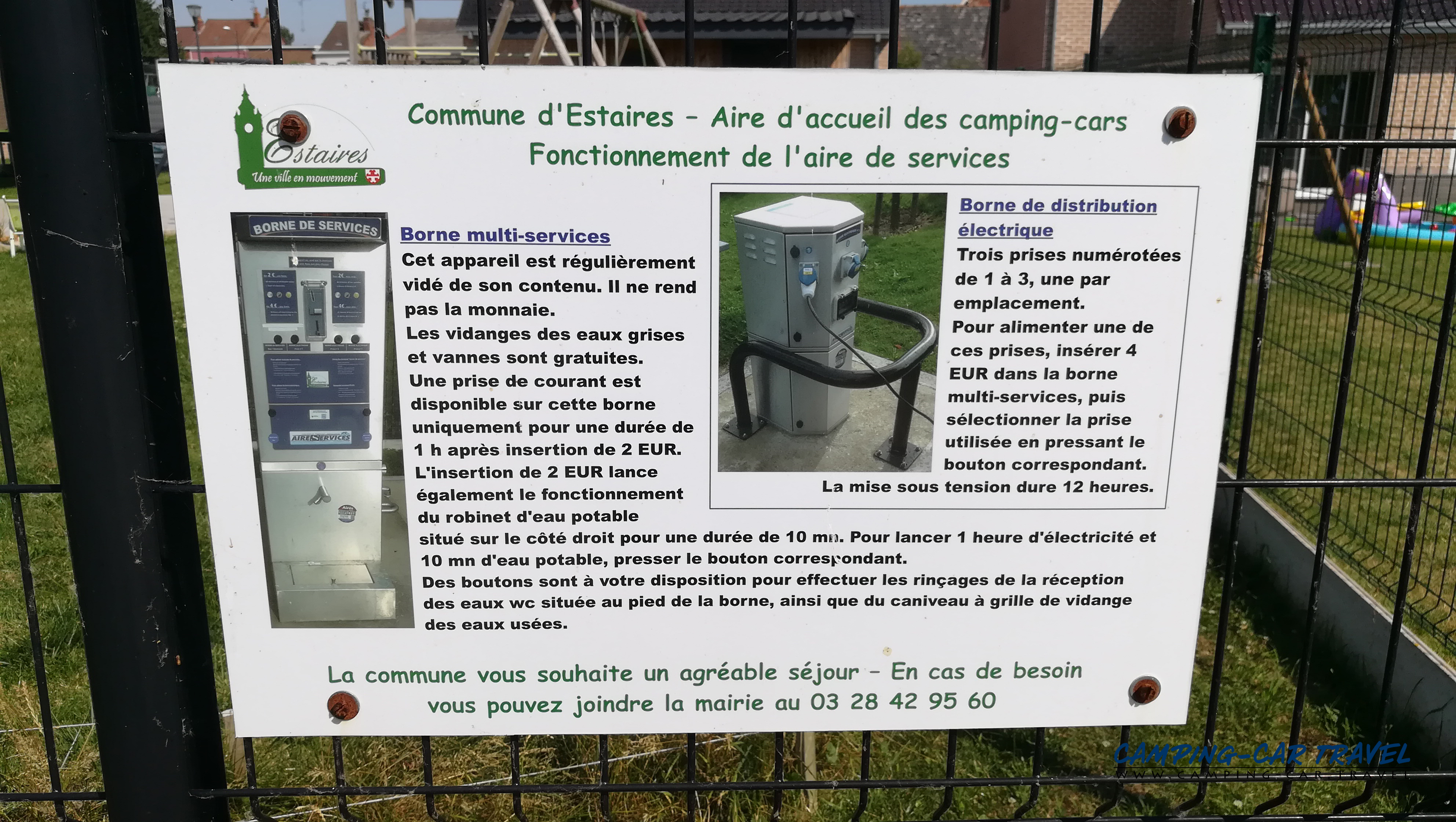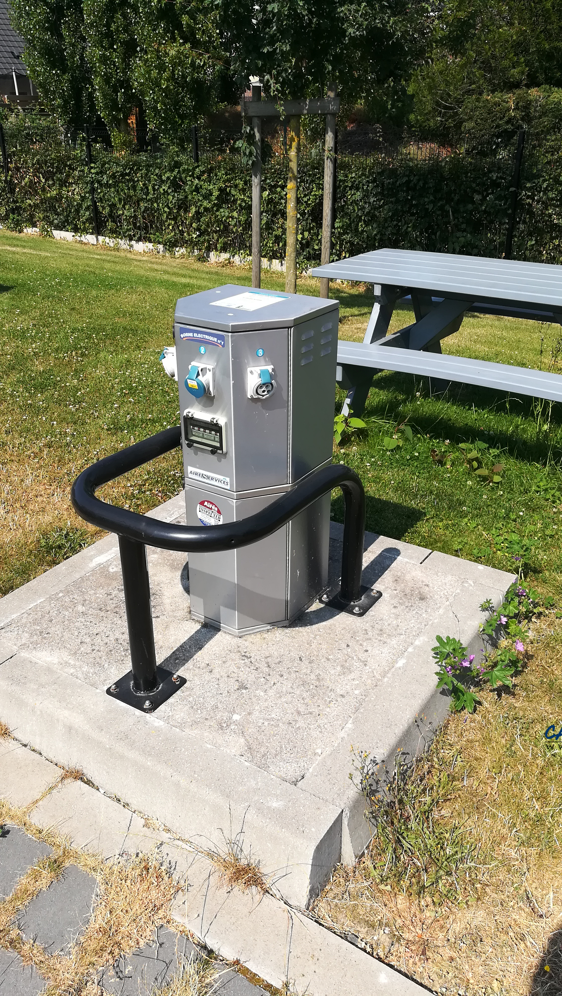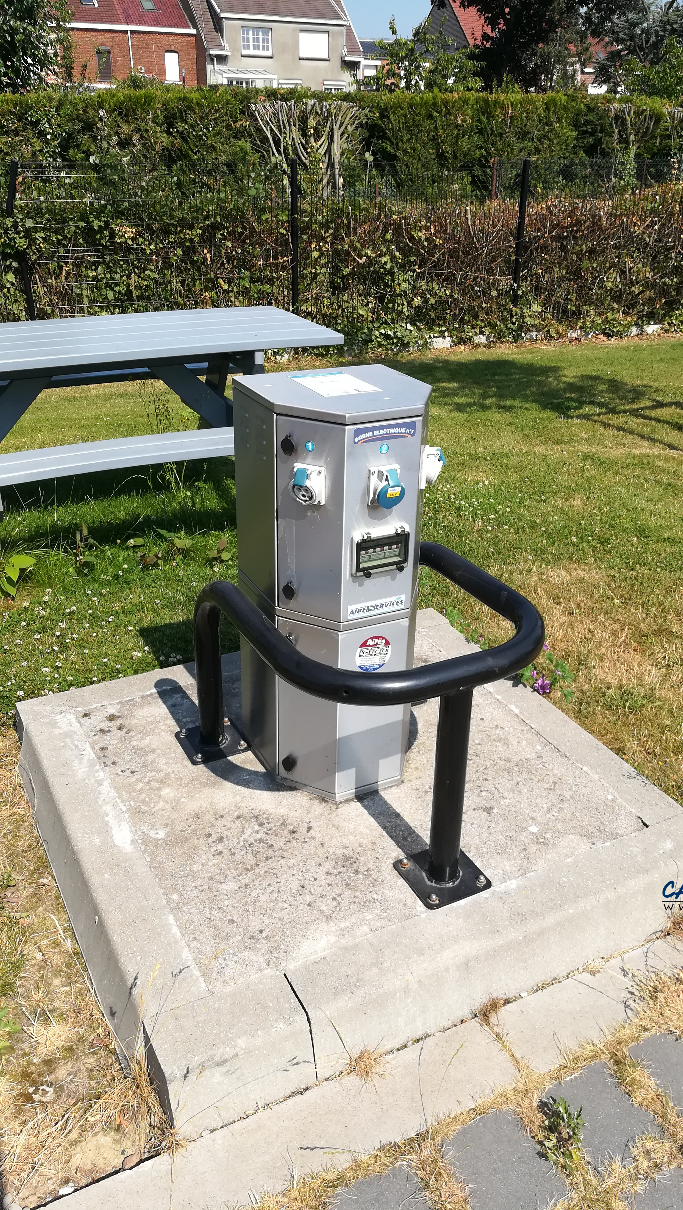 Vous pouvez choisir entre 10 minutes d’eau et 1 heure d’électricité ou bien 4 euros pour 12 heures d’électricité. Une borne électrique est implantée près des places de stationnement.