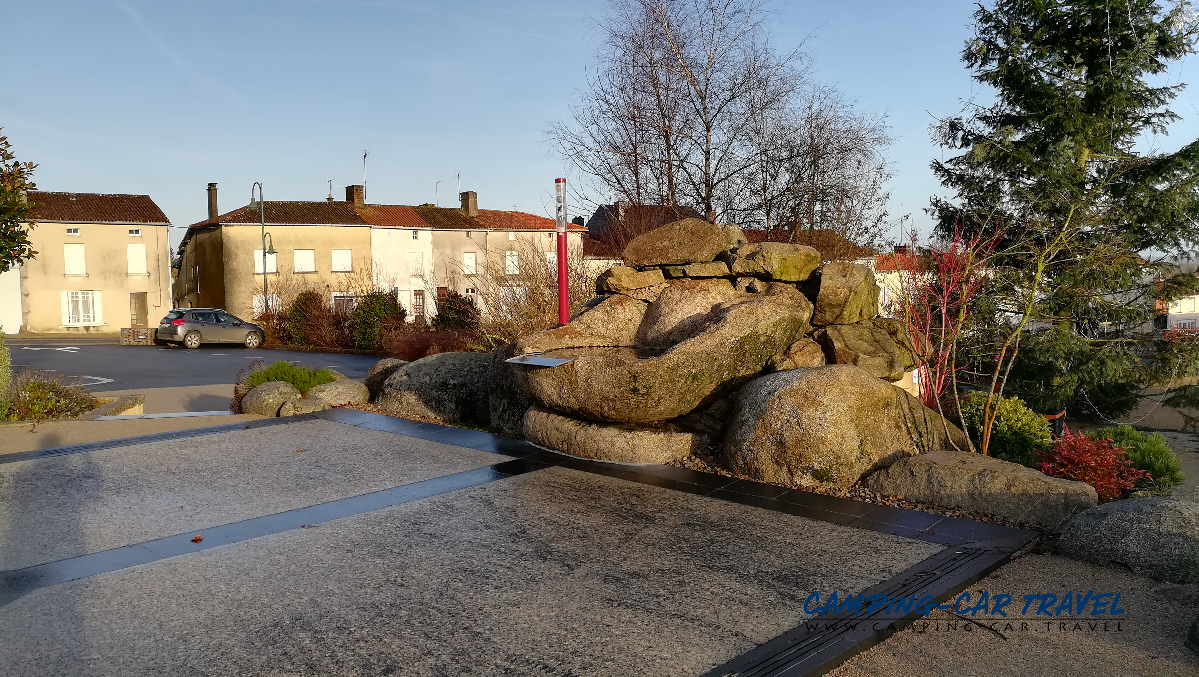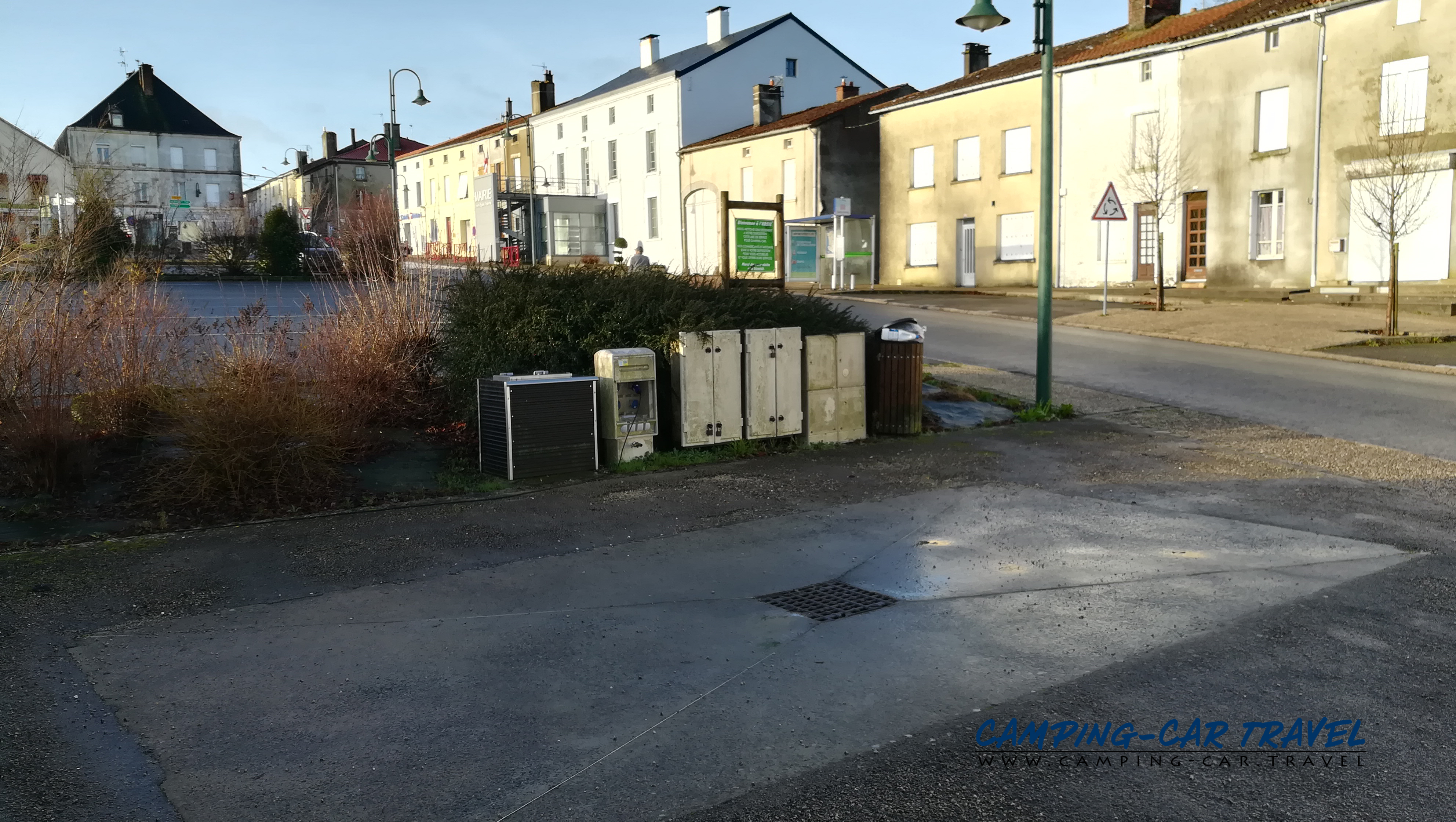 L’aire de services de L’Absie dans les Deux-Sèvres en Poitou-Charente est en plein centre ville sur la place centrale.