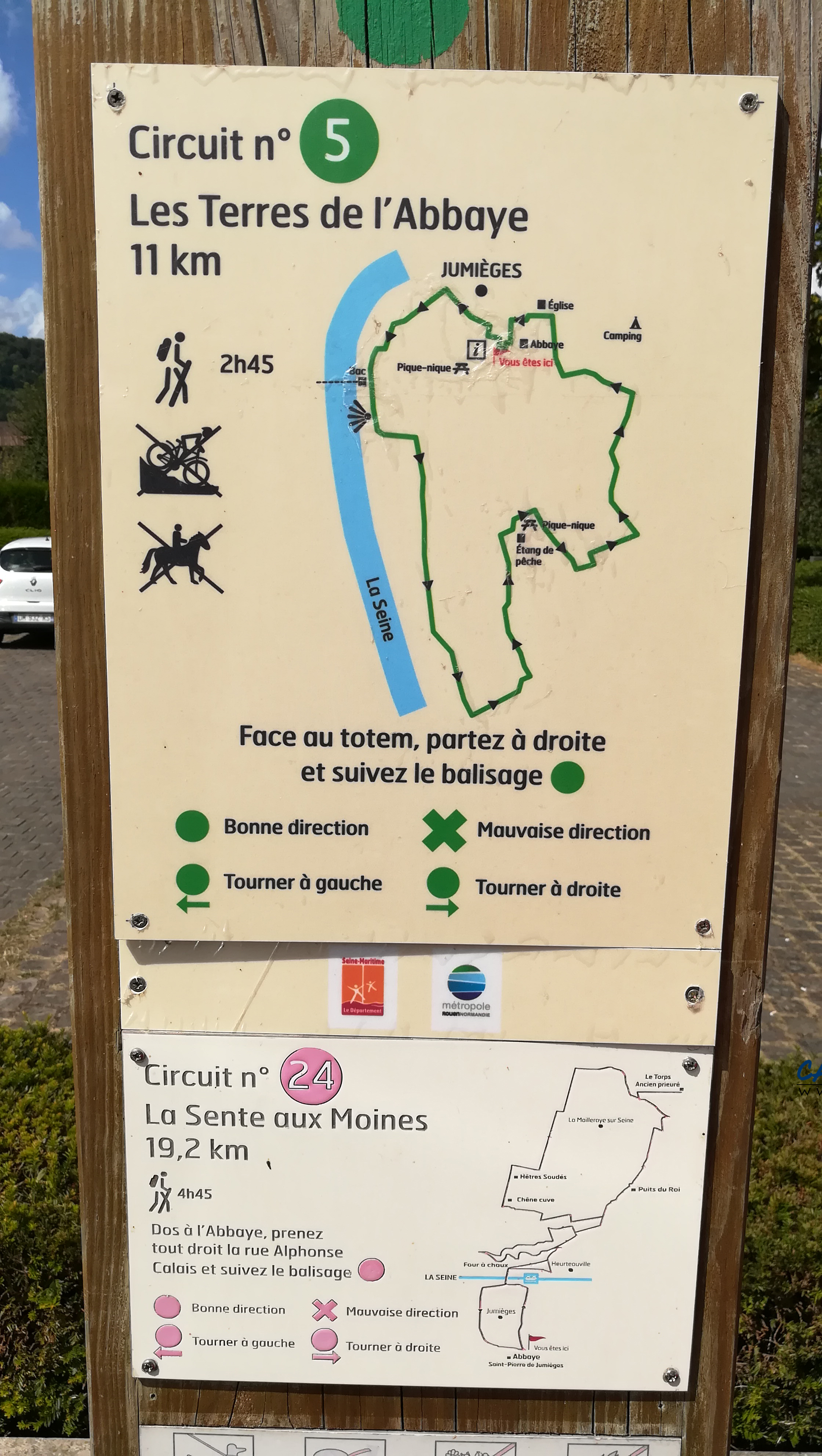 Selon par où vous arrivez, vous devrez emprunter gratuitement un bac pour traverser la Seine.