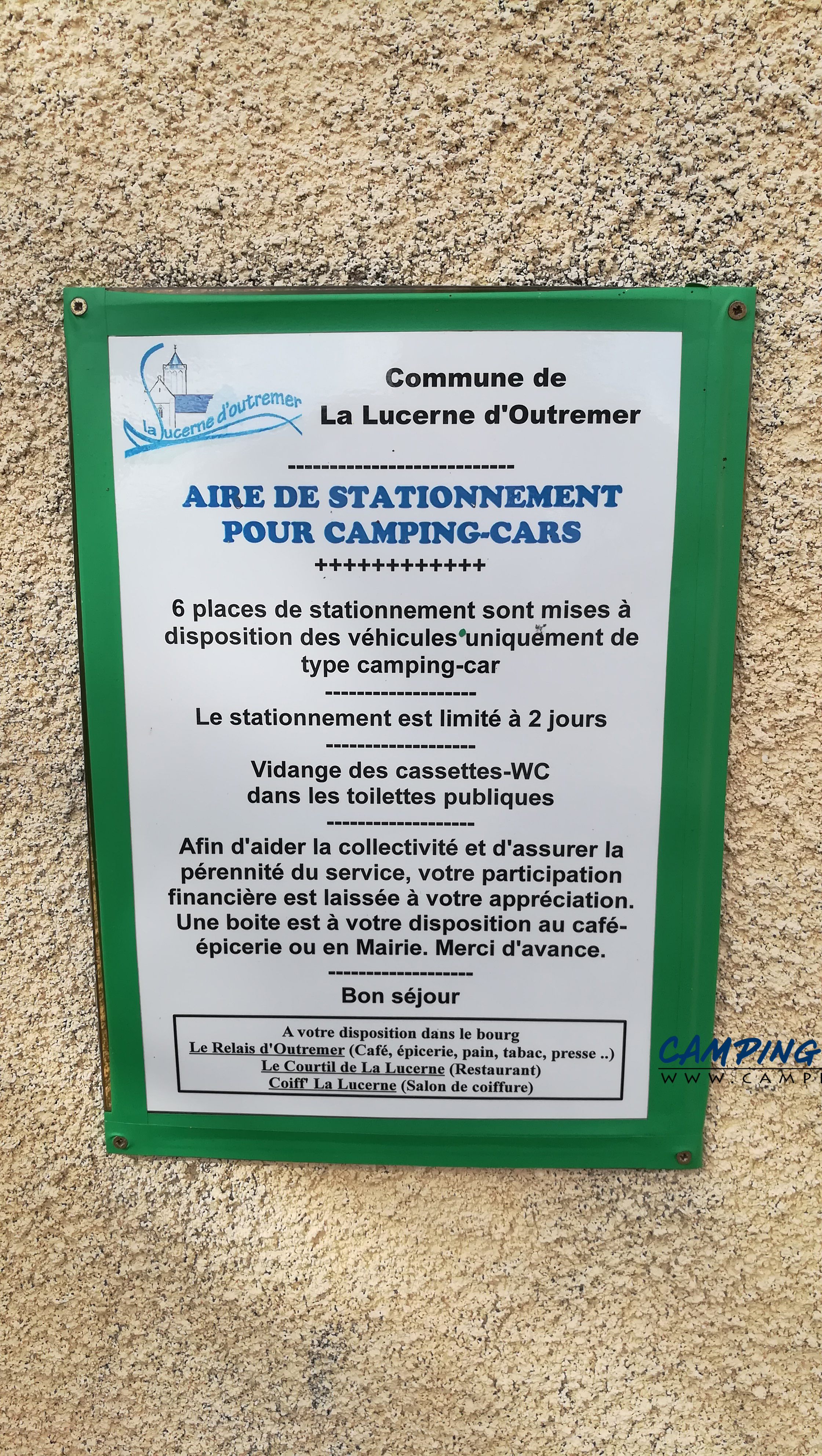 La commune de La Lucerne-d’Outremer dans la Manche en Normandie dispose d’une petite aire de services sur le parking de la maison des associations.