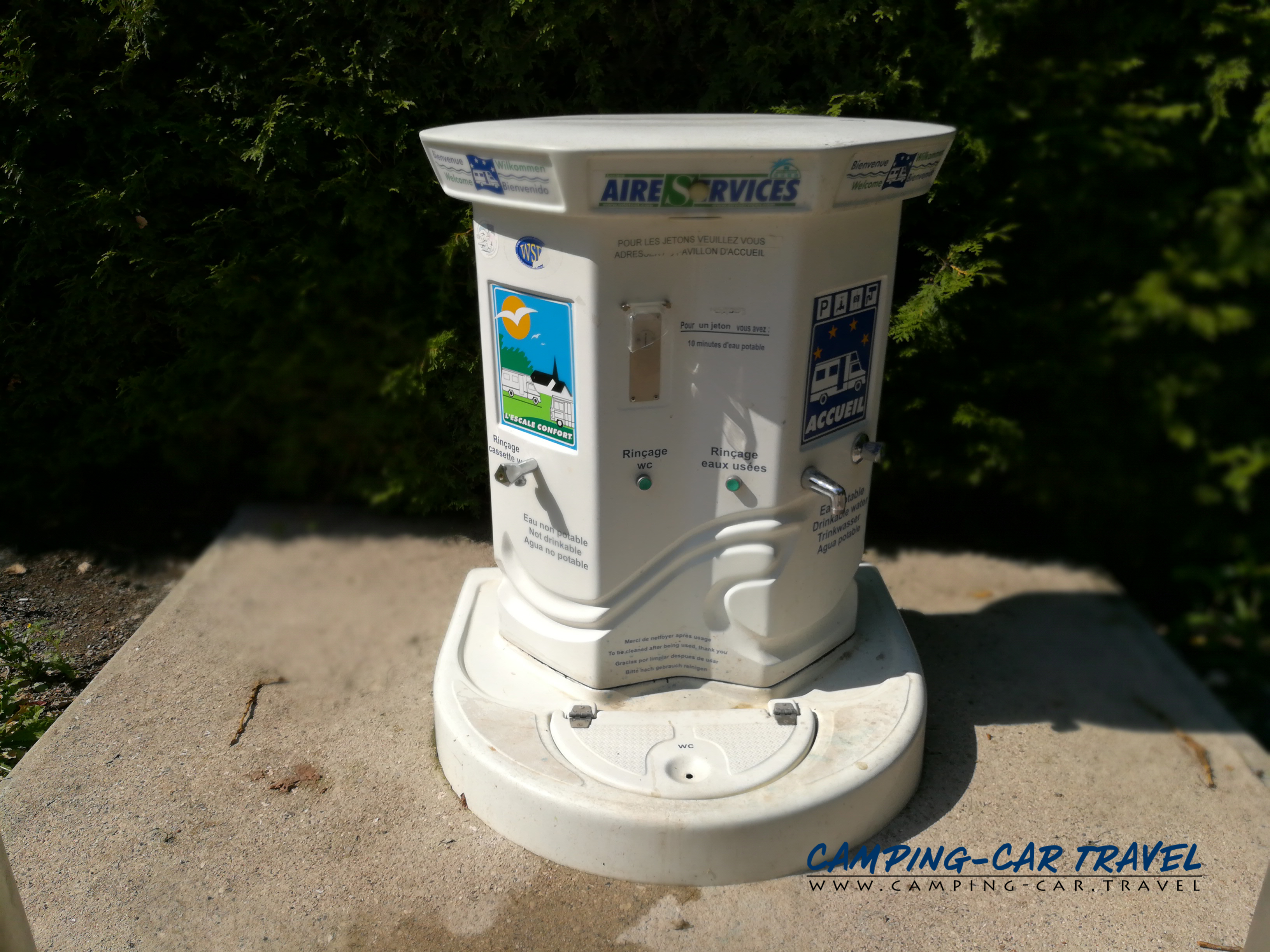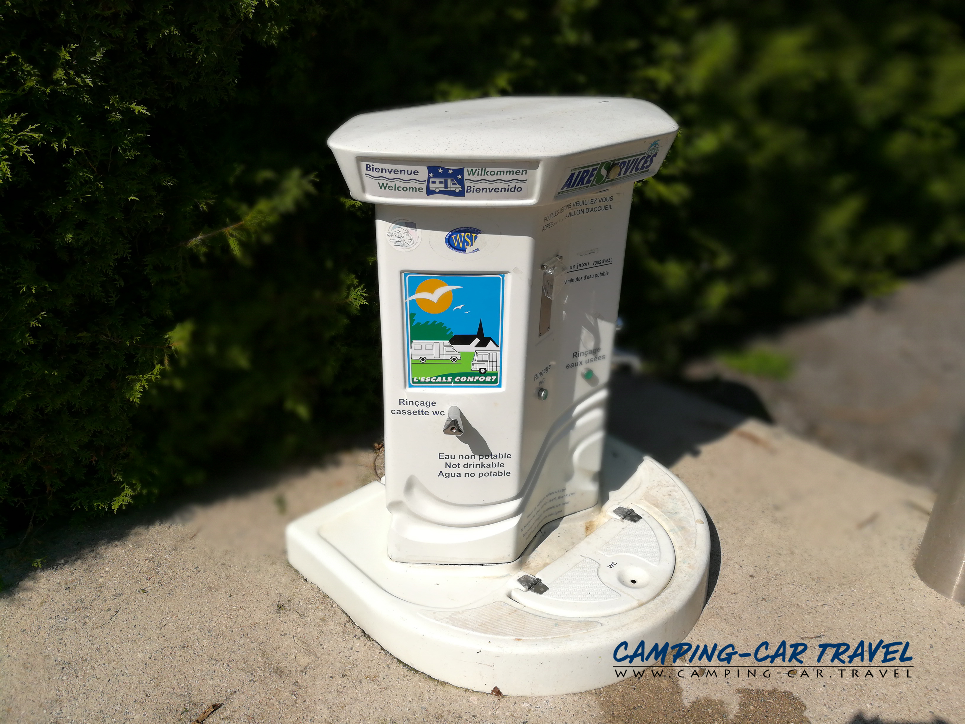 La borne n’est pas sur place mais un peu plus loin sur la route. Pour 2 euros en jeton vous avez droit à 10 mn d’eau.