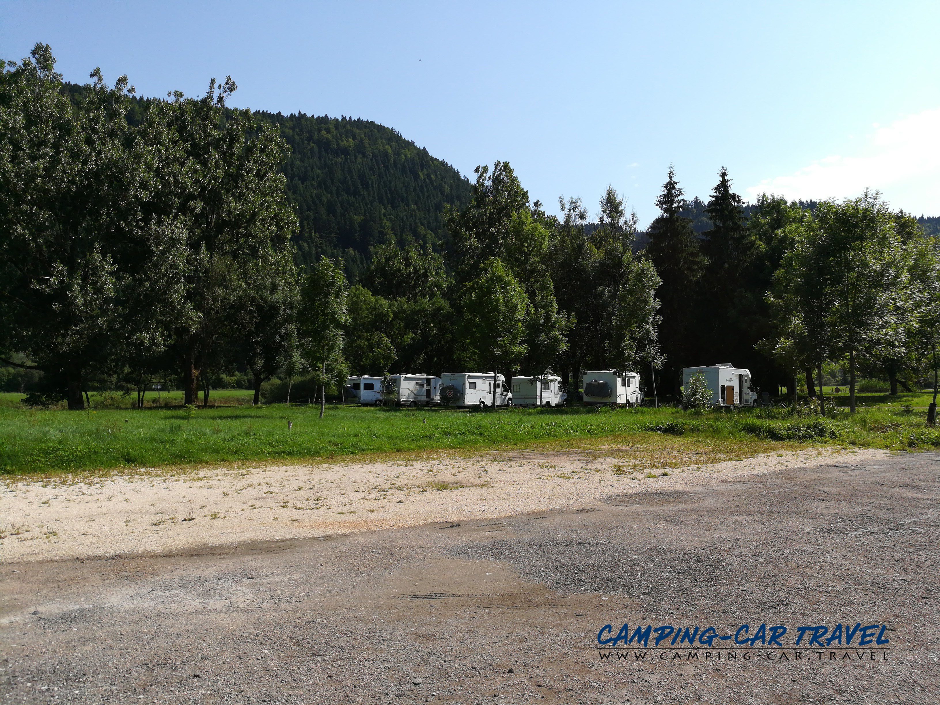 Le stationnement se fait sur un emplacement en herbe réservé aux camping-cars.