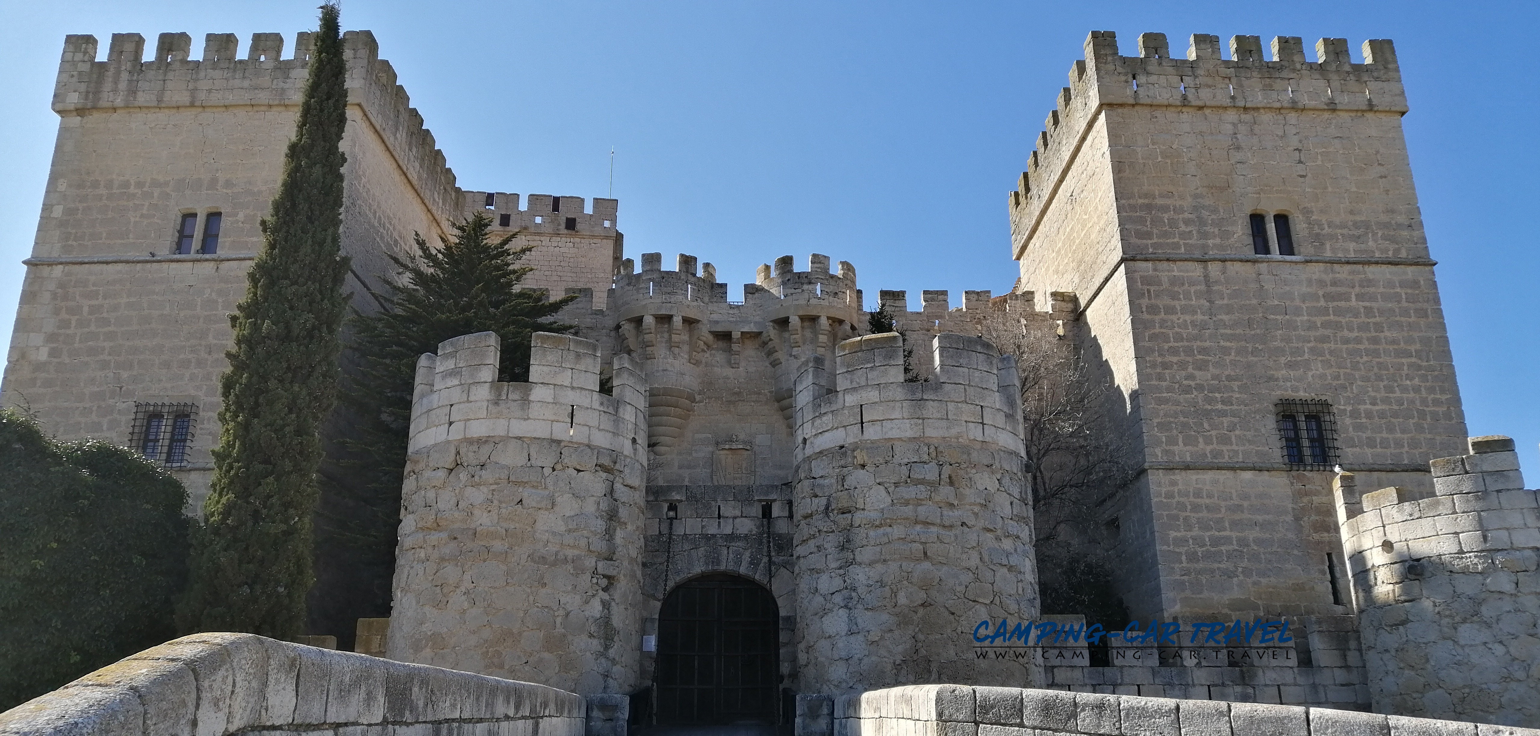 L’aire de services est à côté du château. Les services et le stationnement sont gratuits.