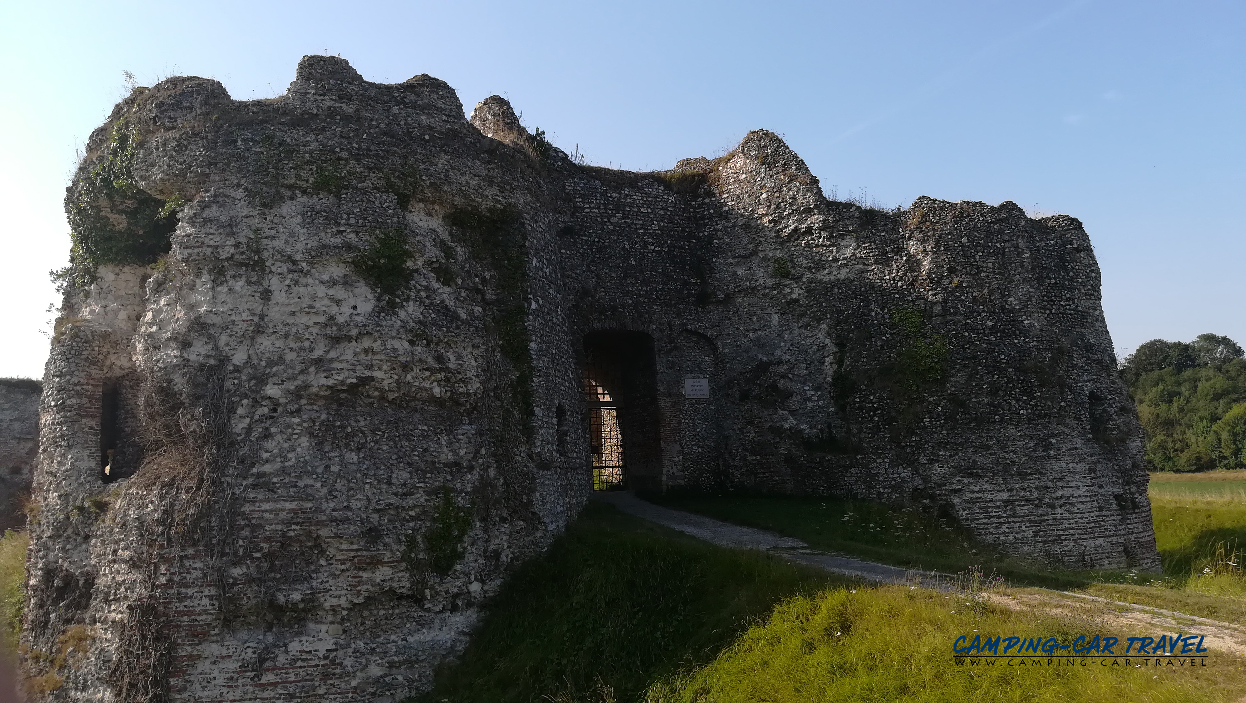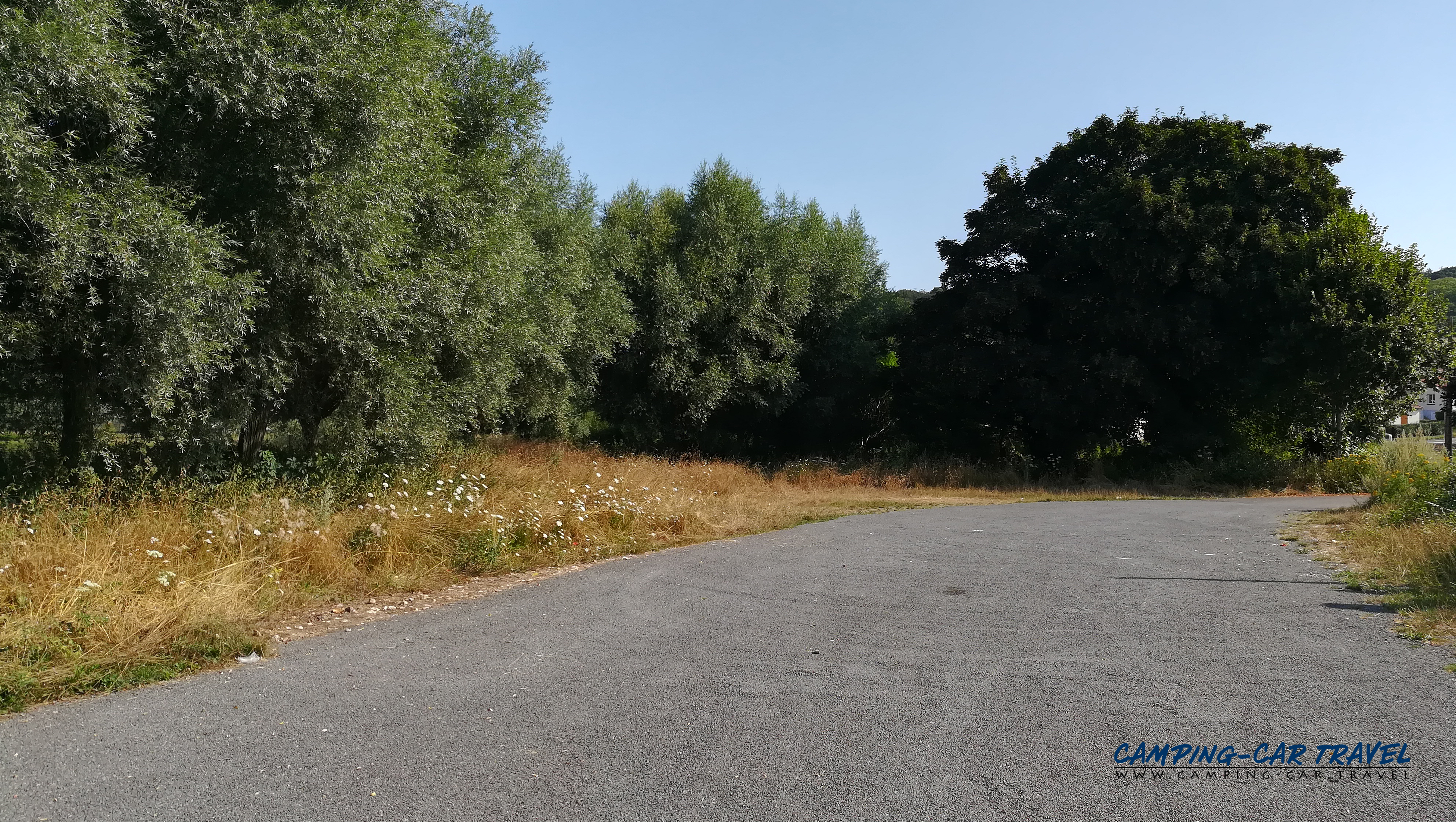 Un petit parking gratuit s’installe entre deux étangs, directement en bordure de l’Avenue Verte. L’accès est libre, sans horodateur ni barrière. Le stationnement y est autorisé en journée, mais le séjour nocturne n’est pas autorisé sur ce site : il s’agit exclusivement d’une halte diurne. Un second parking, également gratuit, se trouve à proximité du stade de la commune et constitue une alternative pratique si le premier venait à être complet.