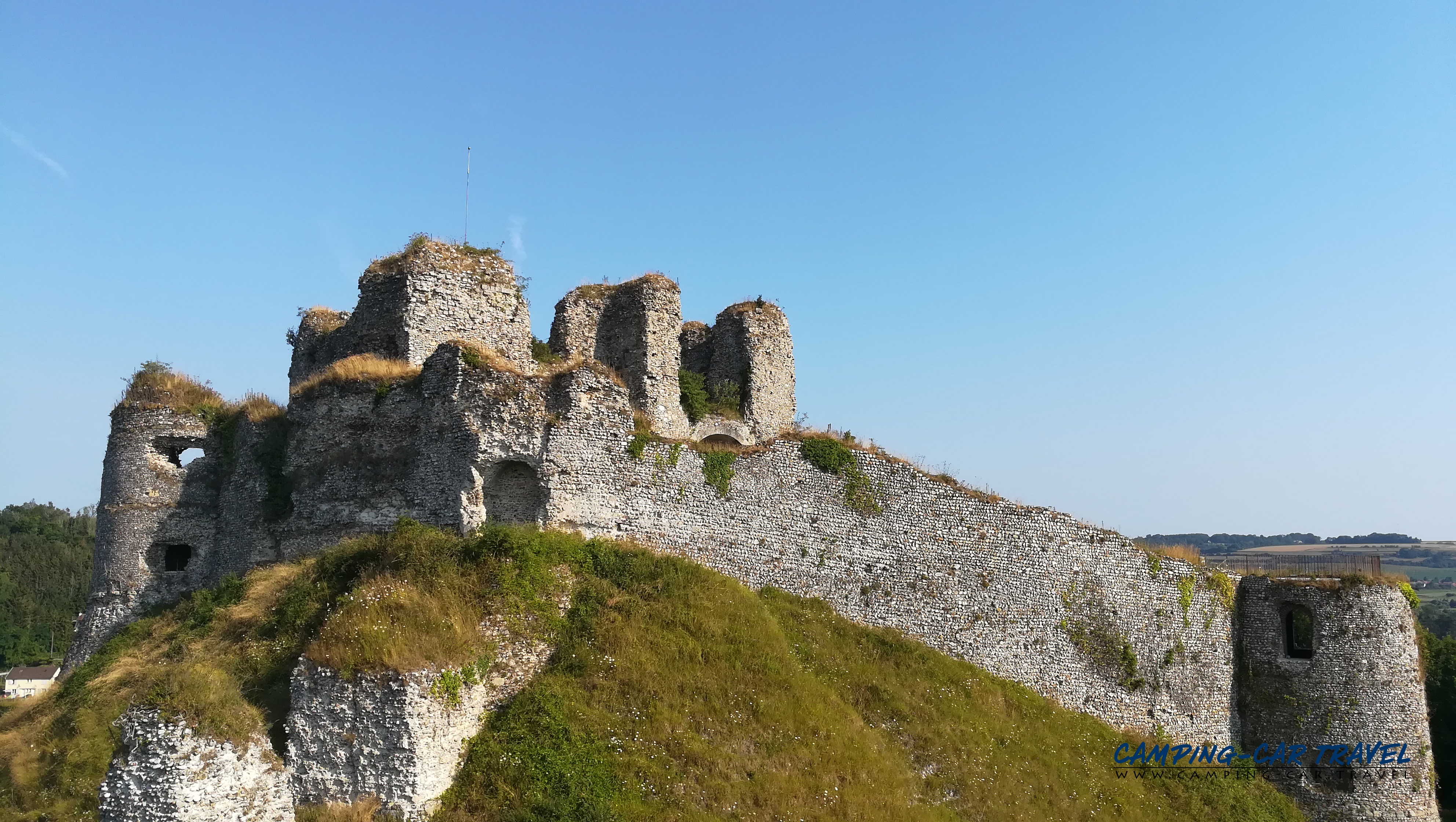 Pour les amateurs de patrimoine, la montée vers les ruines du château d’Arques-la-Bataille s’impose. Érigé sur un promontoire rocheux au XIe siècle par Guillaume d’Arques, neveu de Guillaume le Conquérant, ce château-fort n’a jamais été pris de vive force au cours des siècles. En septembre 1589, Henri IV y installa ses troupes pour remporter une victoire décisive sur les forces de la Ligue catholique menées par le duc de Mayenne — événement qui donna son nom à la commune. Les ruines, accessibles librement, offrent un panorama exceptionnel sur trois vallées ; l’intérieur ne se visite plus pour des raisons de sécurité, mais le chemin de la contrescarpe taillé à même la roche est une promenade en soi. À noter : les moutons qui tondent les abords des remparts réservent une rencontre inattendue et bucolique.