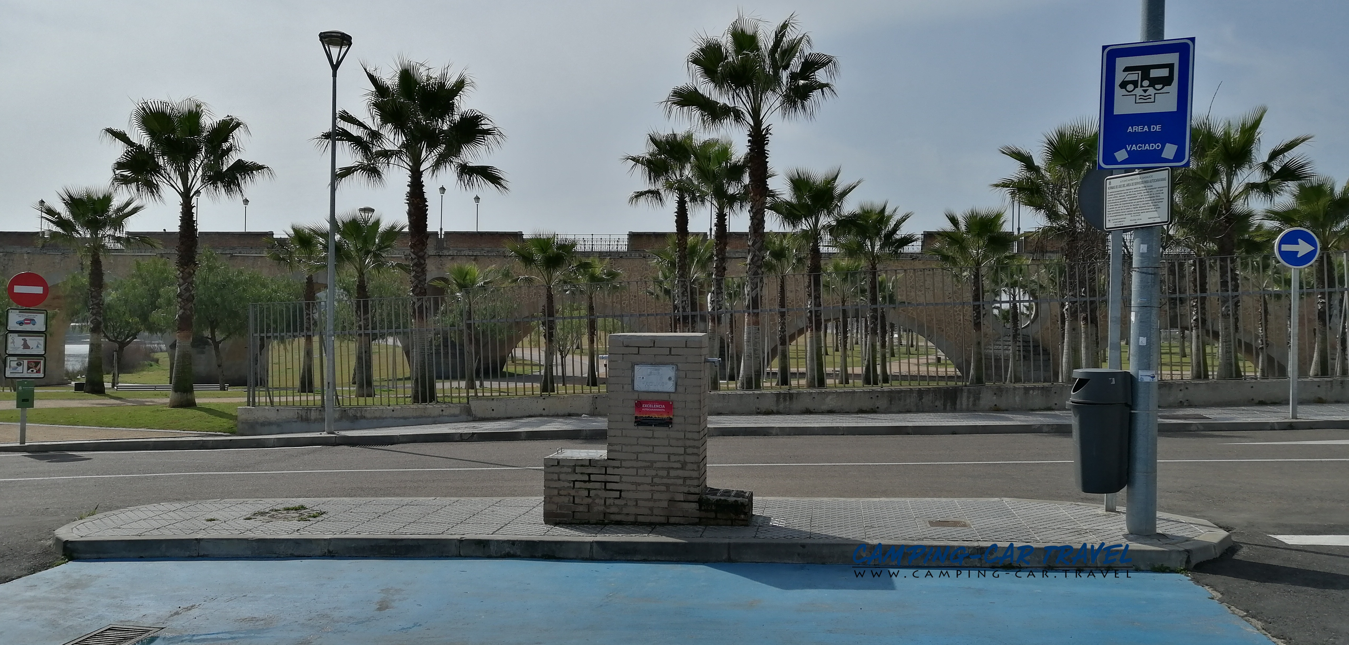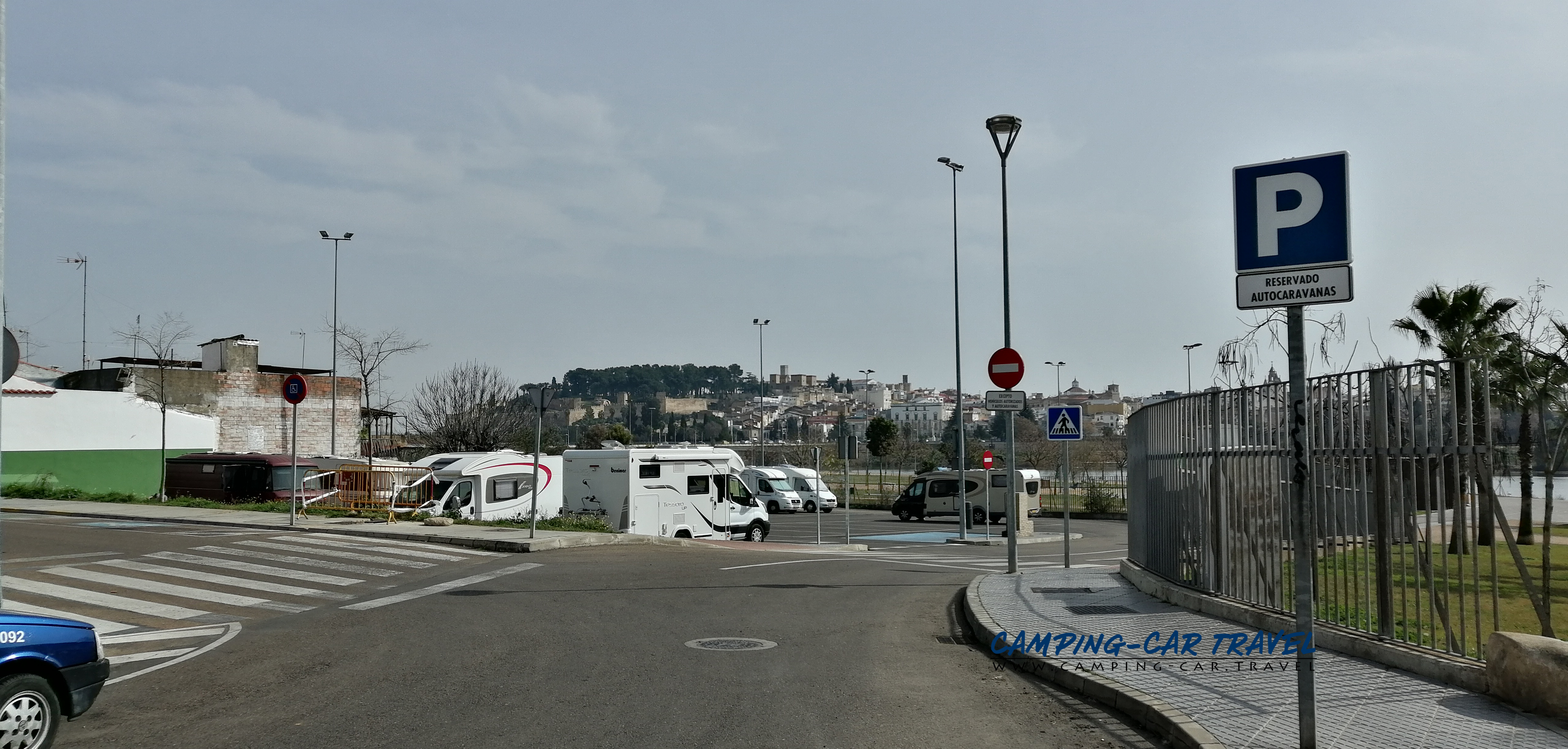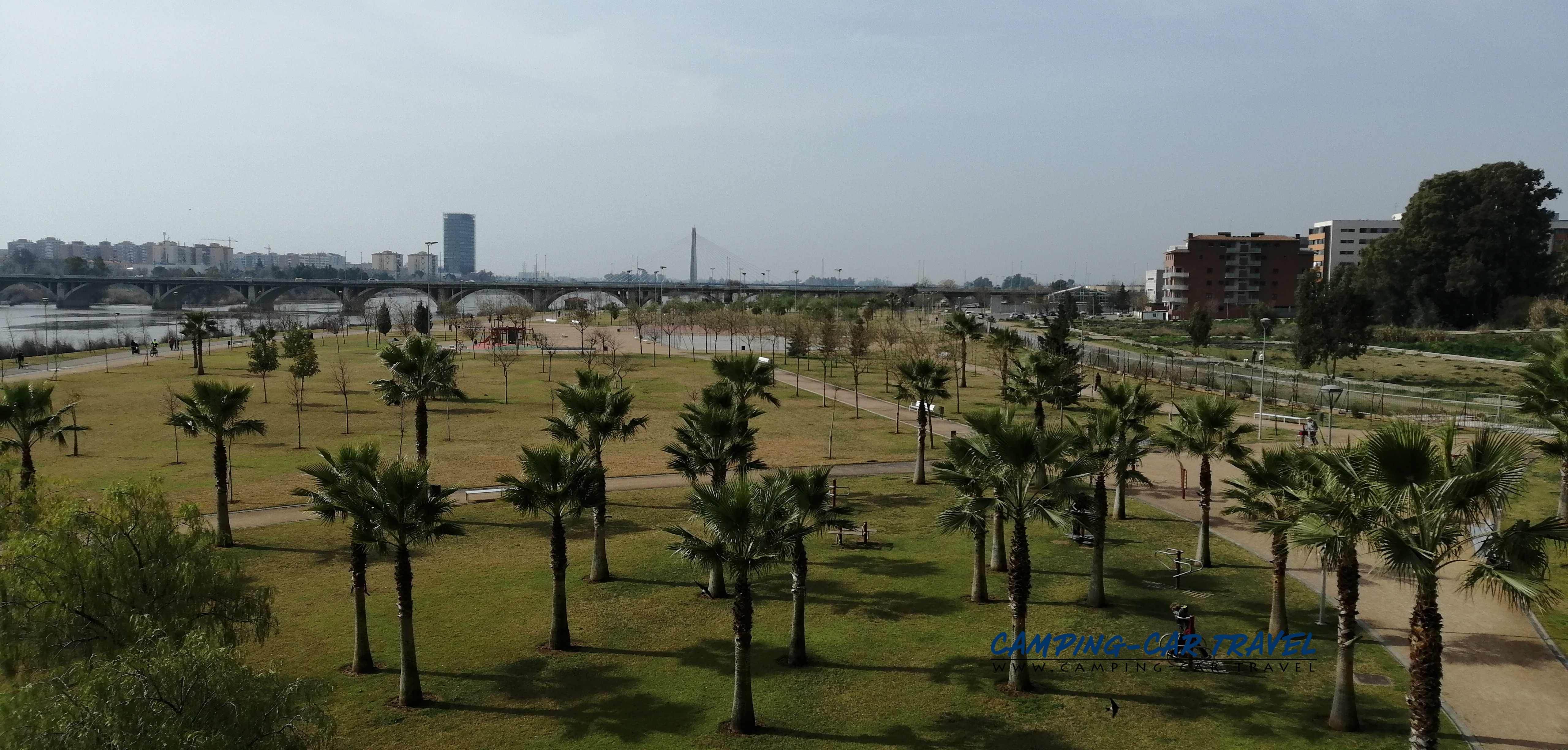 L’aire de services est très bien située pour visiter la ville. Elle est à côté d’un grand parc, lui-même à côté de la rivière Guadiana.
