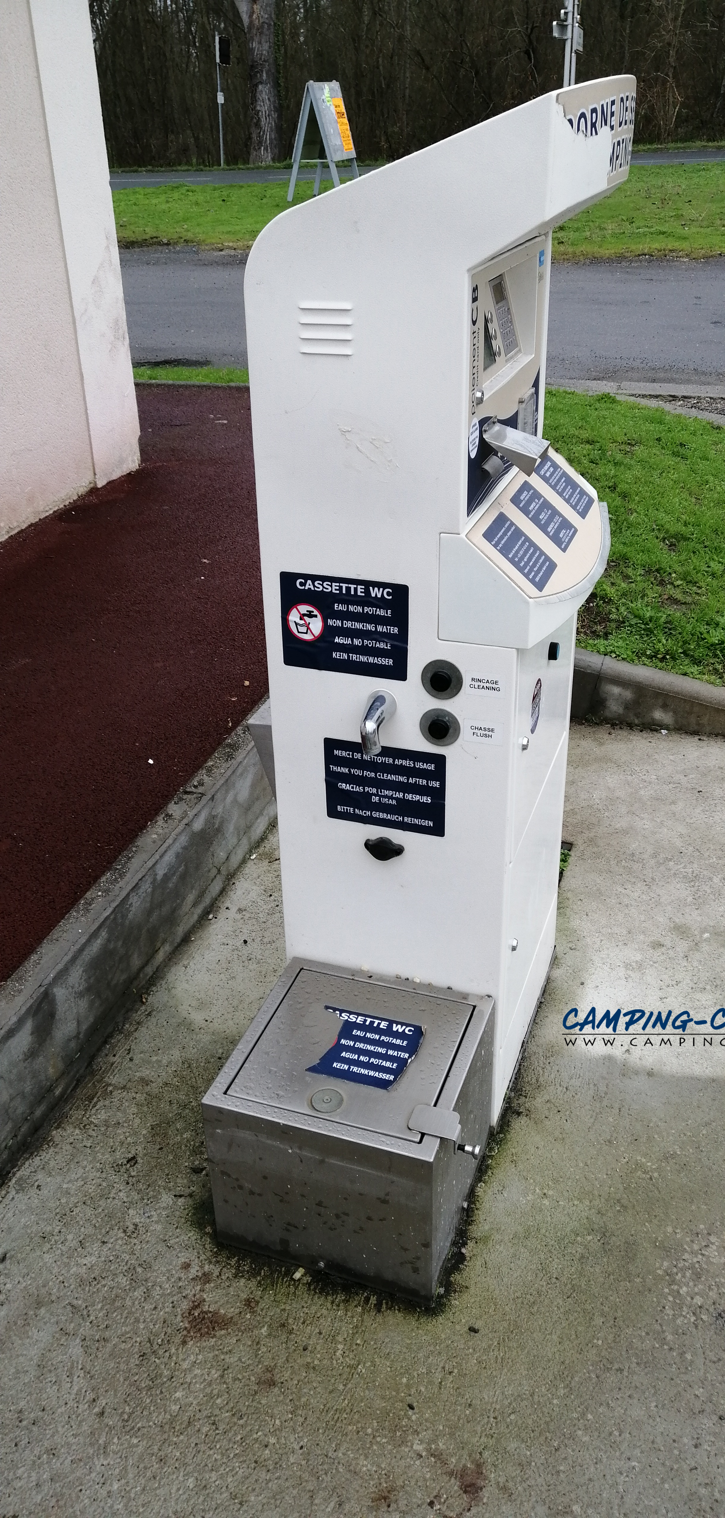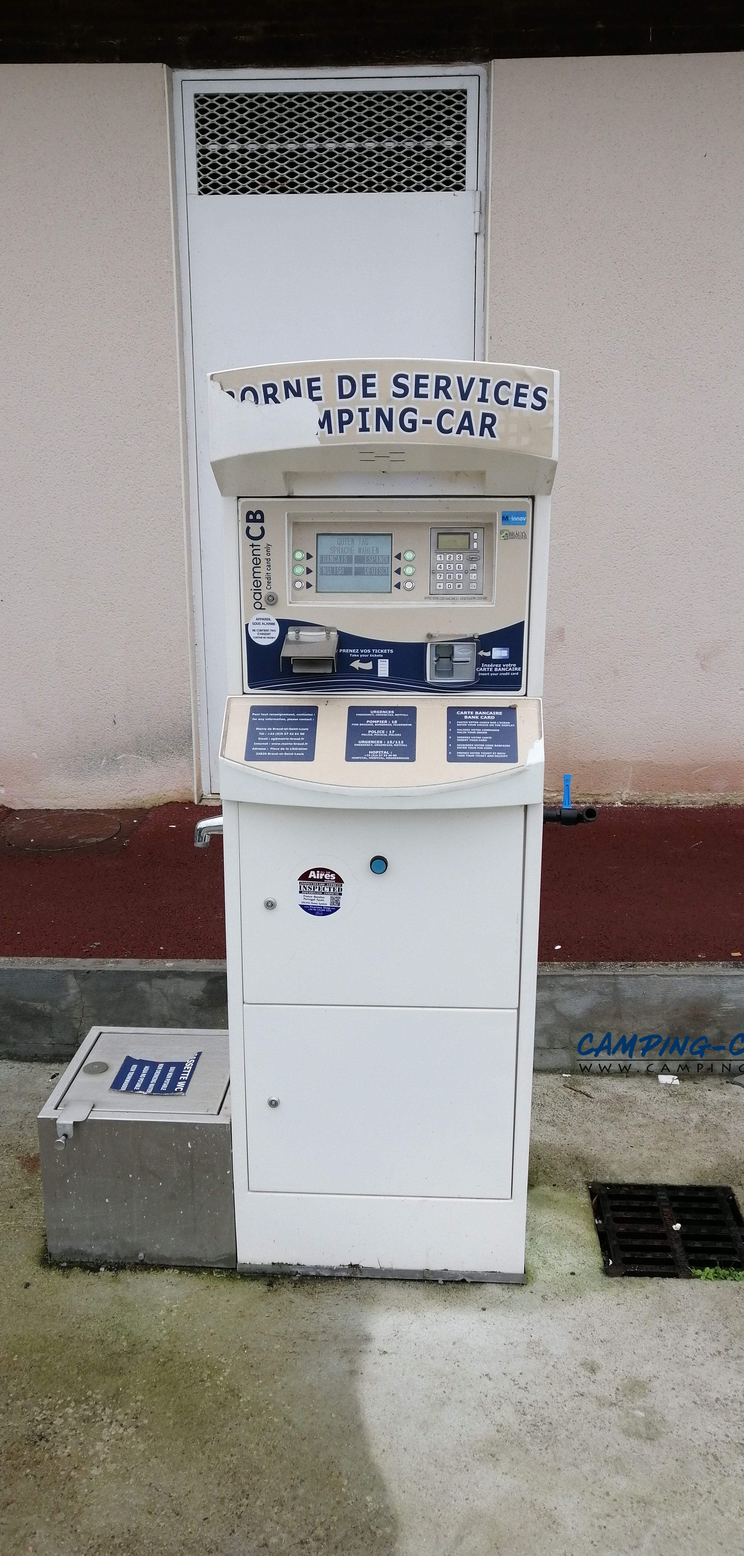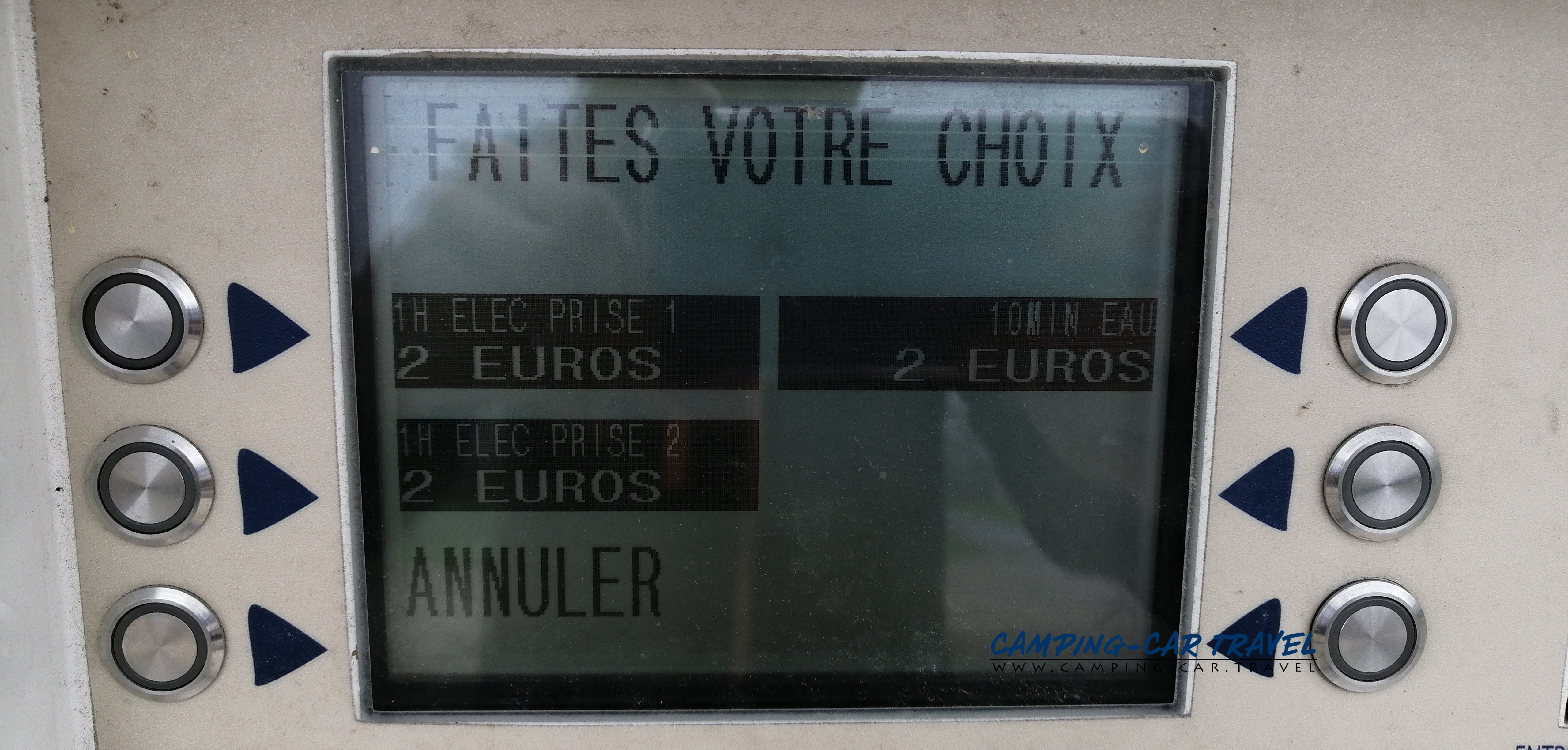 Le borne fonctionne par carte bancaire. Pour deux euros, vous aurez droit à dix minutes d’eau ou une heure d’électricité.