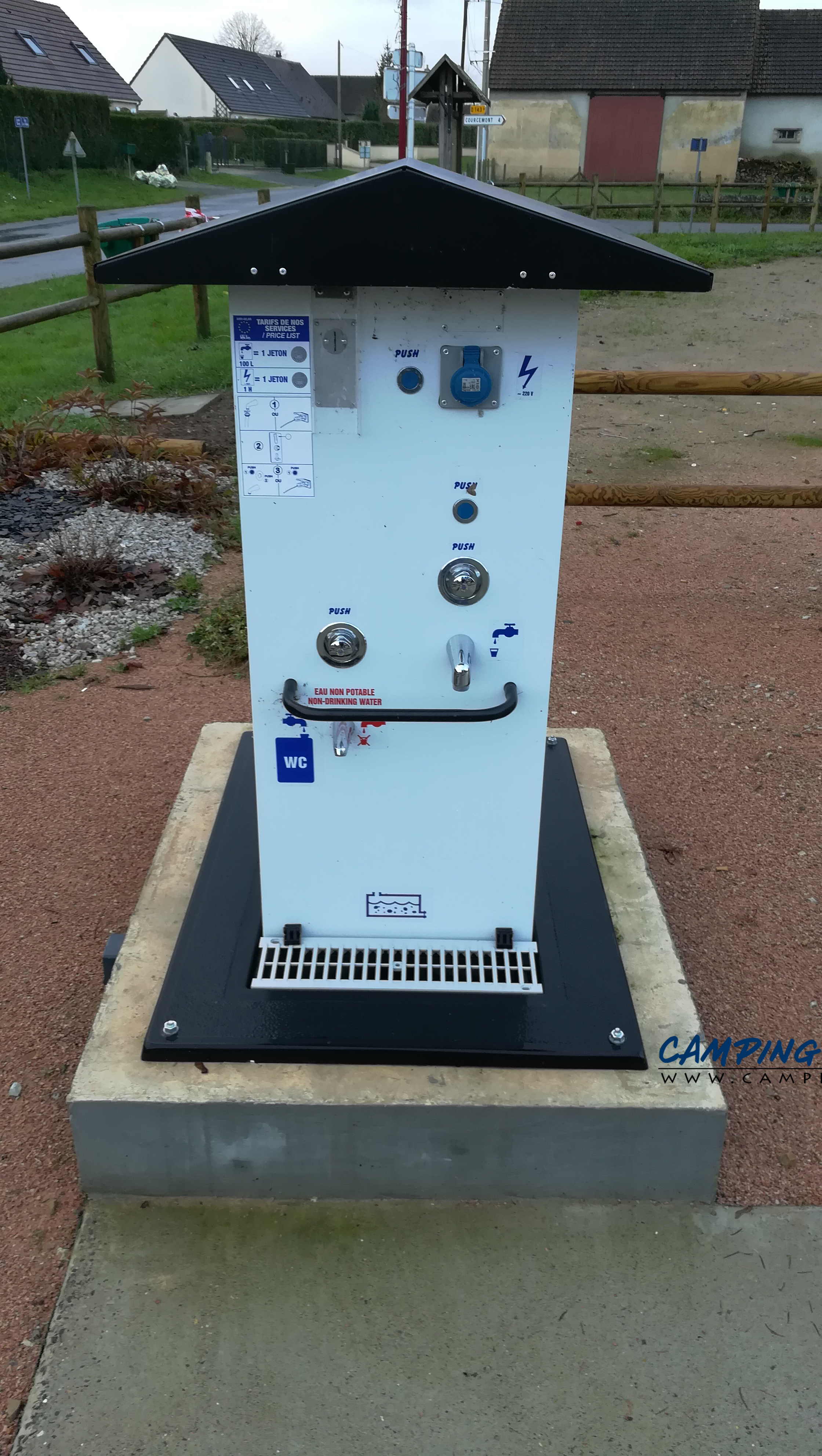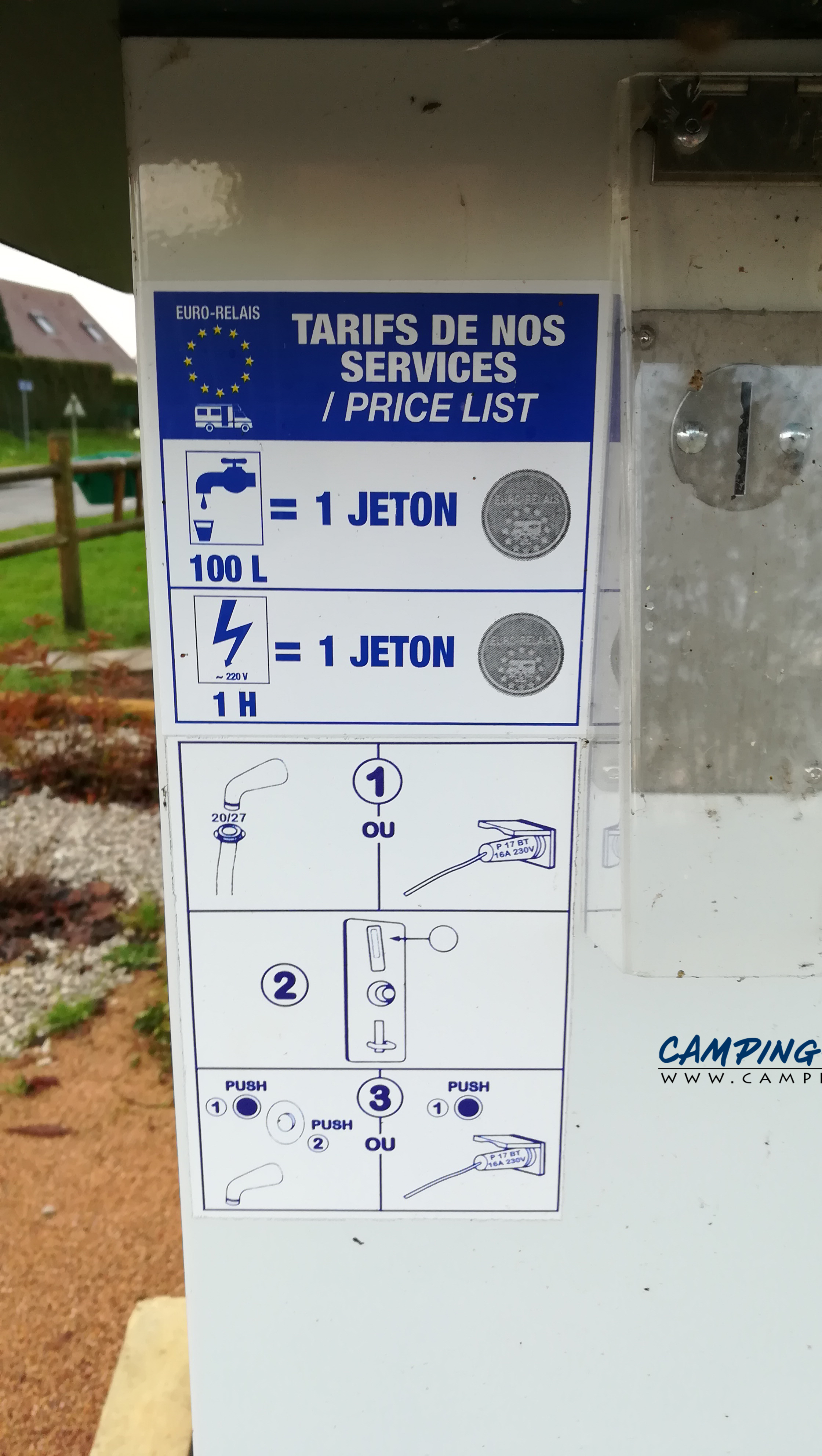 Le stationnement est gratuit et les services s’obtiennent avec un jeton disponible chez les commerçants (cent litres d’eau ou une heure d’électricité).