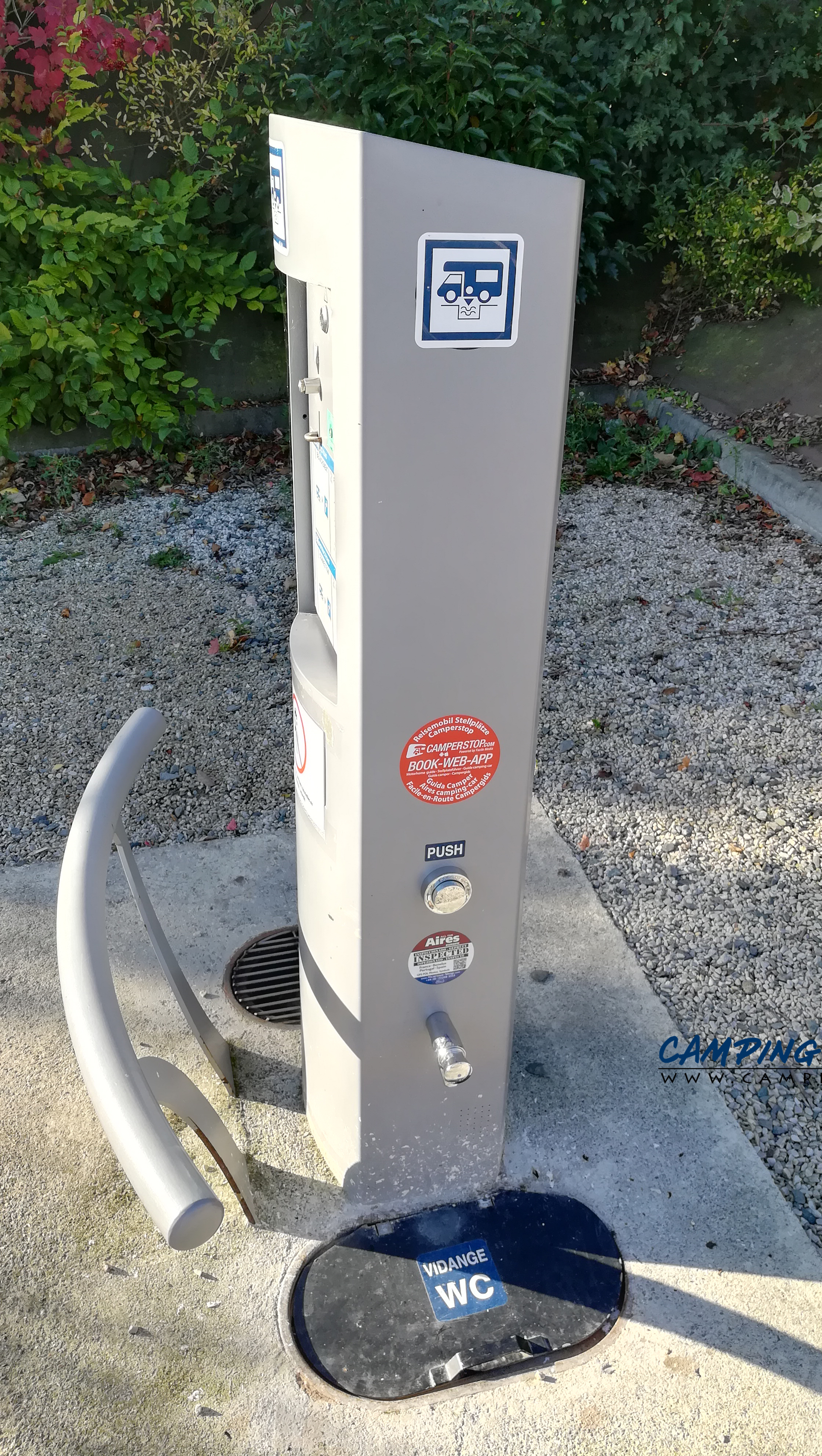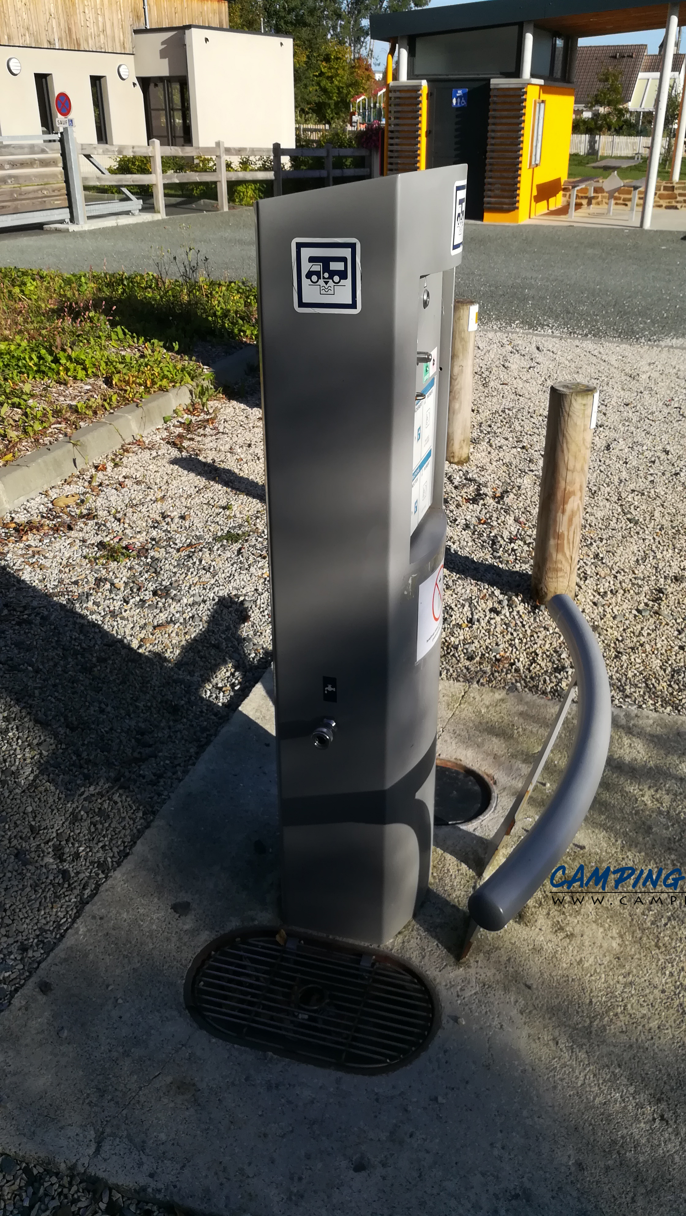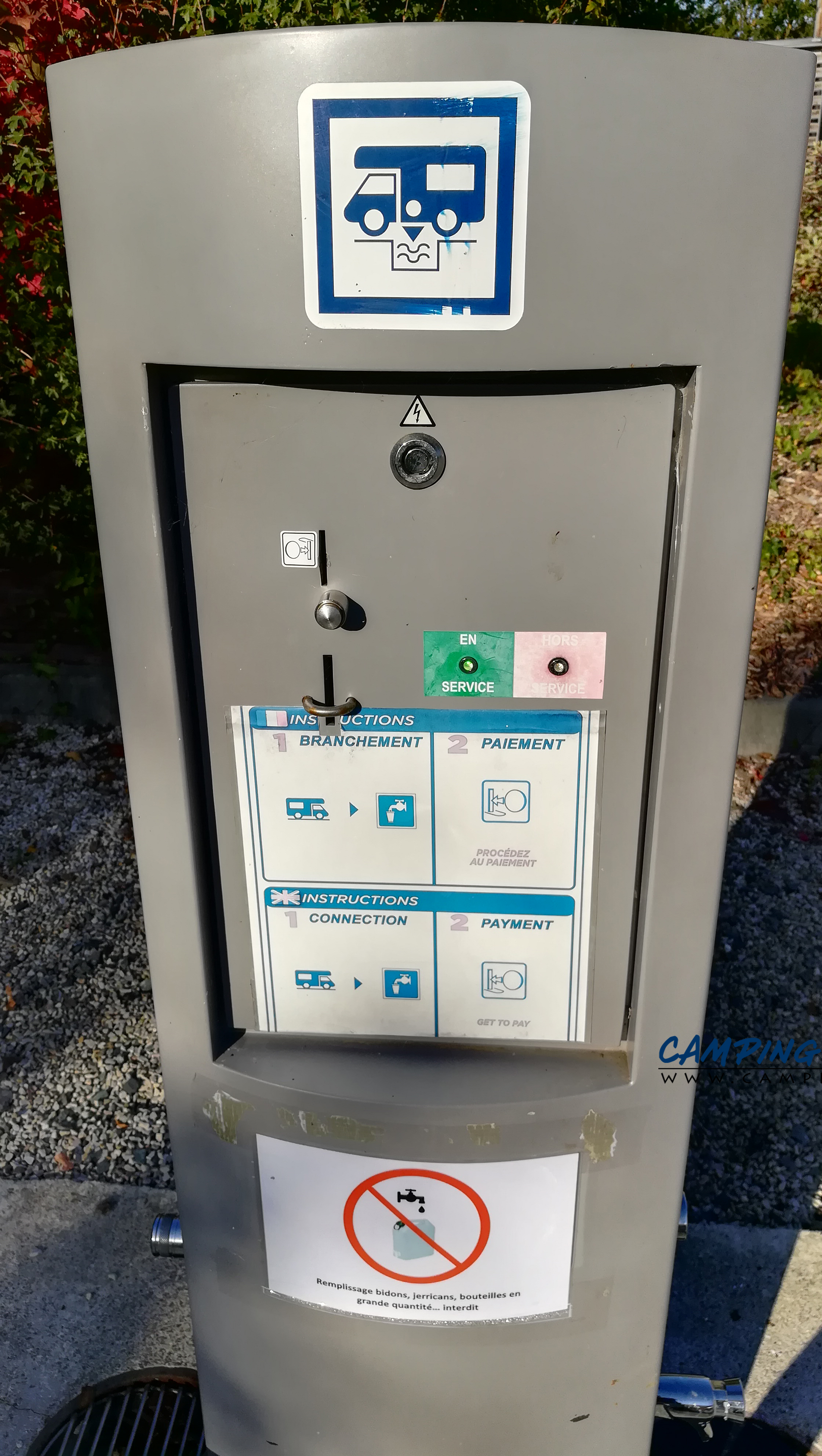 Les services sont à deux euros en jeton disponibles auprès des commerçants. La borne utilise un raccord mâle/mâle.