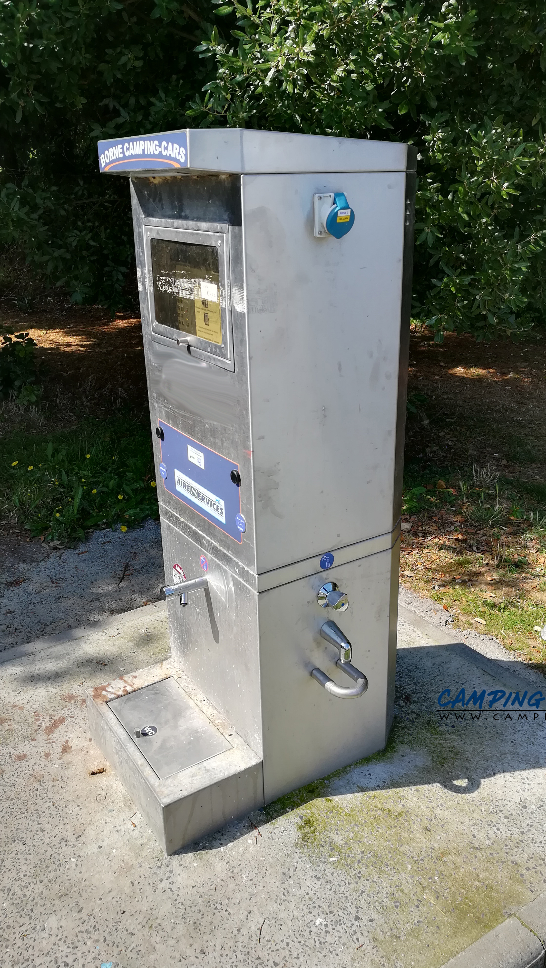 La borne est au fond du parking. Pour quatre euros, par carte bancaire, vous aurez 10 minutes d’eau et une heure d’électricité. Le stationnement est gratuit.