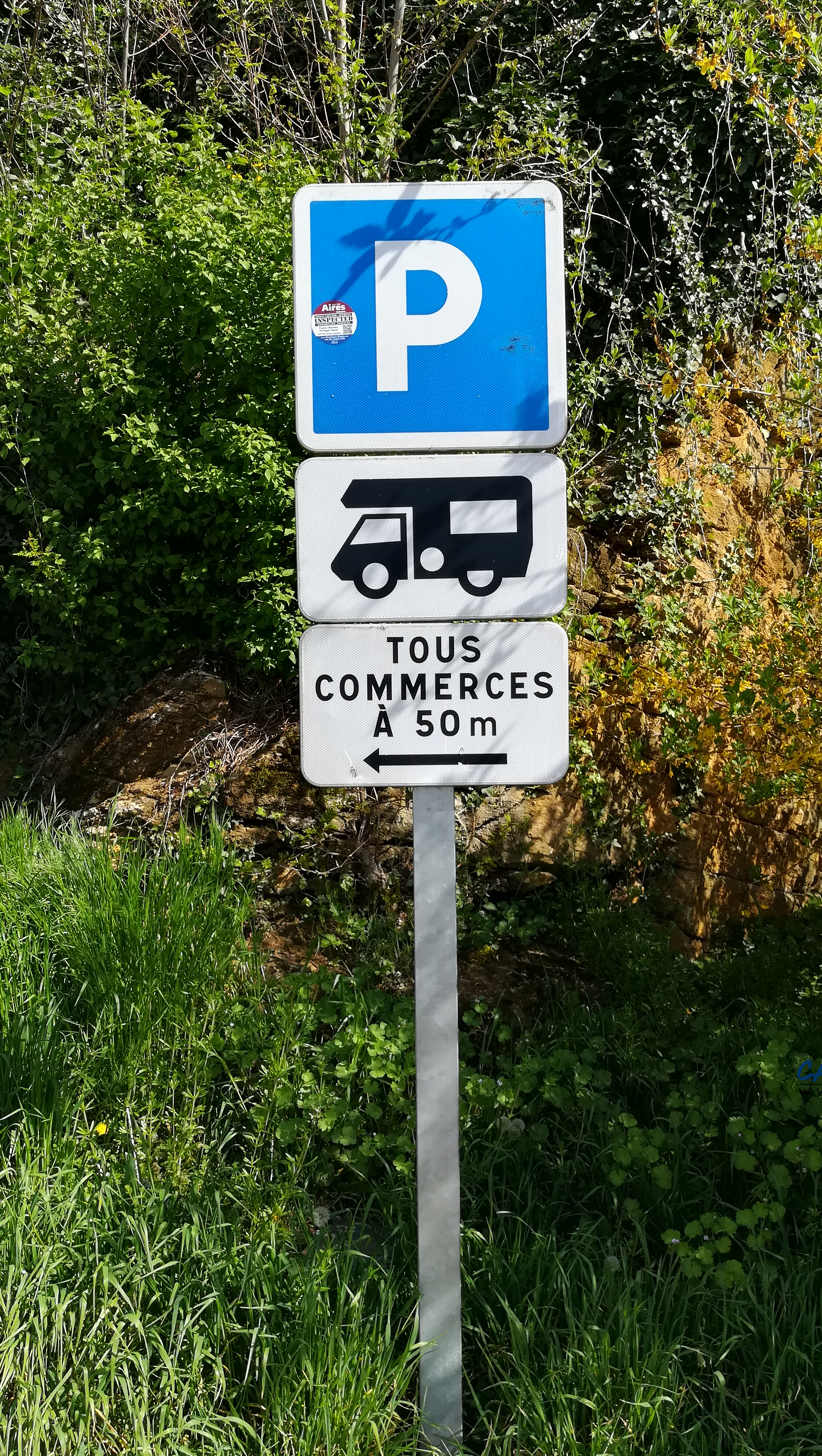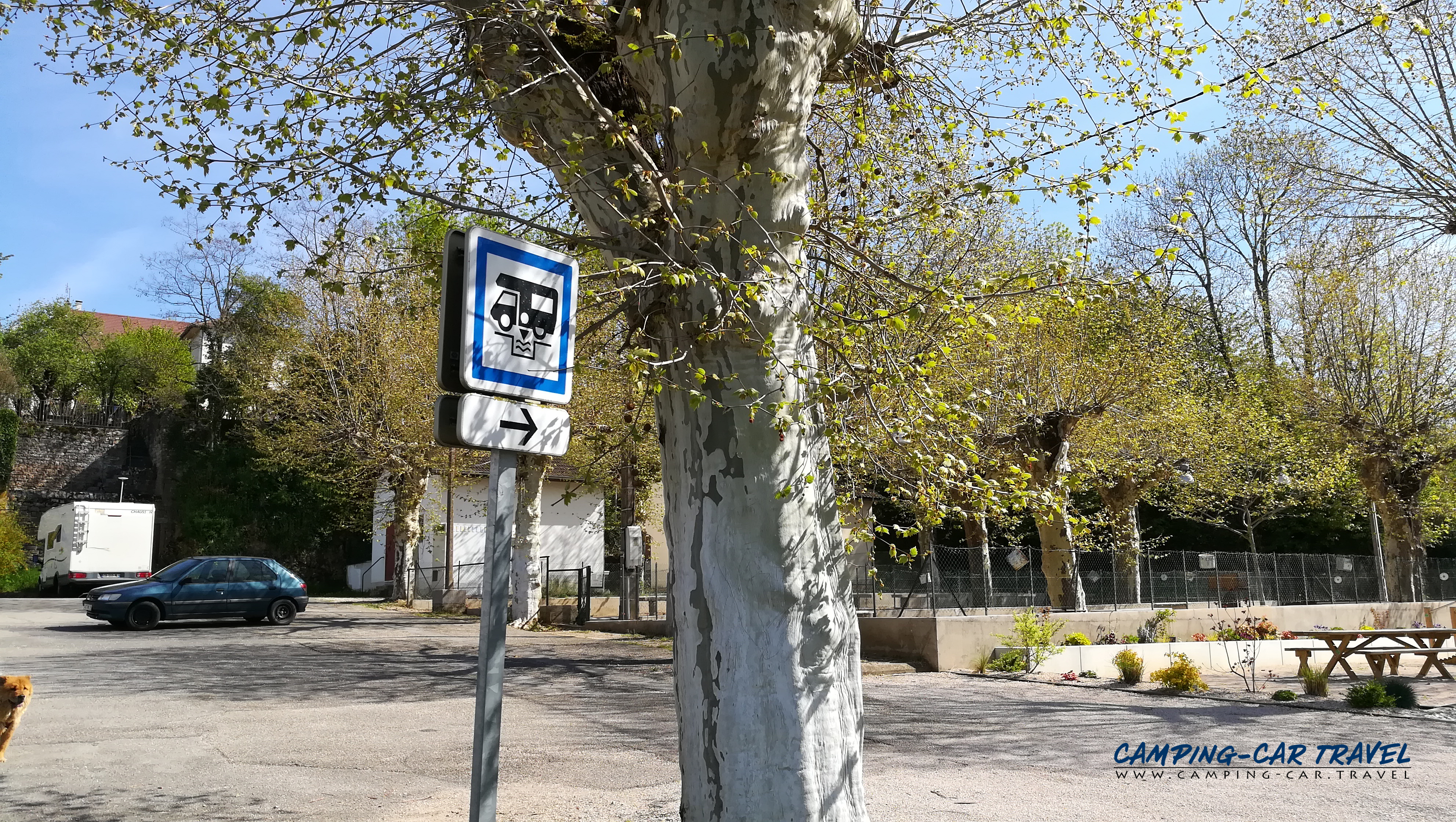 Six ou sept places du parking sont réservées aux camping-cars. Il faudra sortir les cales car il est en pente.