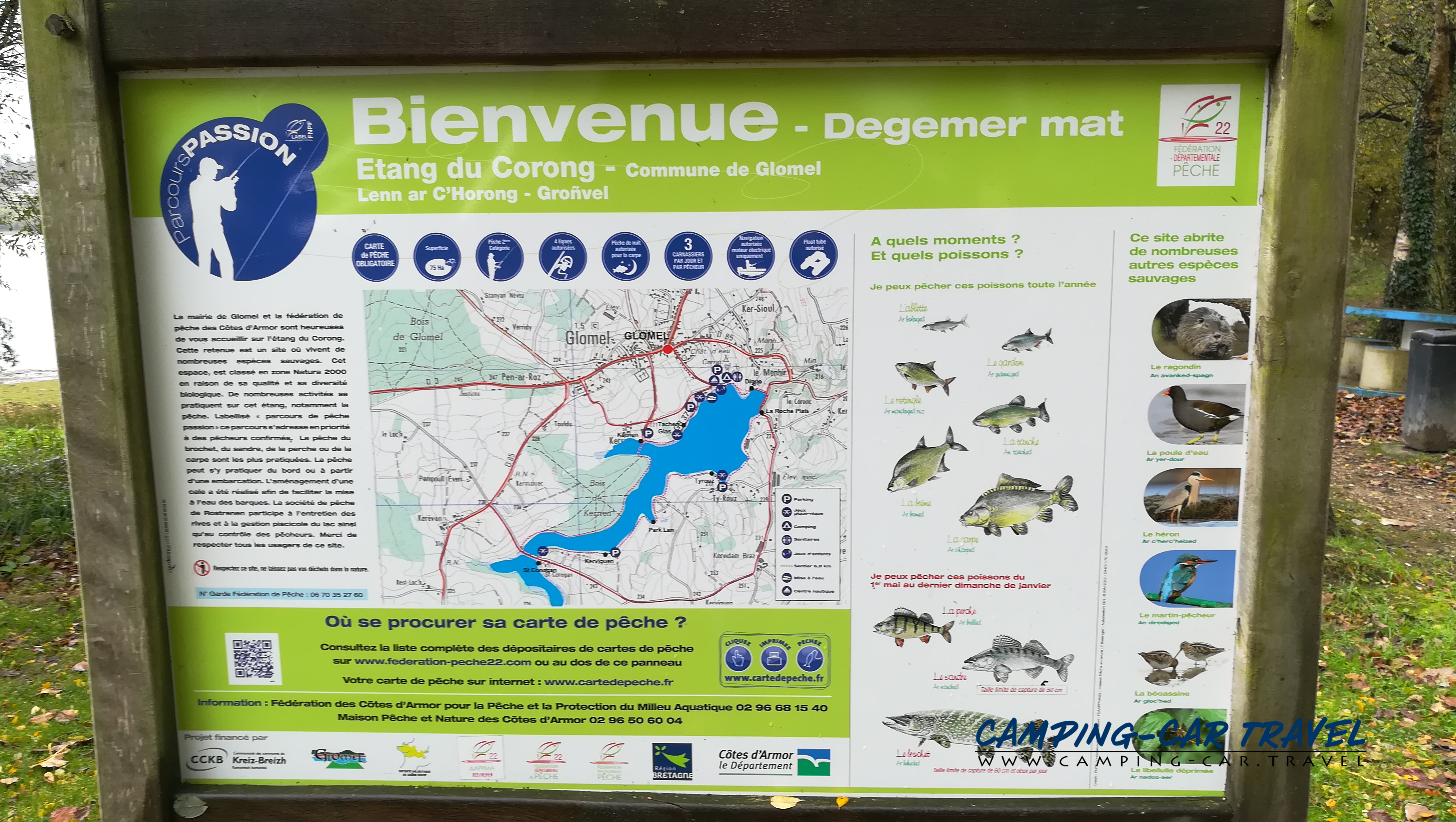 L’aire de services est située à côté de l’Etang du Corong où il est possible de se baigner et de pêcher.