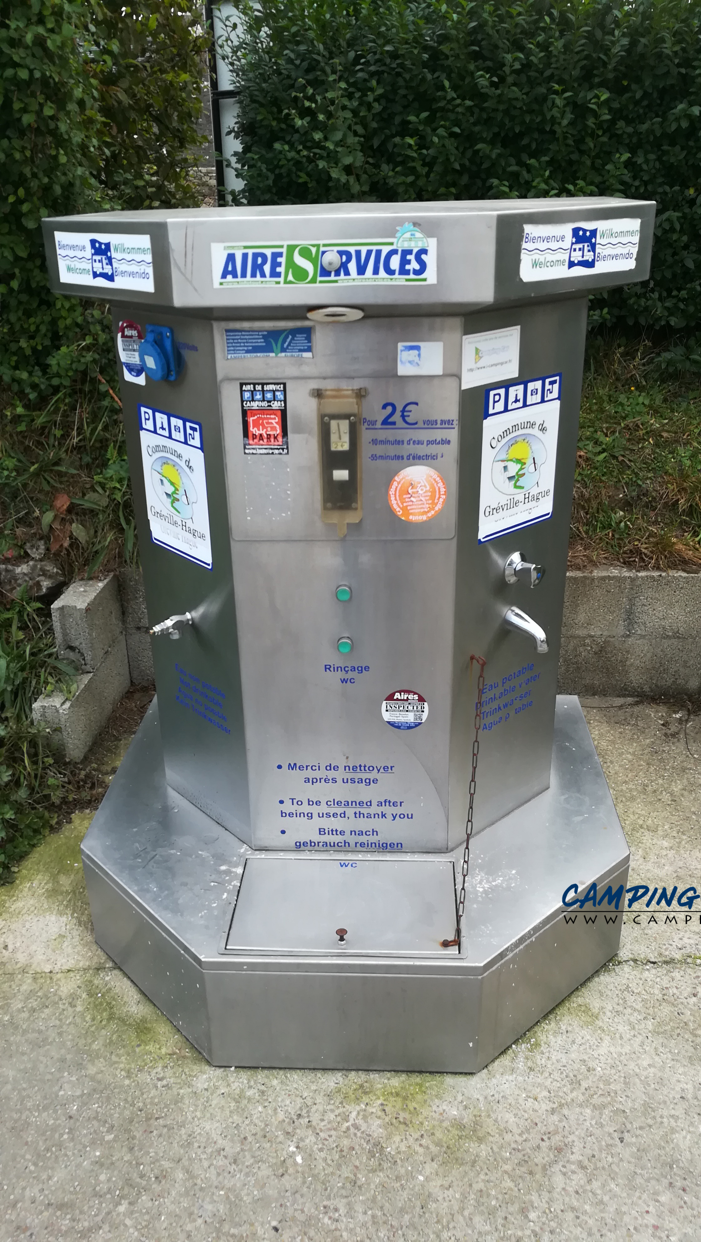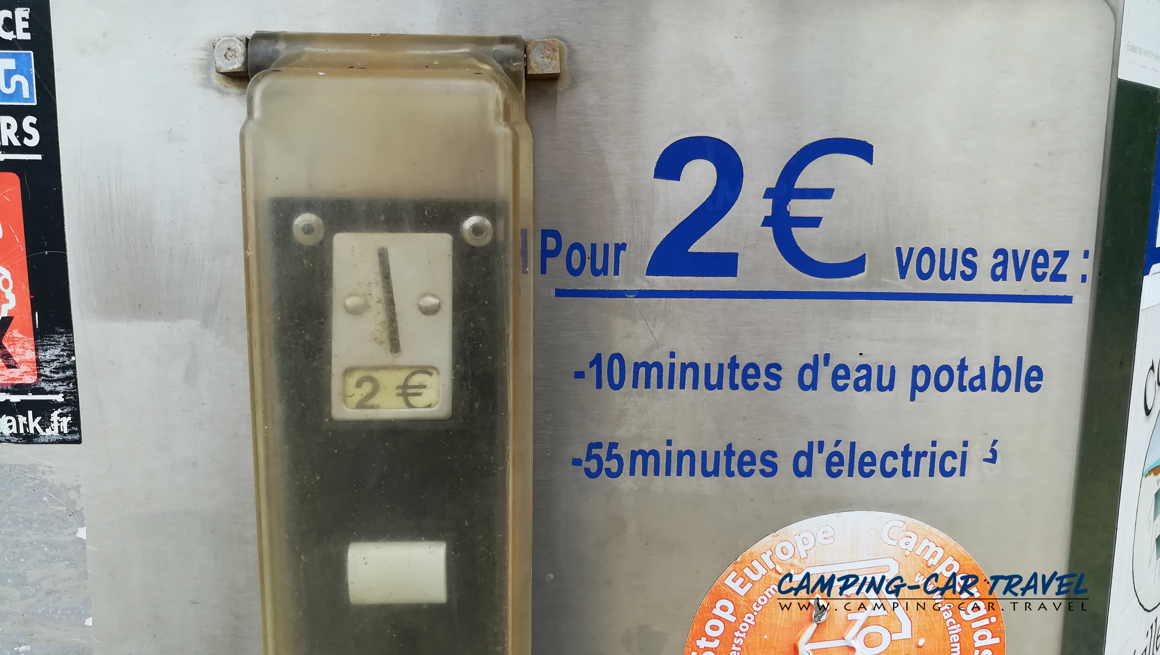 La borne se trouve sur le premier parking à l’entrée et peut être occupée par des voitures parfois.
