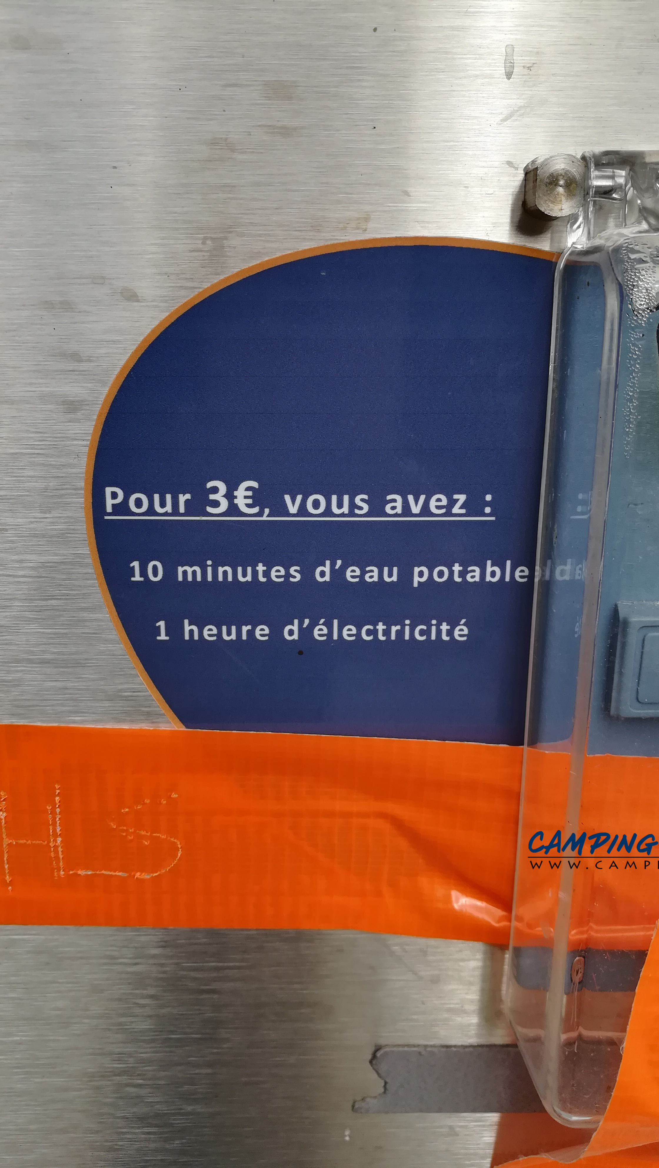 Prix des services : 3 euros en pièces (10 mn d’eau et 1 heure d’électricité).