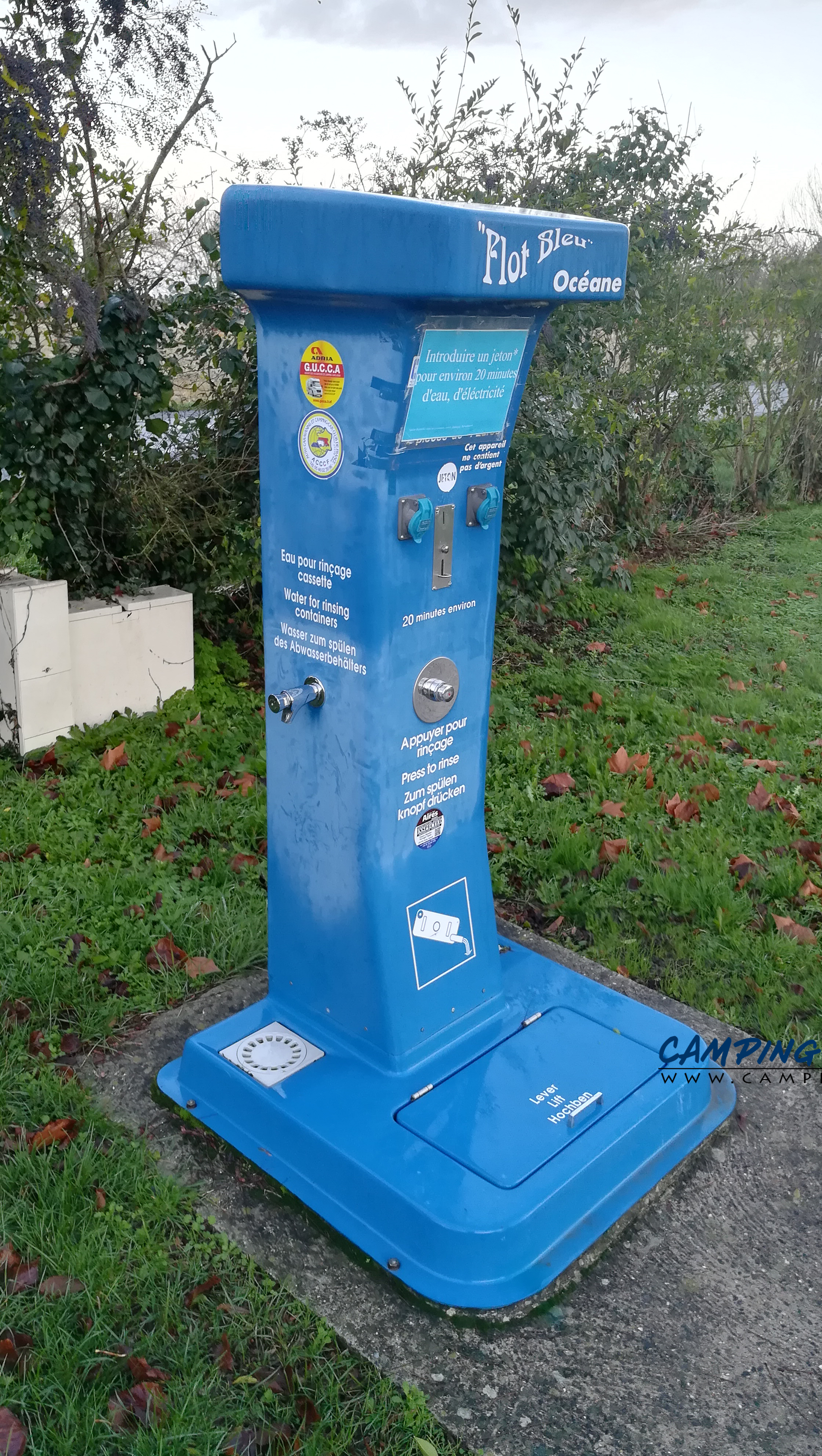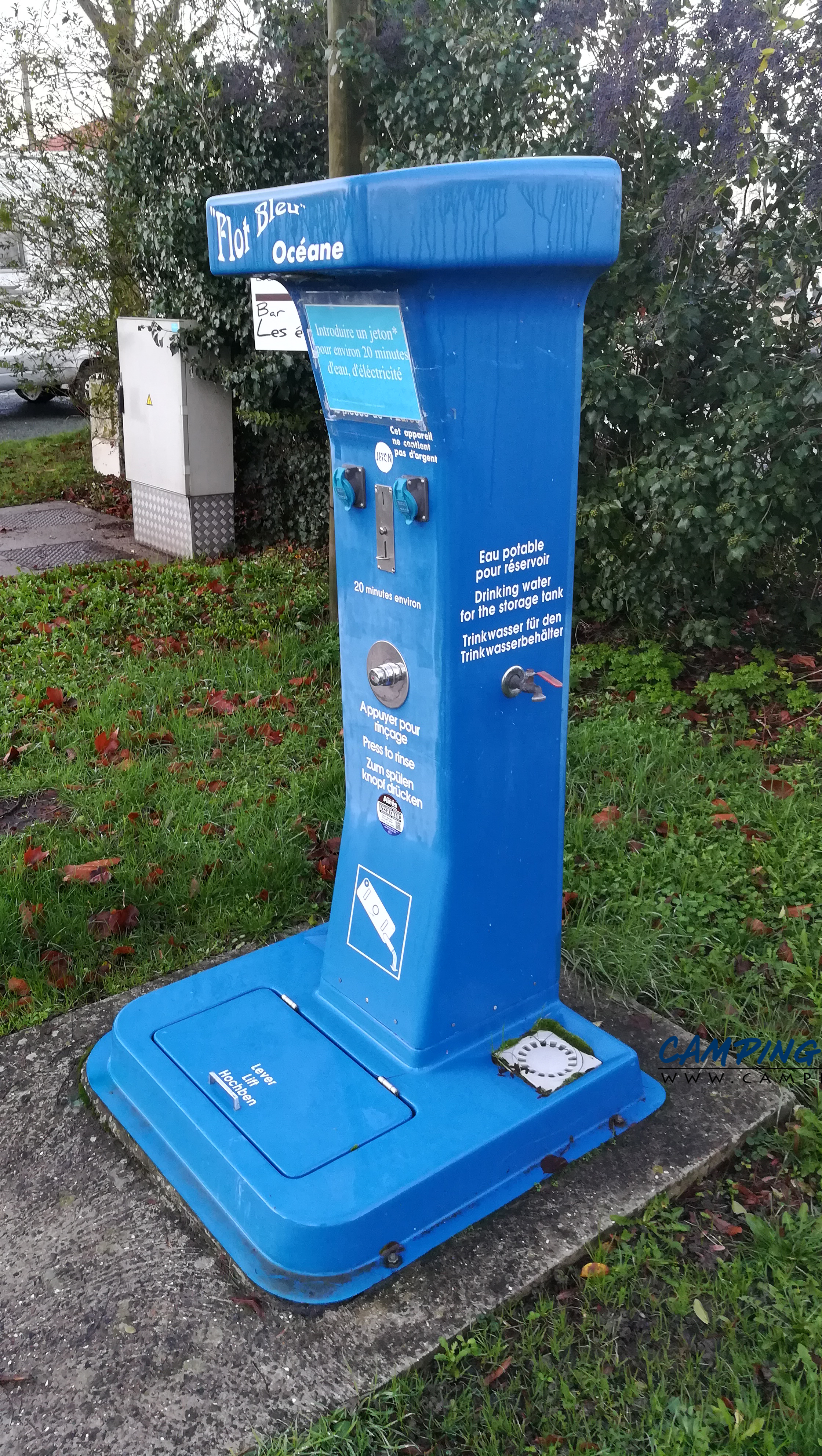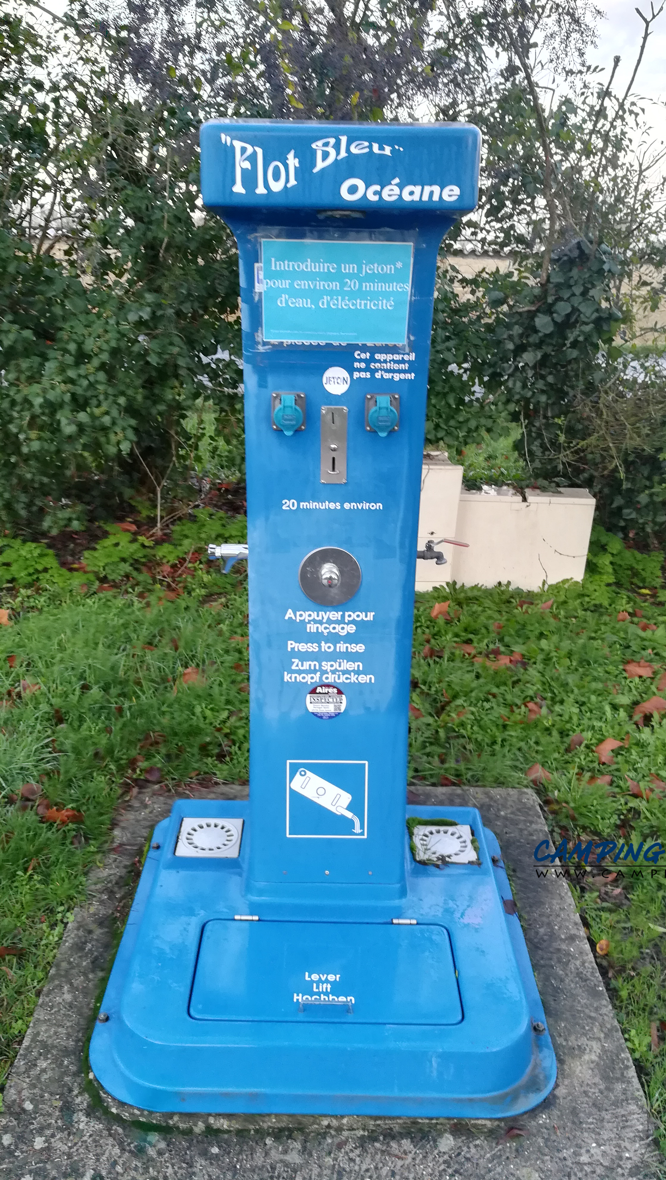 Prix des services : non indiqué, jeton (20 mn d’eau et d’électricité).