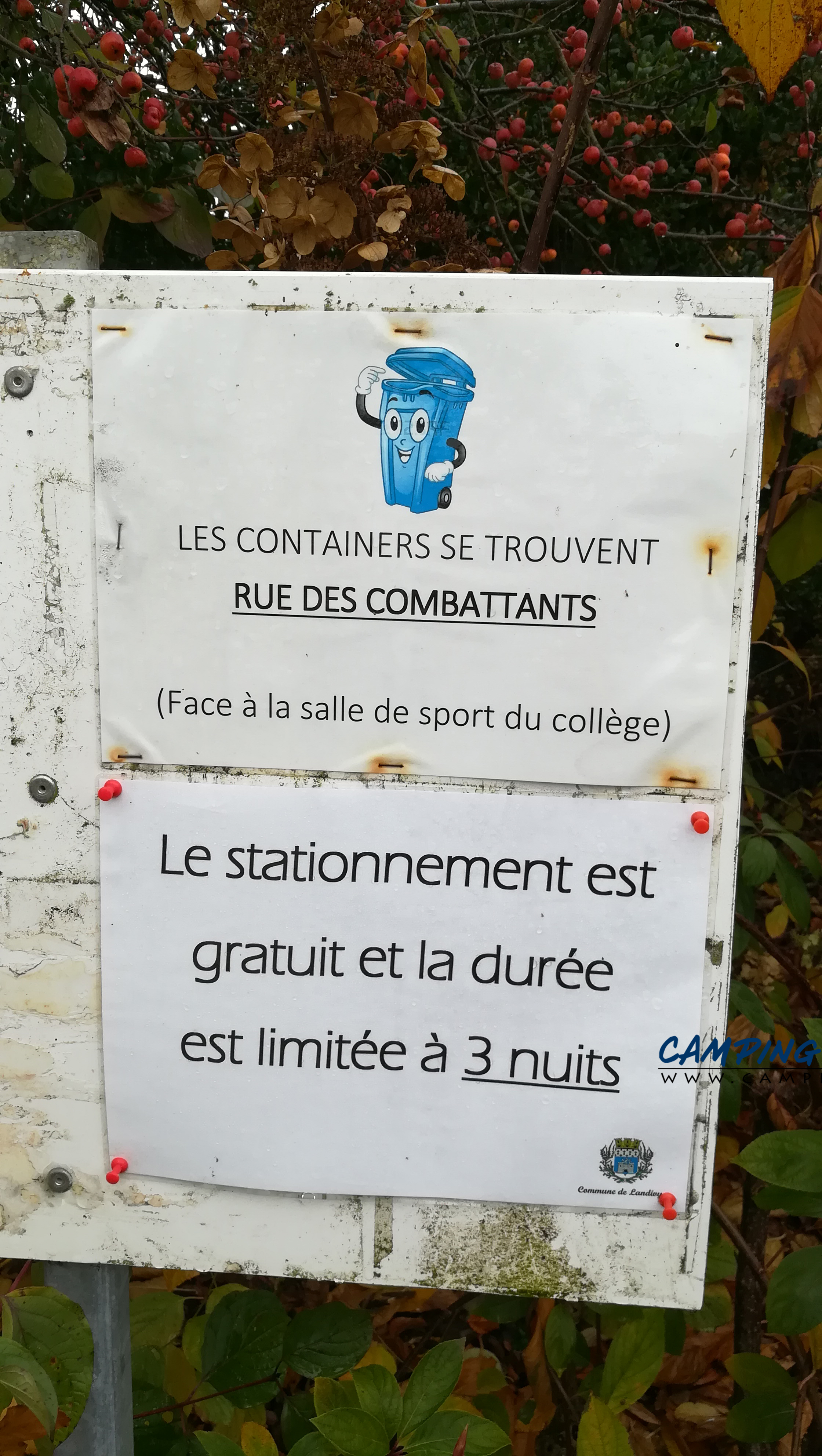 Le stationnement dans un lotissement près du stade est également gratuit (trois nuits maxi).