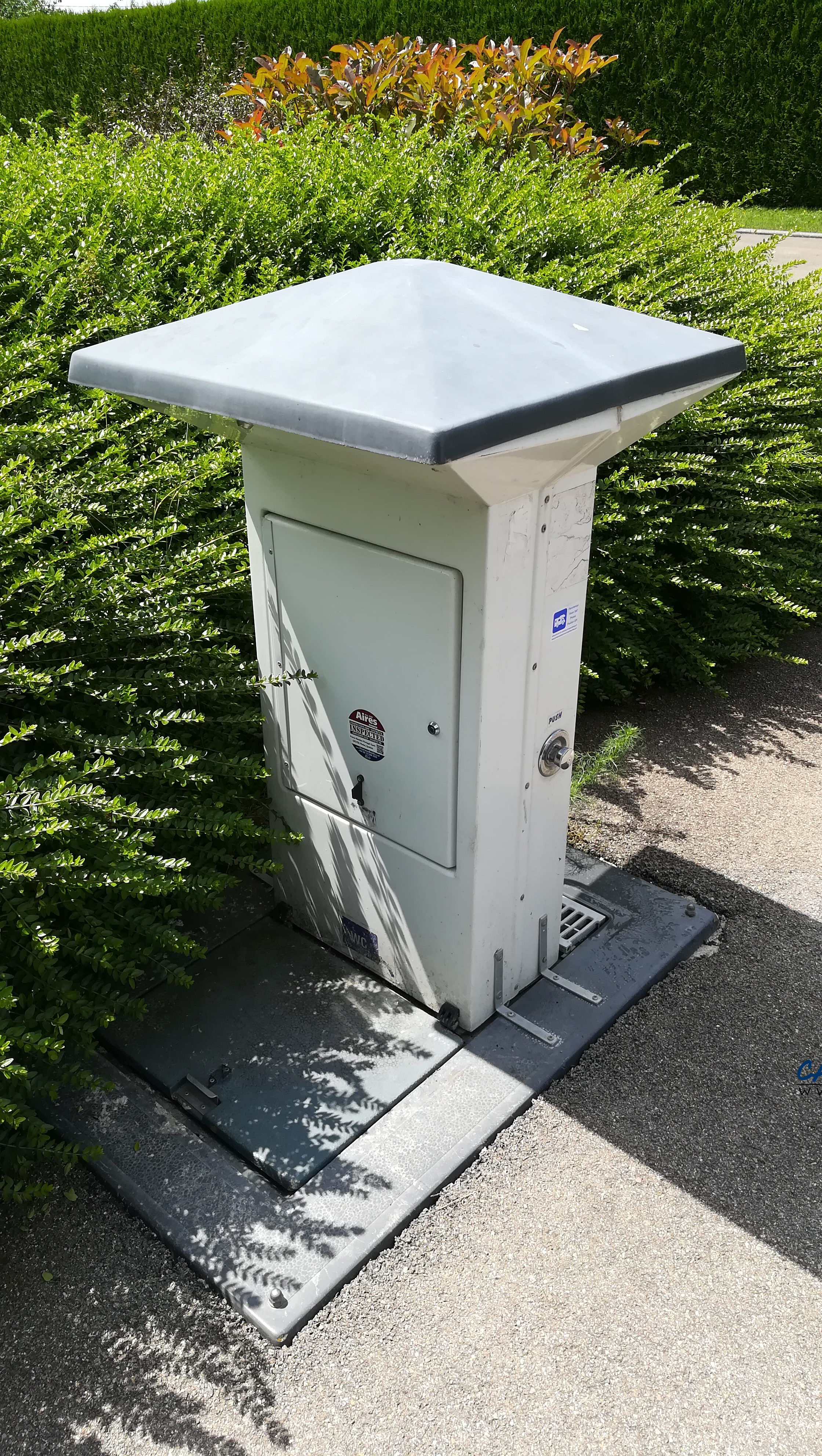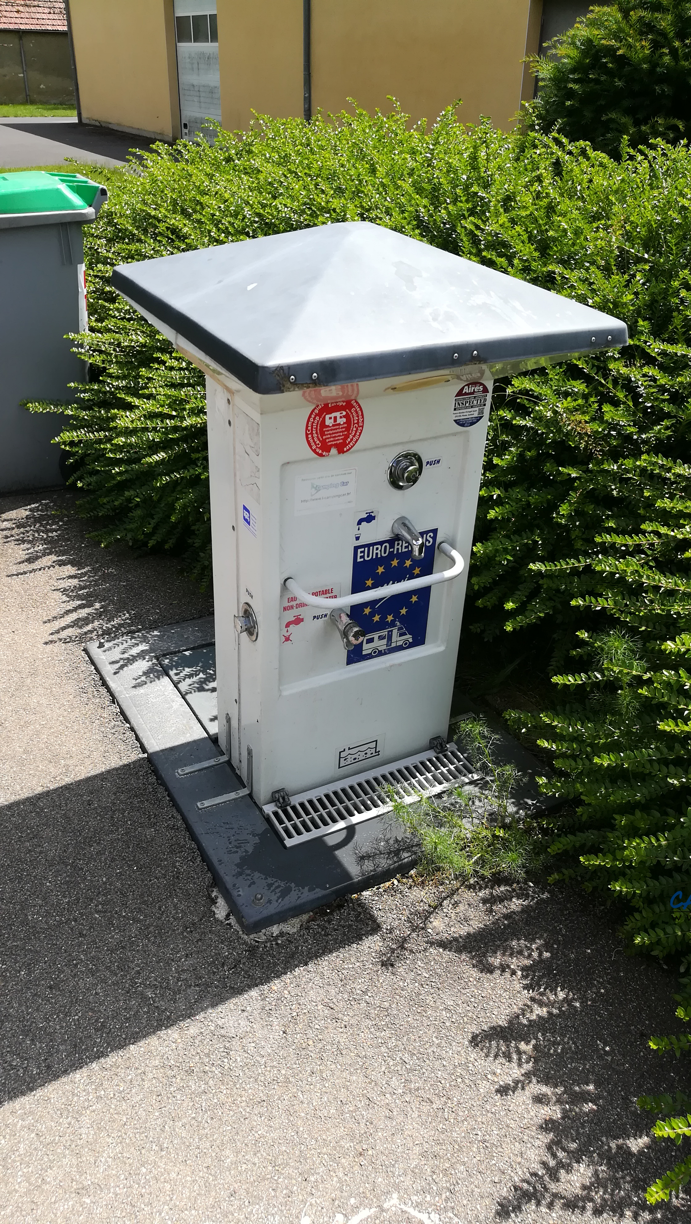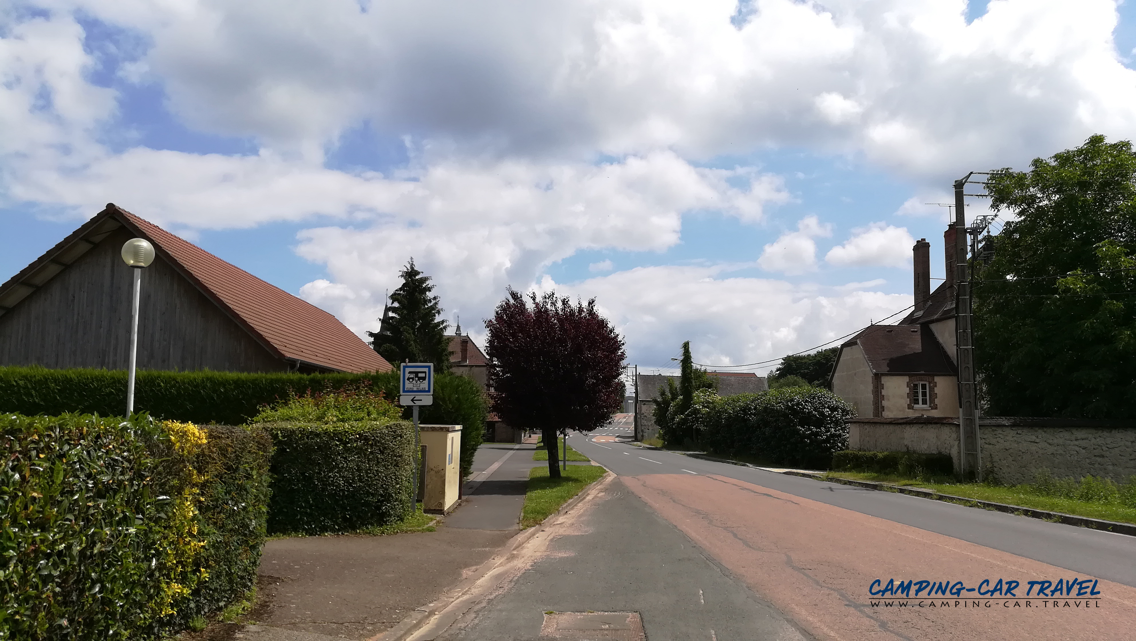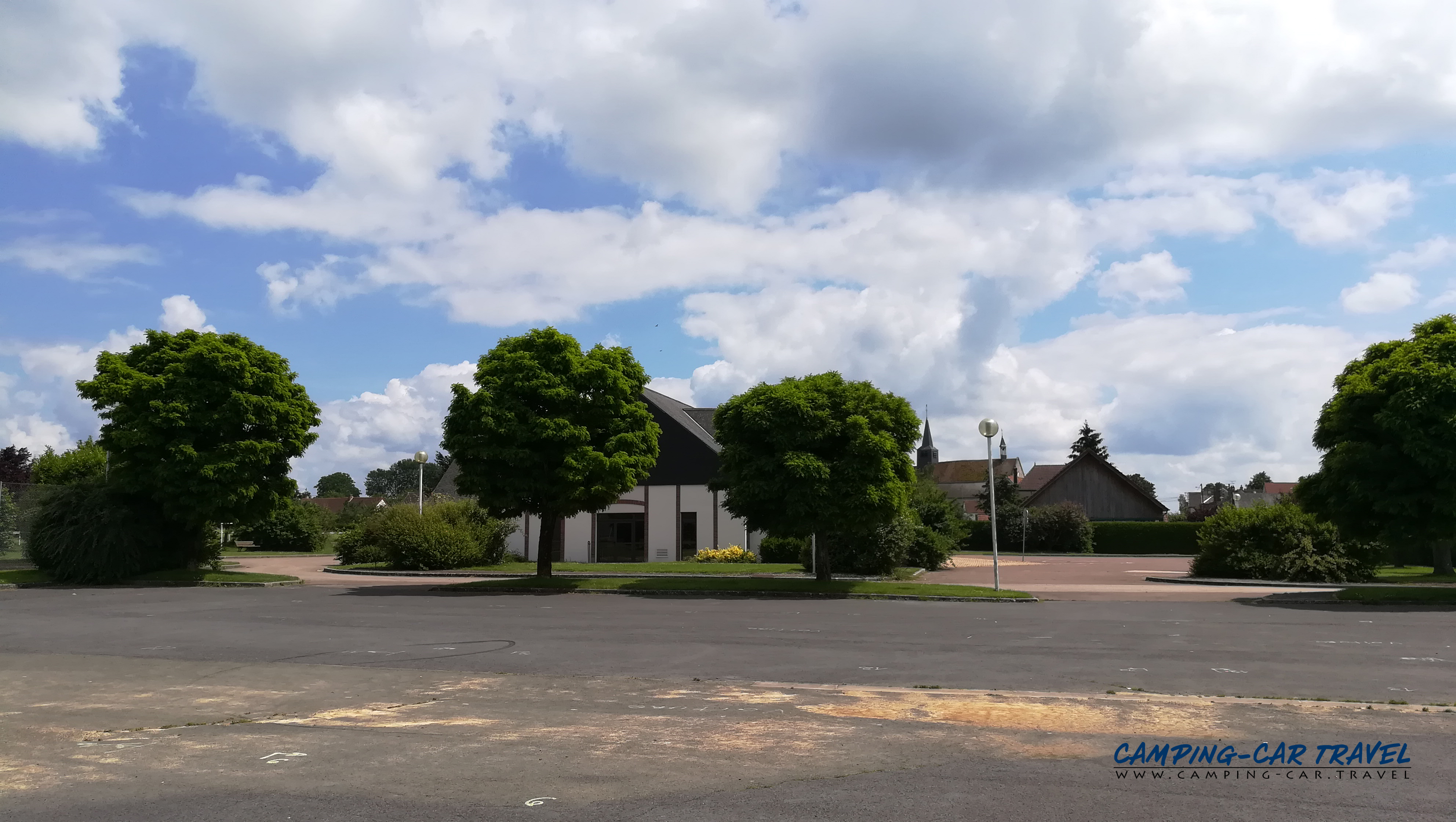 La borne se trouve à côté de la salle des fêtes où il est possible de stationner gratuitement sur le grand parking (le stationnement à côté de la borne n’est pas possible).