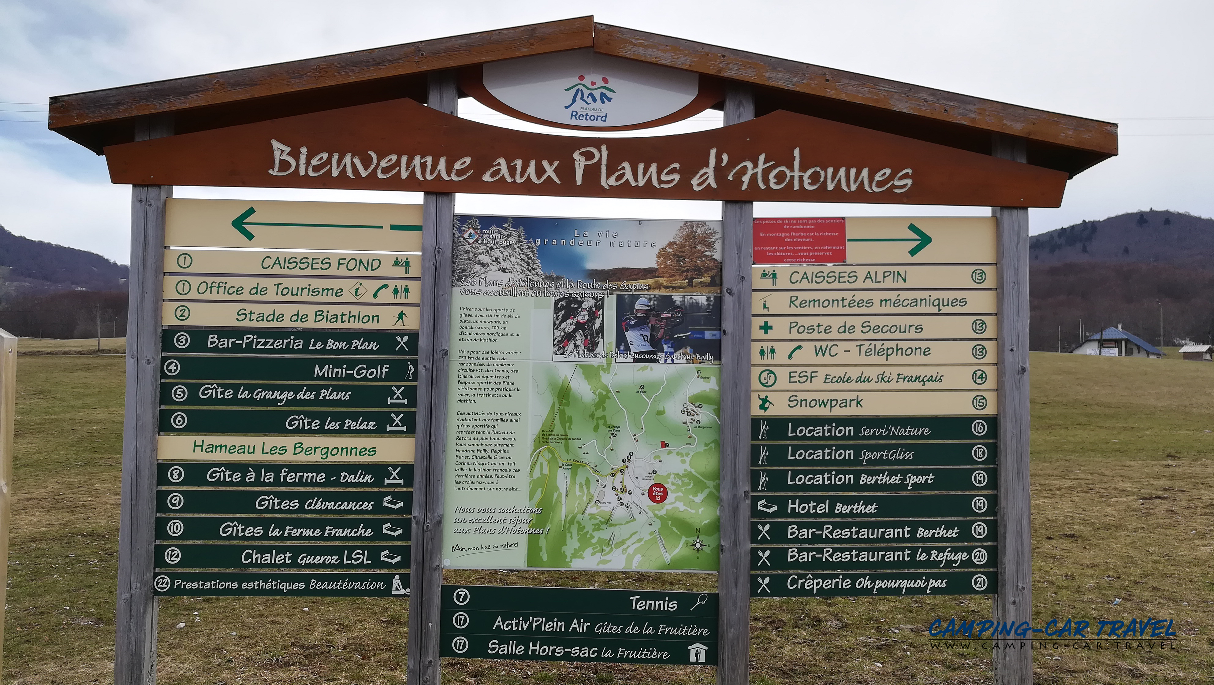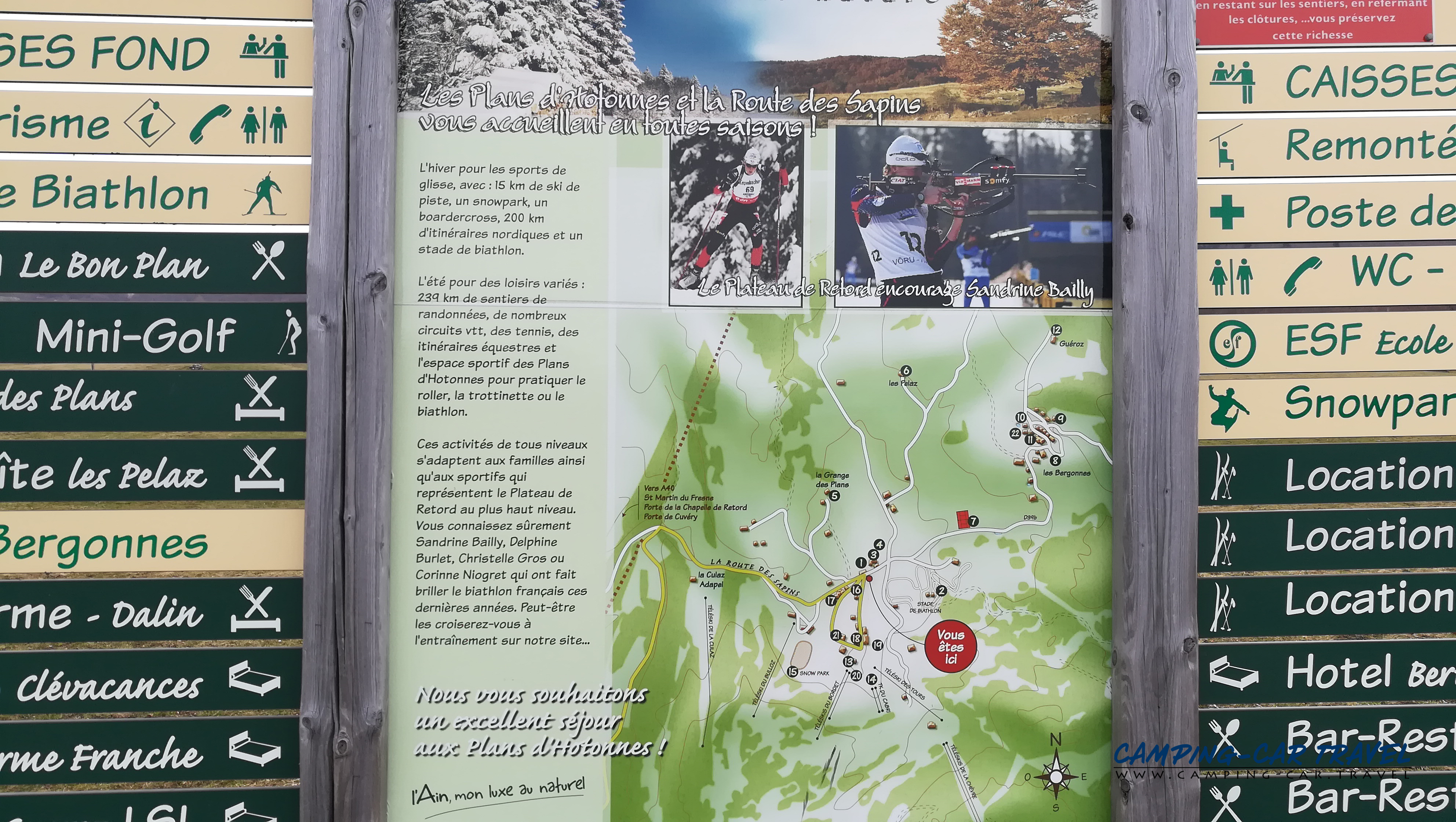 Vous pouvez stationner gratuitement sur le parking du biathlon près du terrain de tennis.