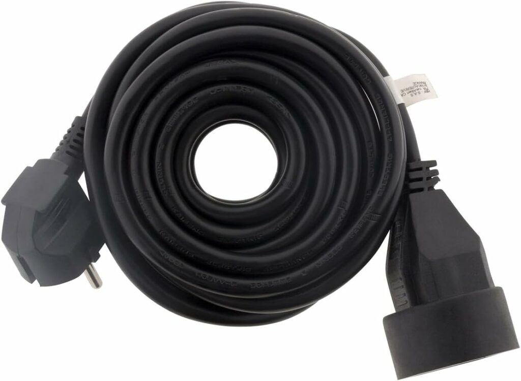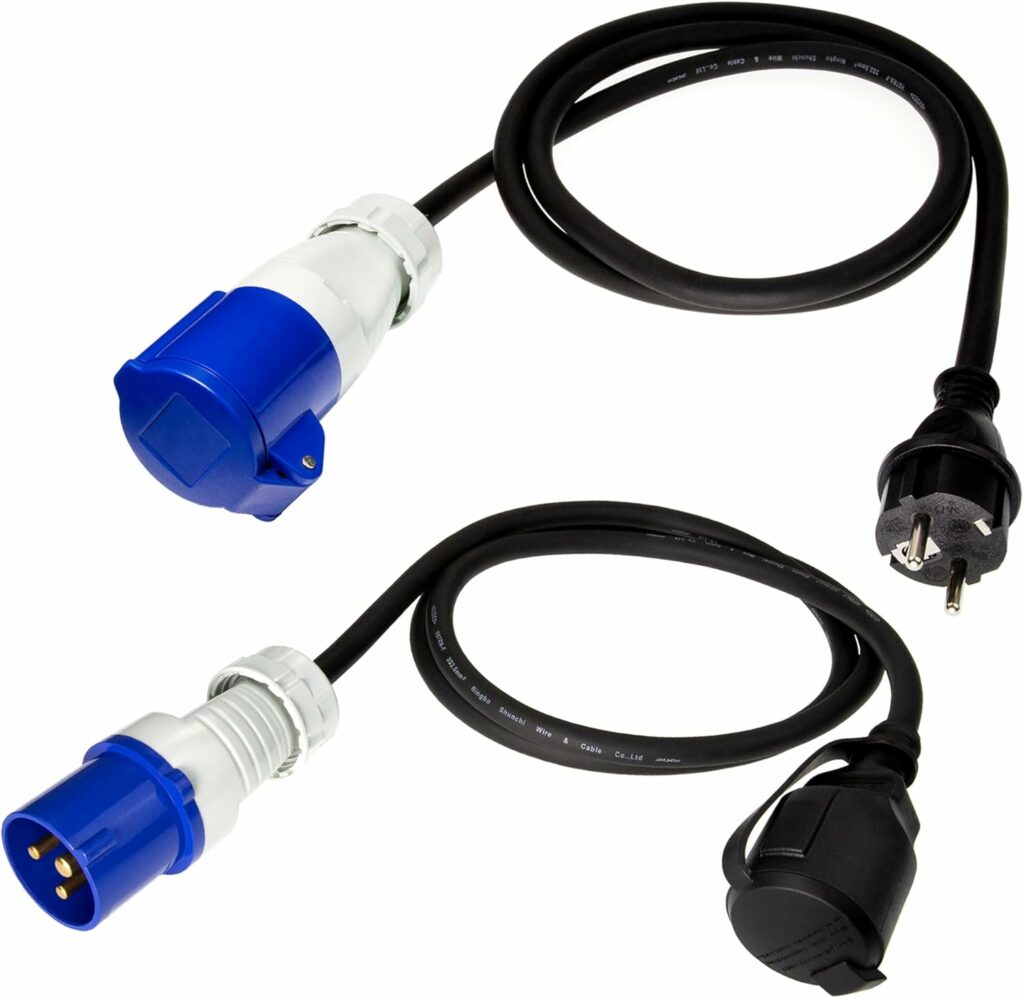 • Un câble avec fiche Schuko (mâle) → prise CEE (femelle) : pour l’inverse, utile quand vous devez utiliser une prise domestique standard pour alimenter un appareil de l’habitacle.