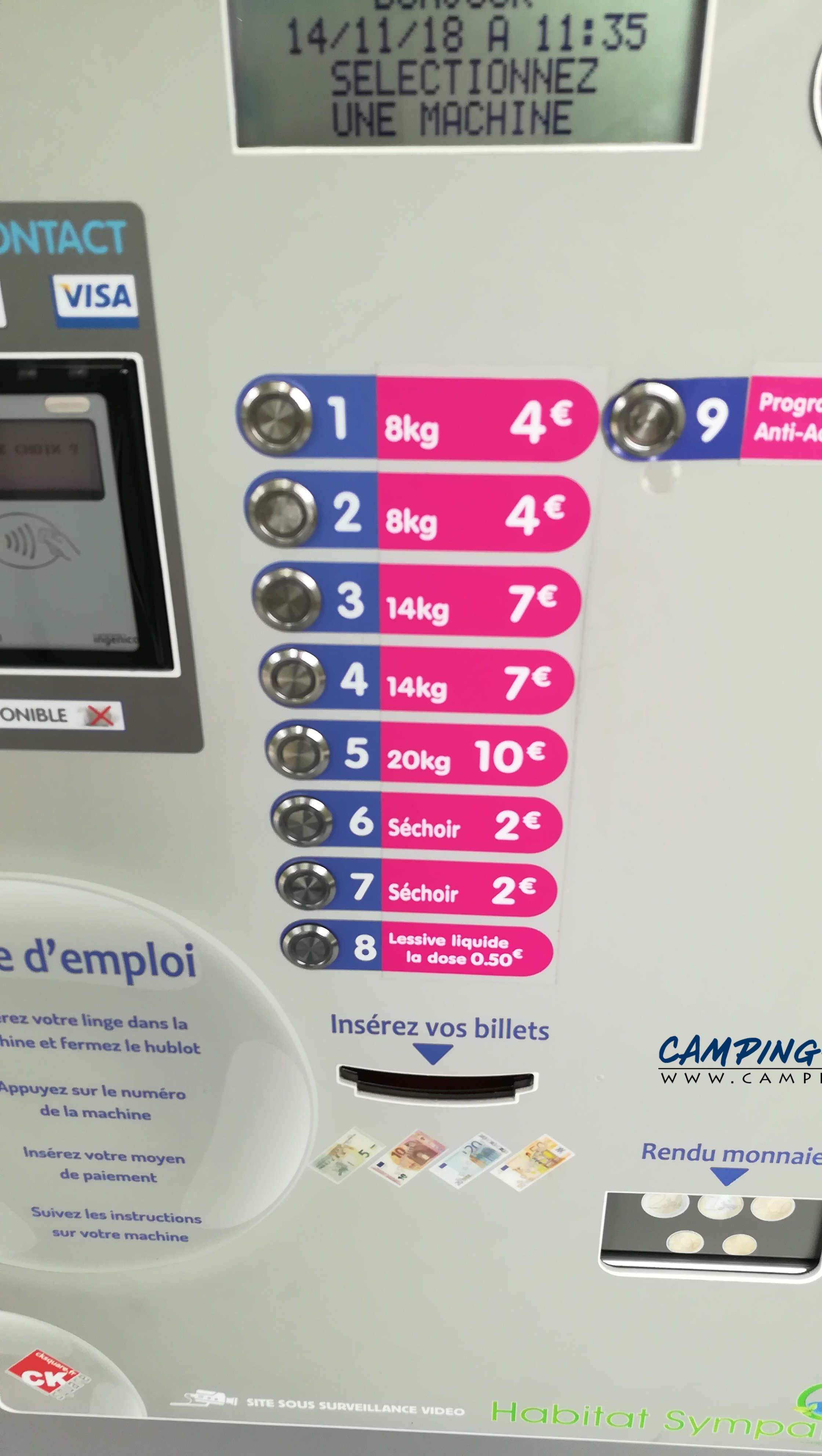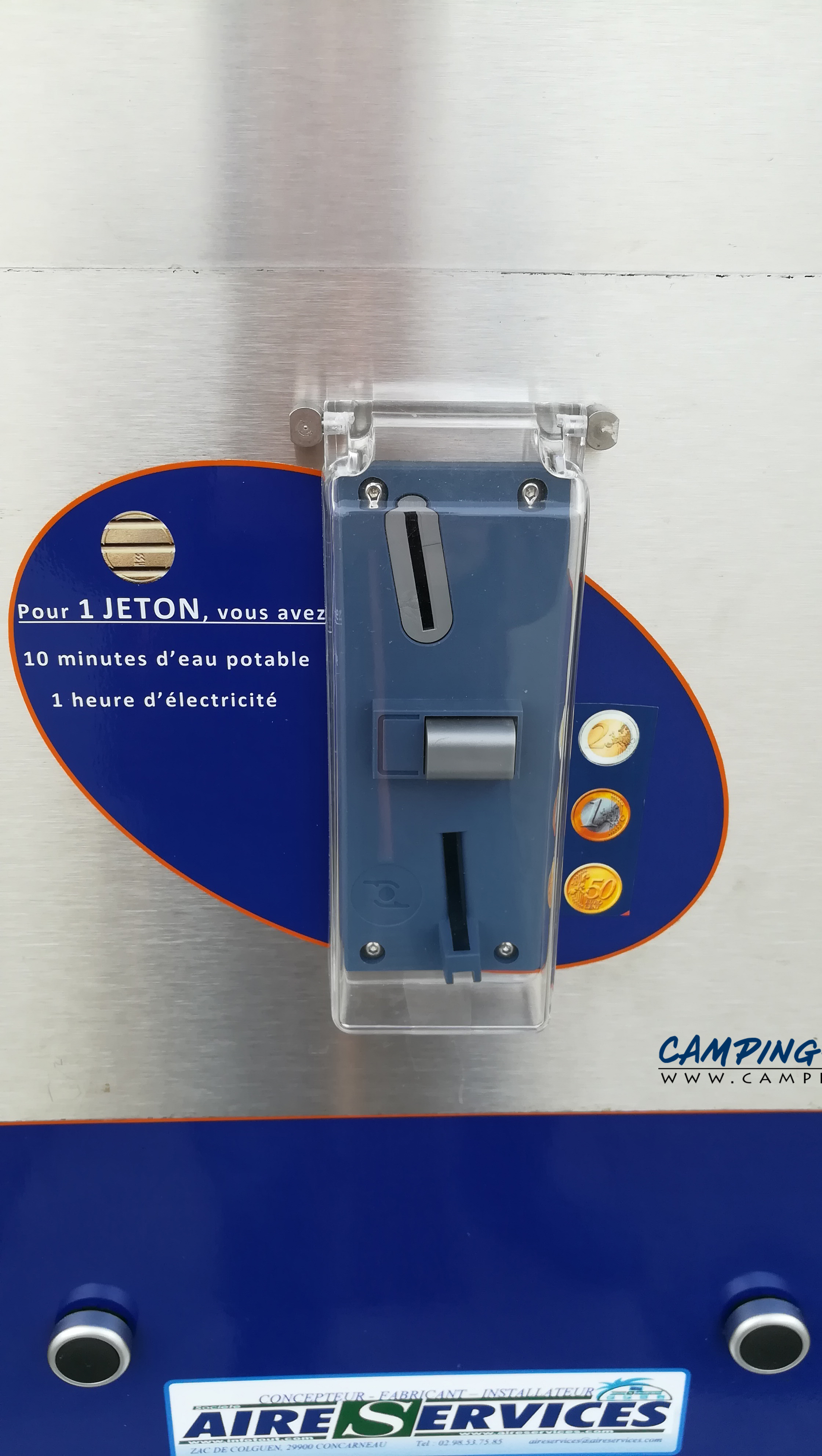 Prix des services : 2 euros en jeton pour 10 min d’eau et 1 heure d’électricité