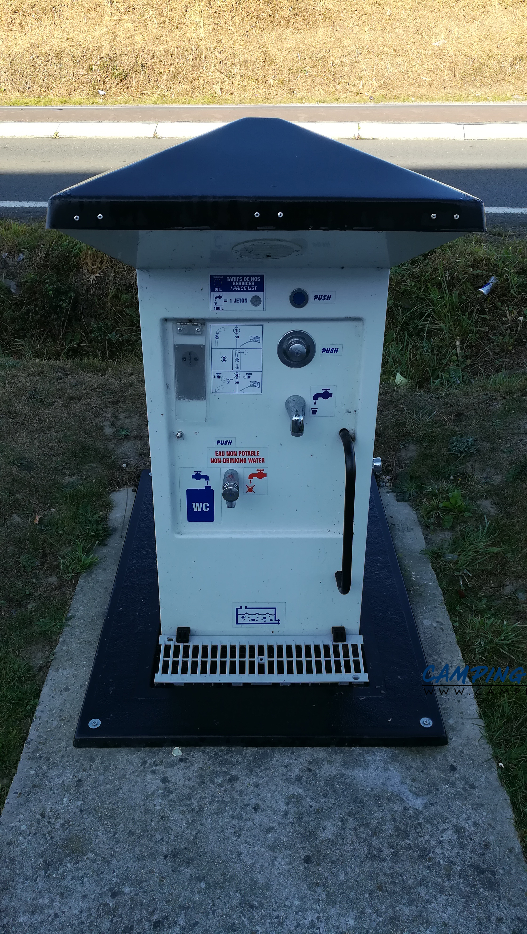 - Eau potable : jeton gratuit avec achat en magasin / 2 € pour 100 L hors achat