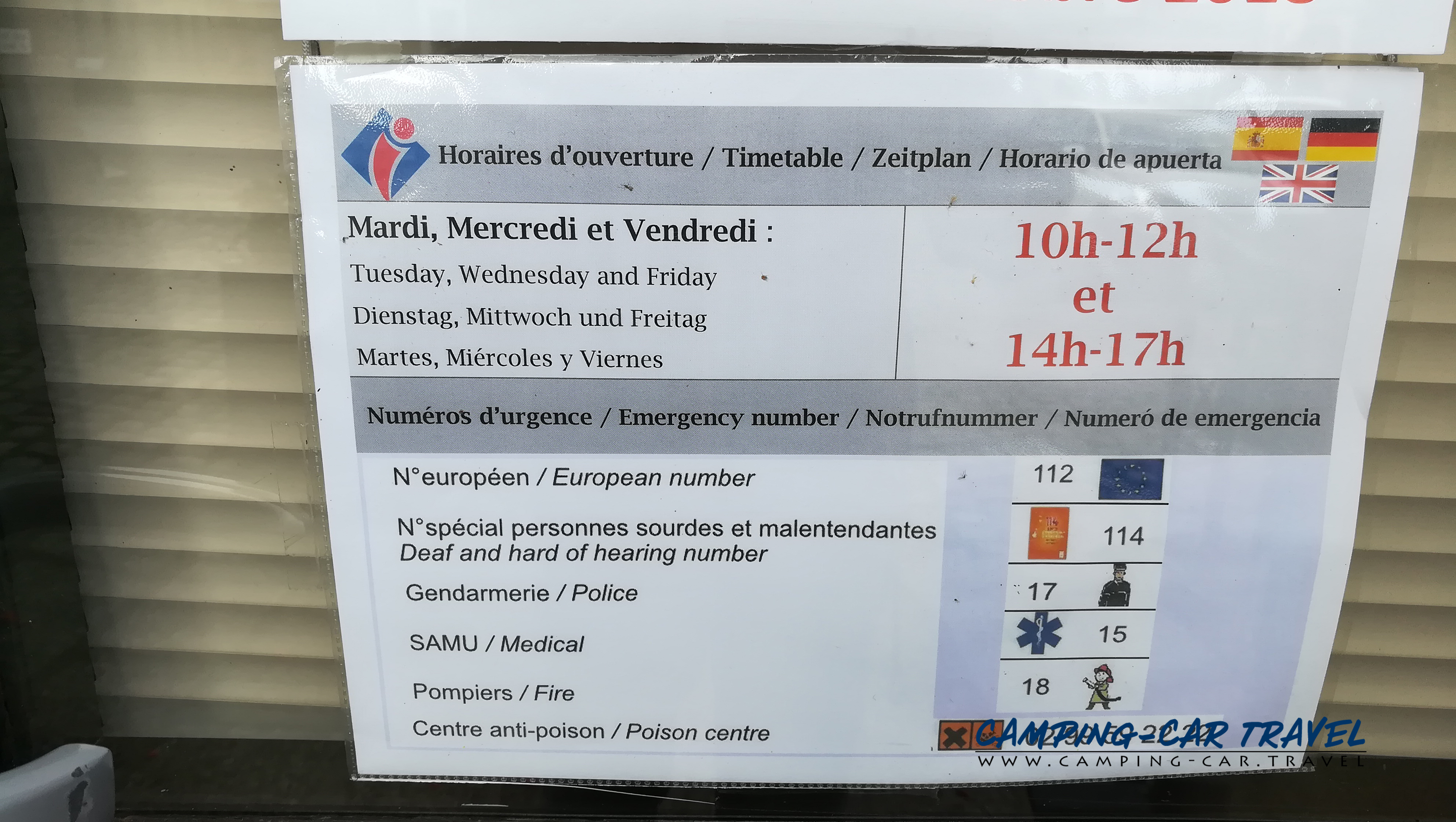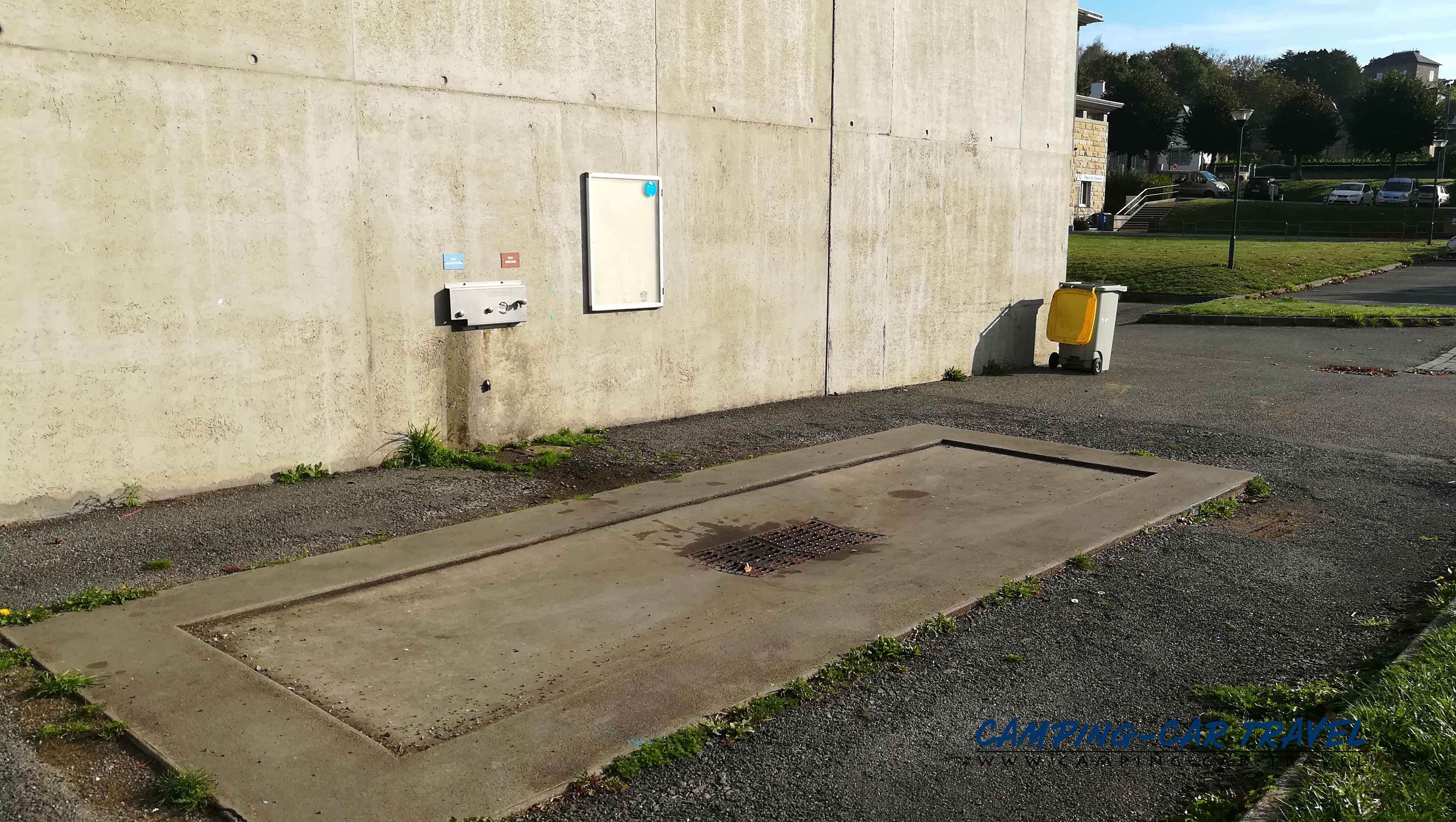 L’aire de services est à côté de la piscine couverte. Les services et le stationnement sont gratuits.