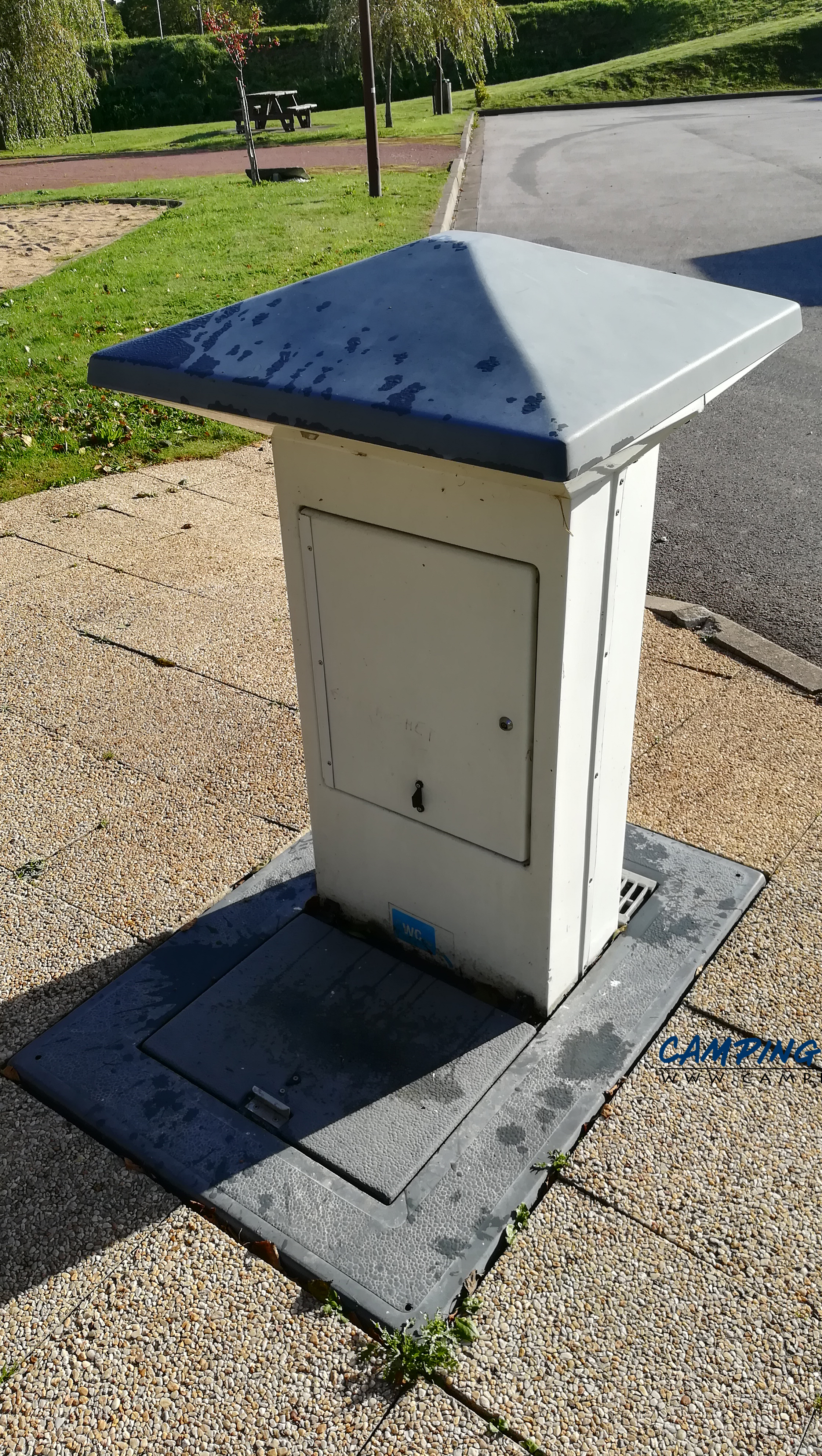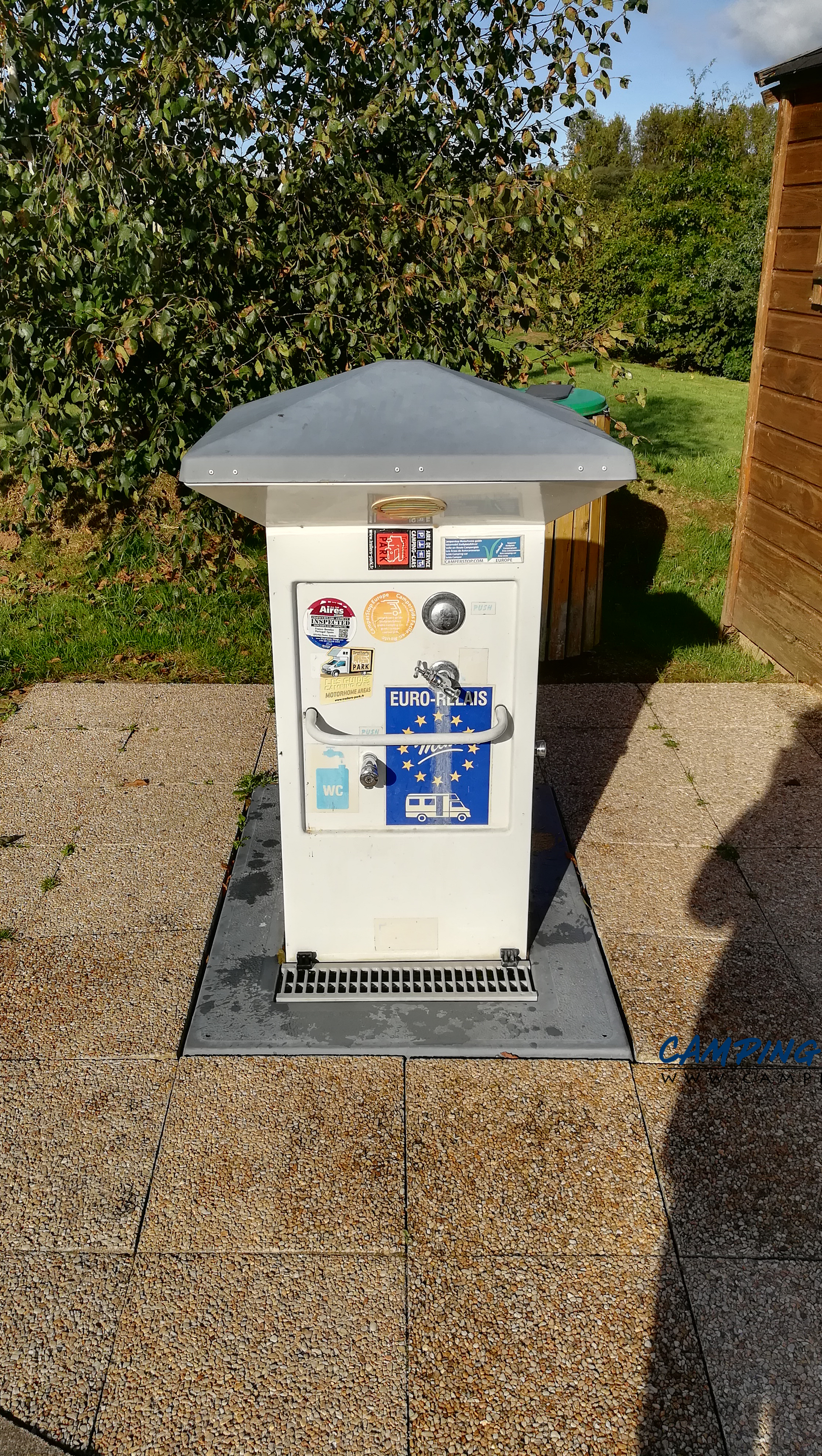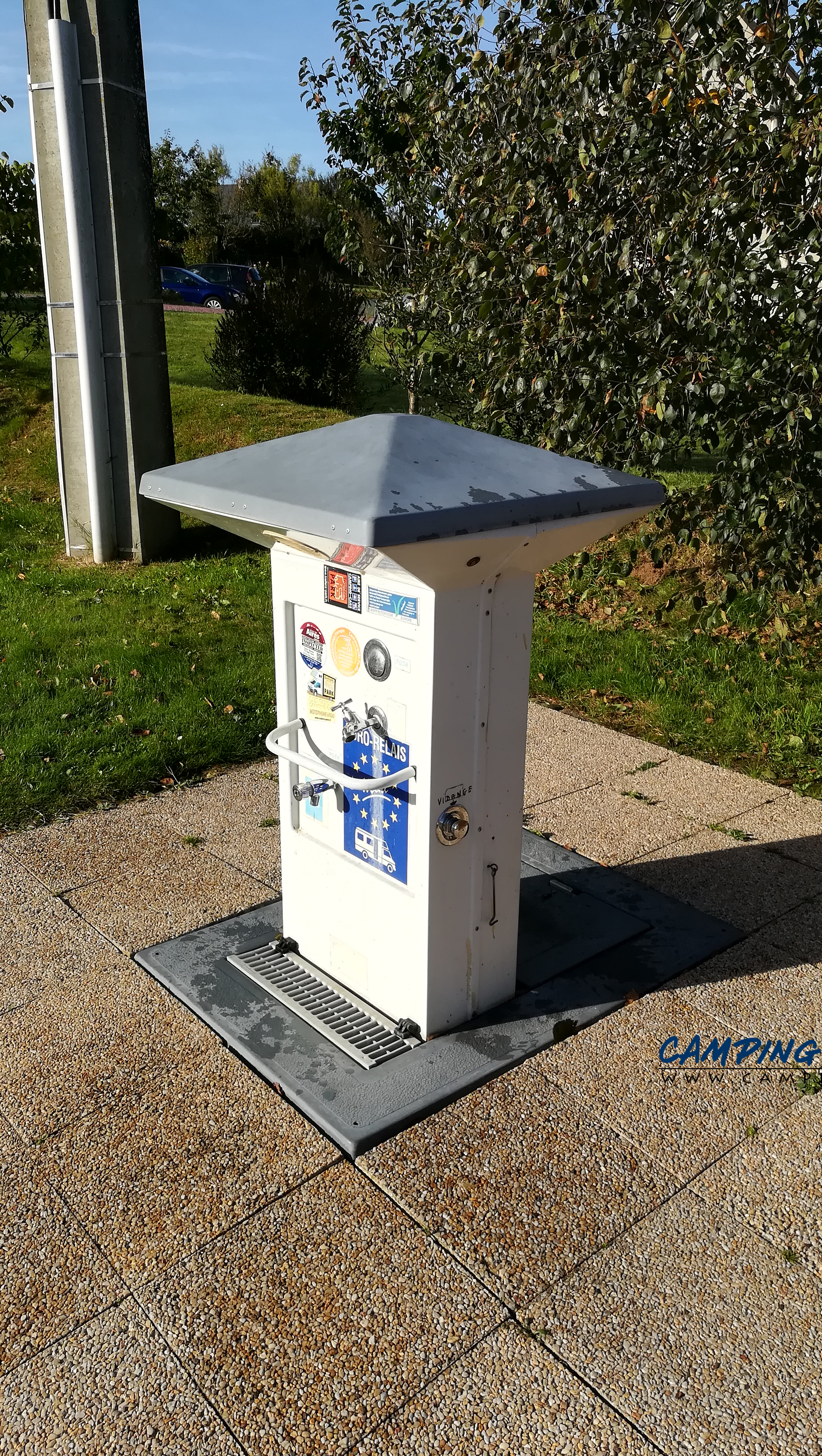 Il y a des toilettes publiques juste à côté de la borne dans le cabanon et des espaces verts.