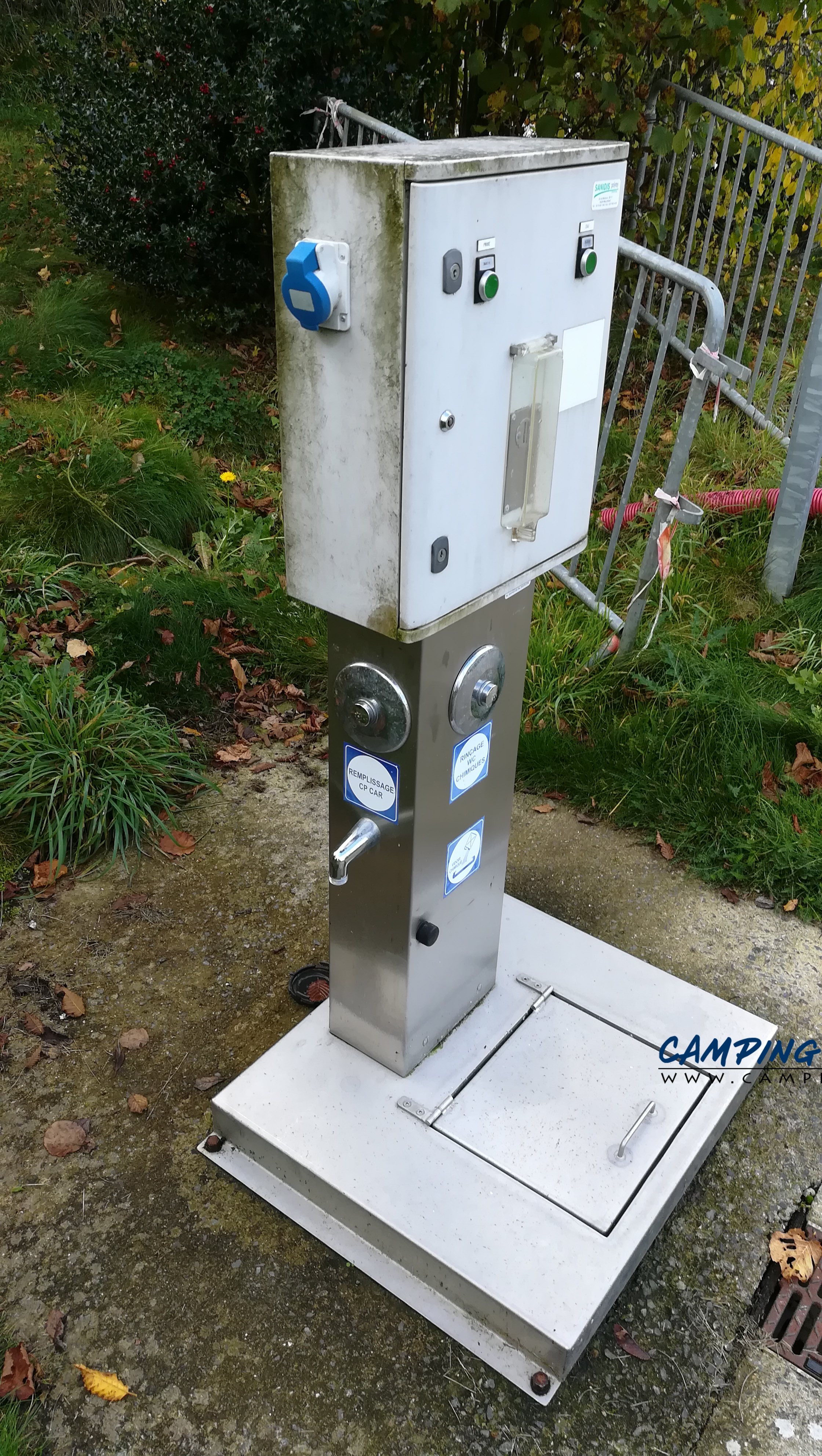 Deux emplacements un peu en pente sont réservés aux camping-cars sur le parking en face de l’auberge où vous pouvez acheter des jetons pour la borne.