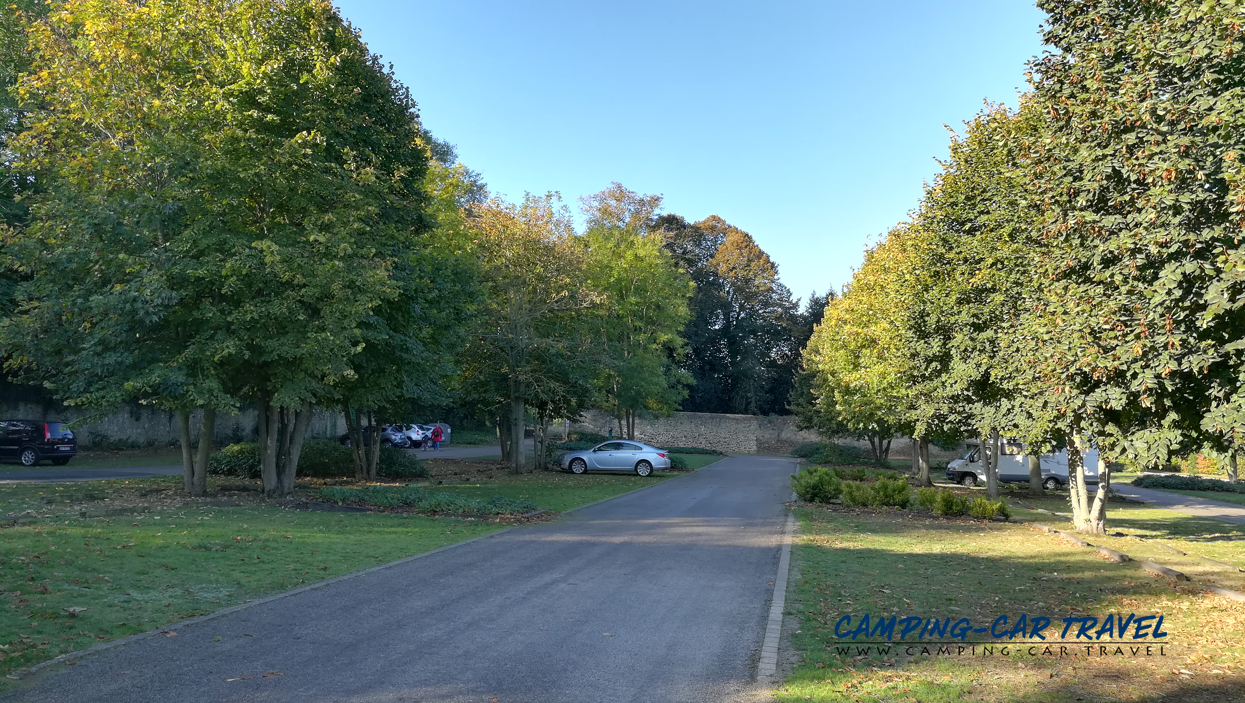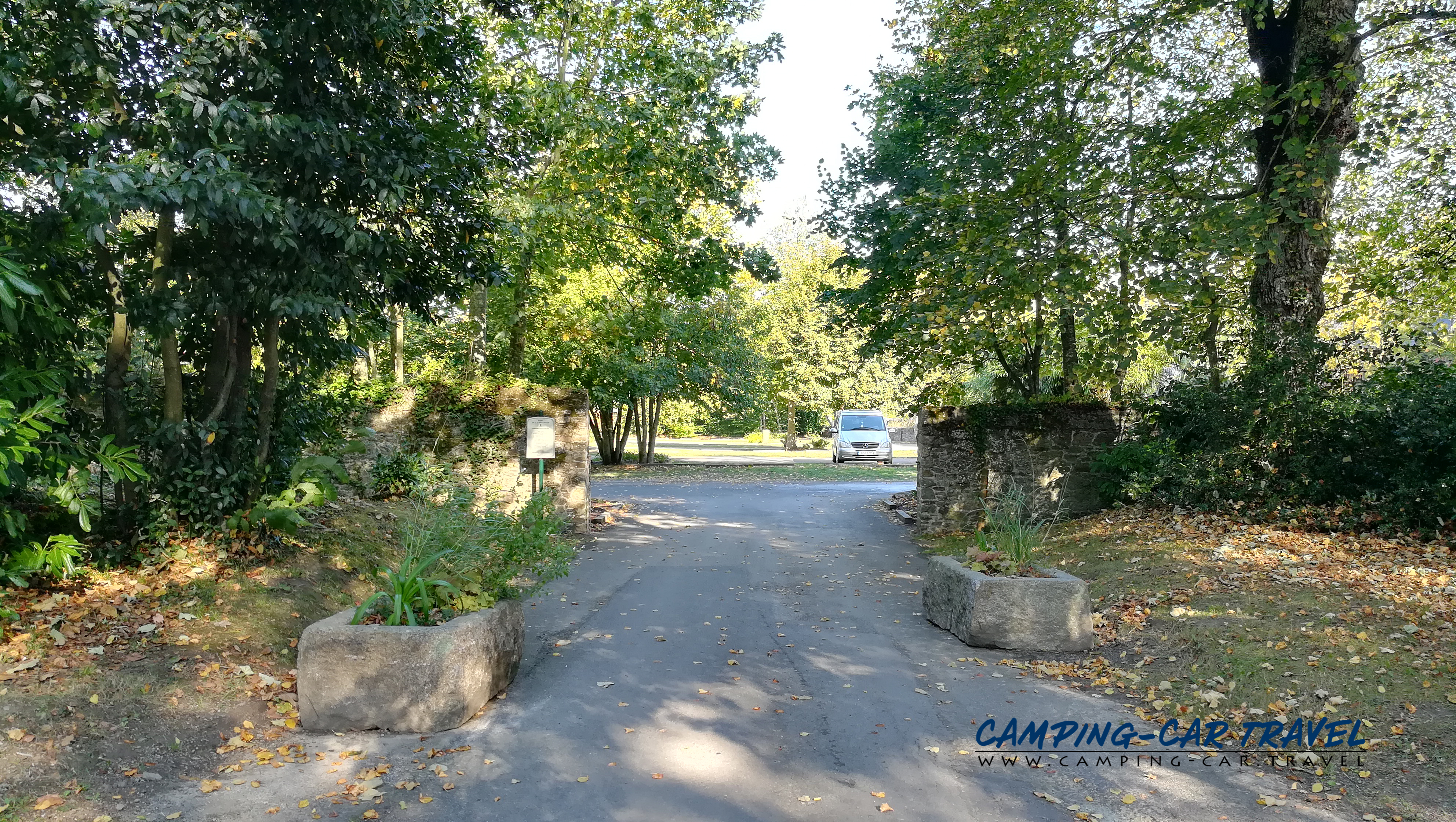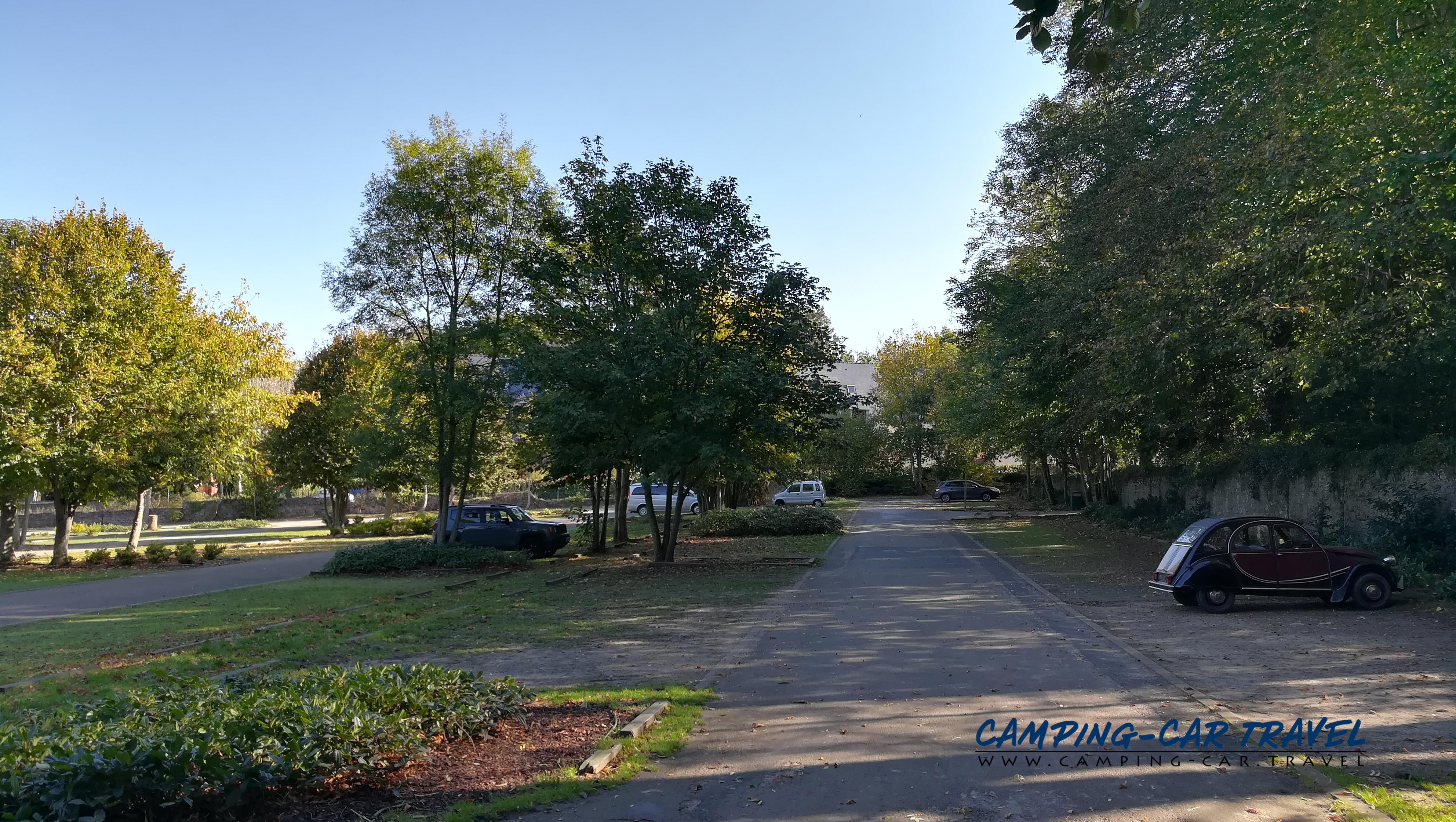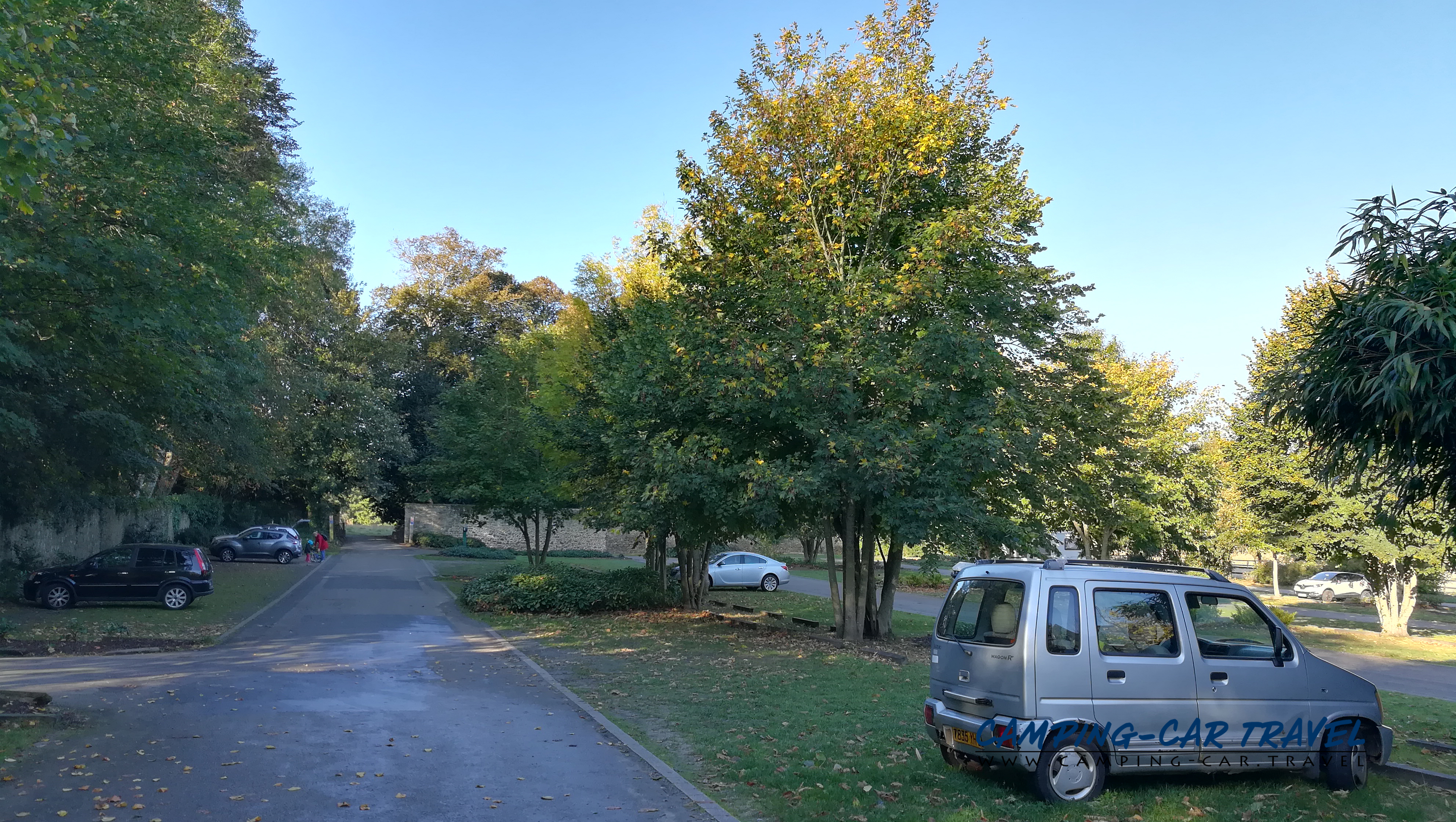 L’entrée est assez étroite pour les longs gabarits mais il vaut le coup car le parc est très joli avec son château et ses arbres. Il y a aussi des toilettes publiques.