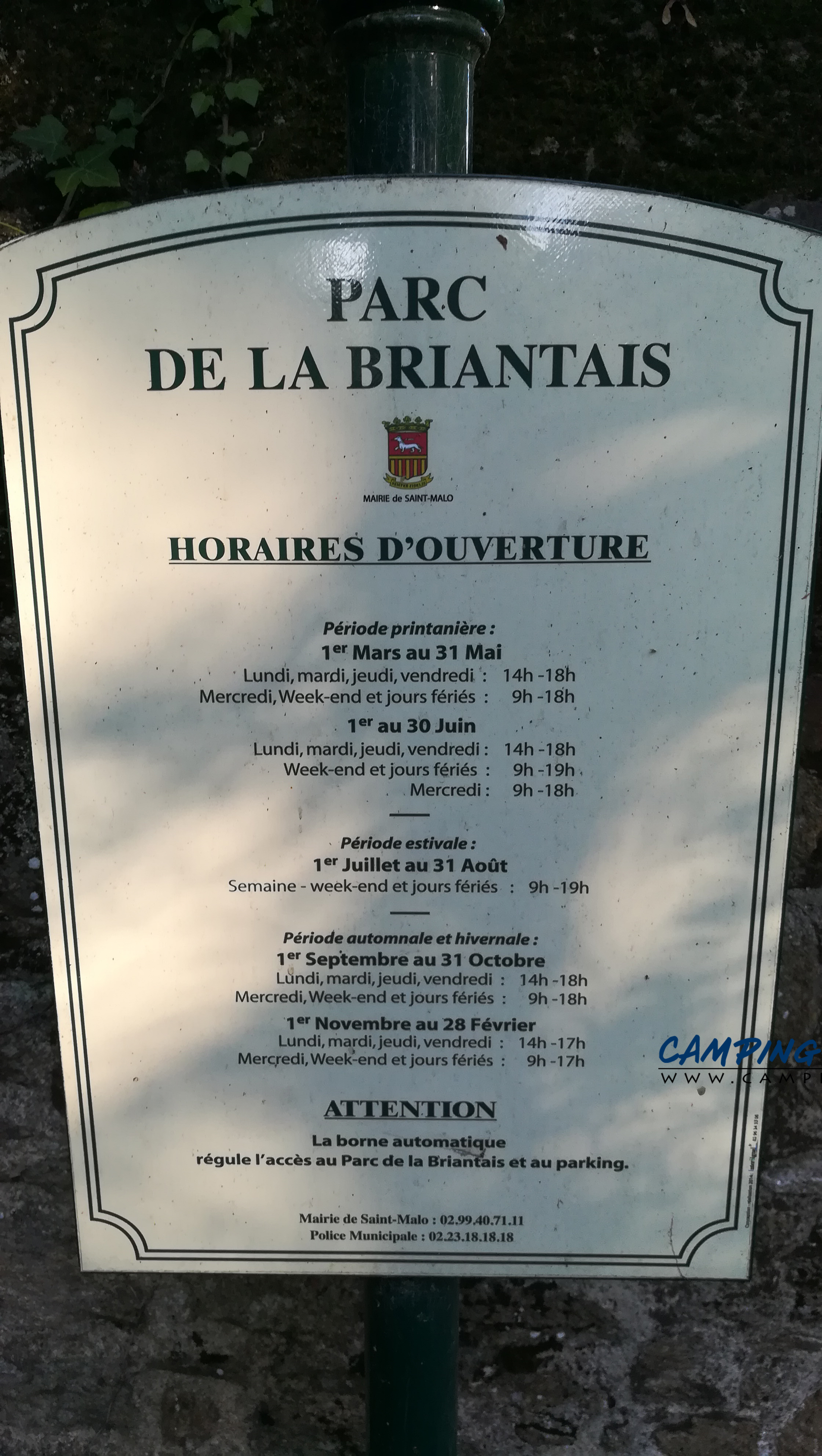 Si vous souhaitez visiter Sain-Malo en Ille-et-Vilaine (Bretagne), nous vous conseillons le parking arboré gratuit du parc de la Briantais.