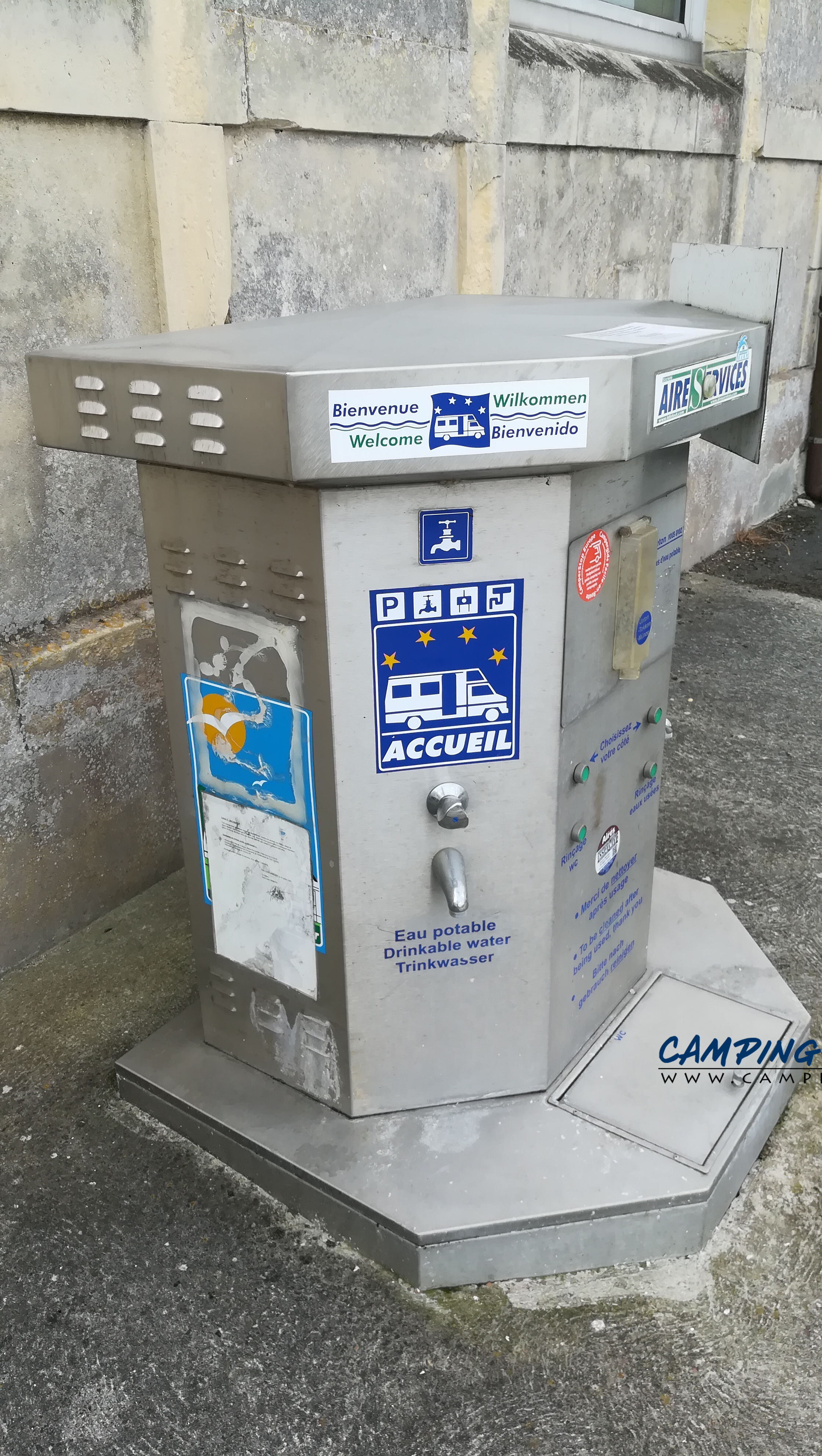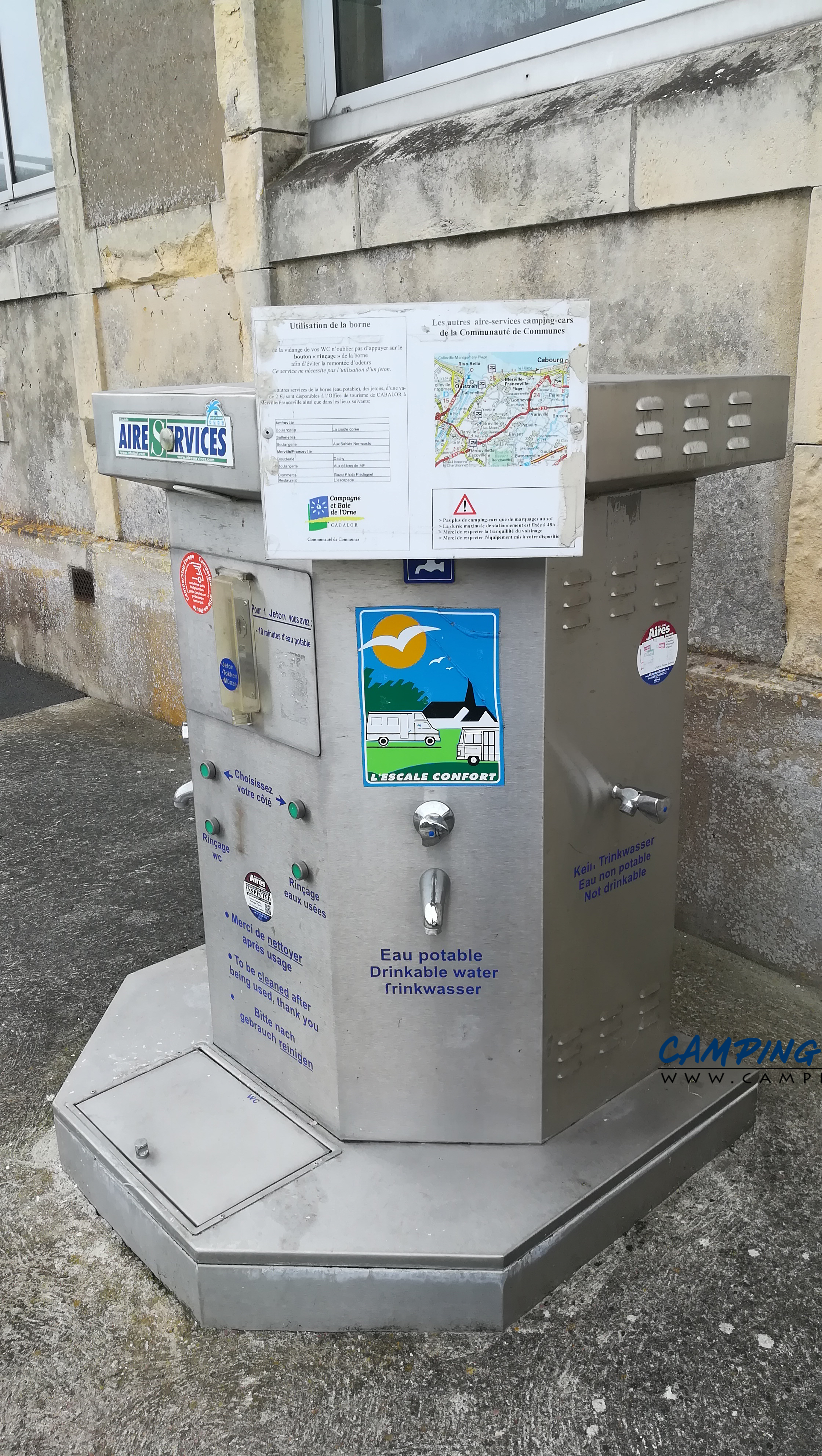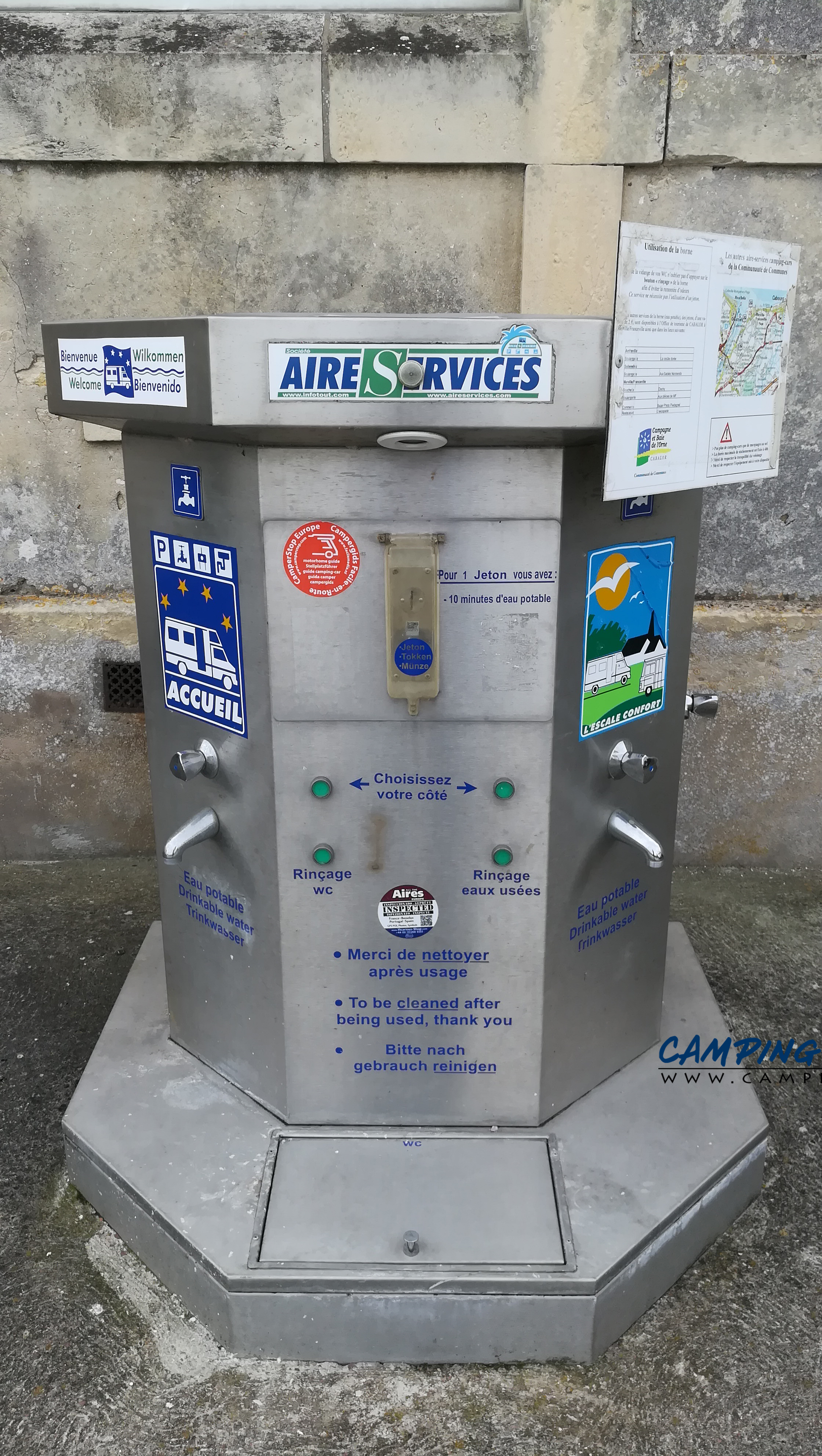 La borne utilise des jetons. Pour deux euros vous avez 10 minutes d’eau.