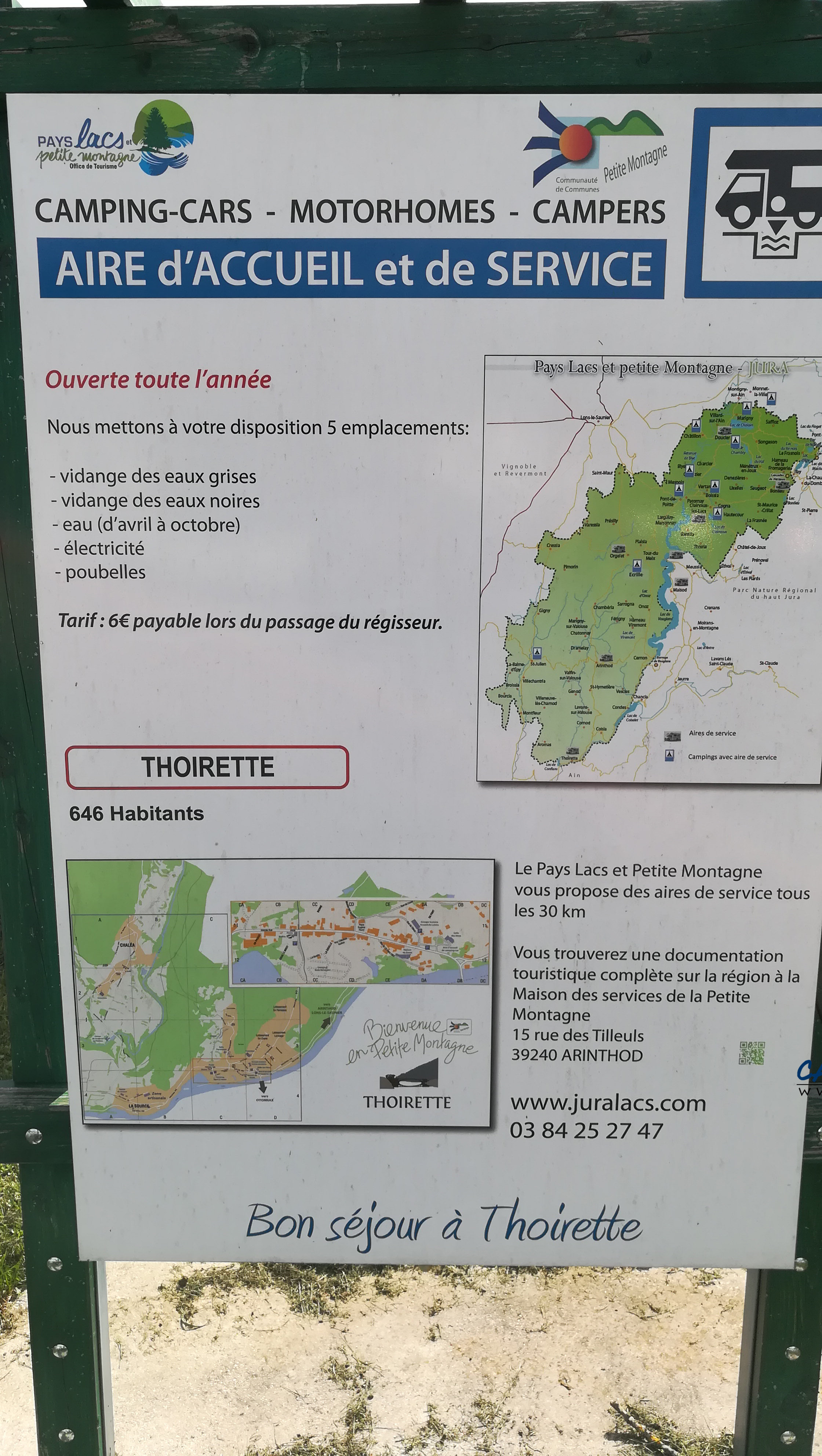 Le stationnement et l’électricité coûtent six euros mais si vous êtes de passage, l’eau et la vidange sont gratuites.