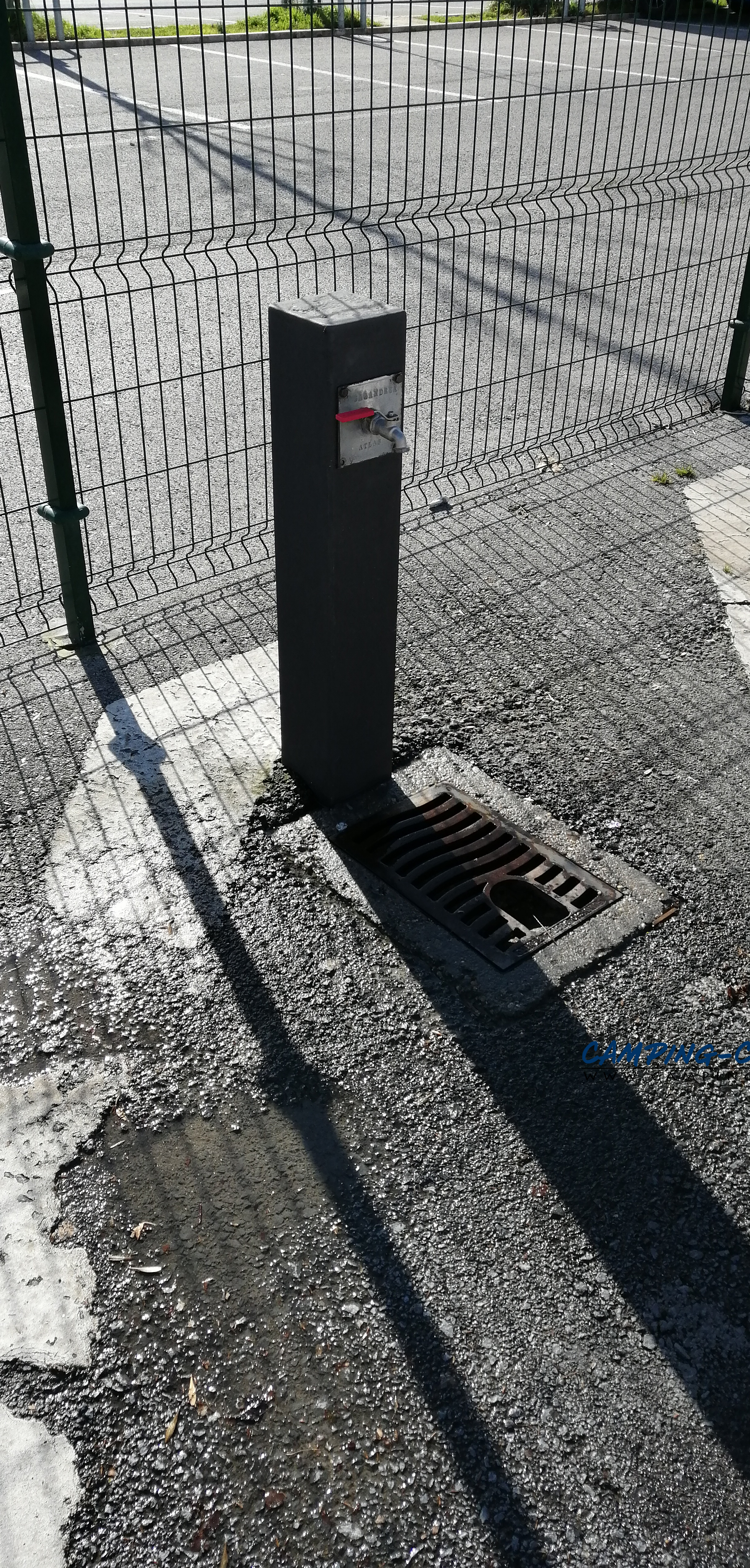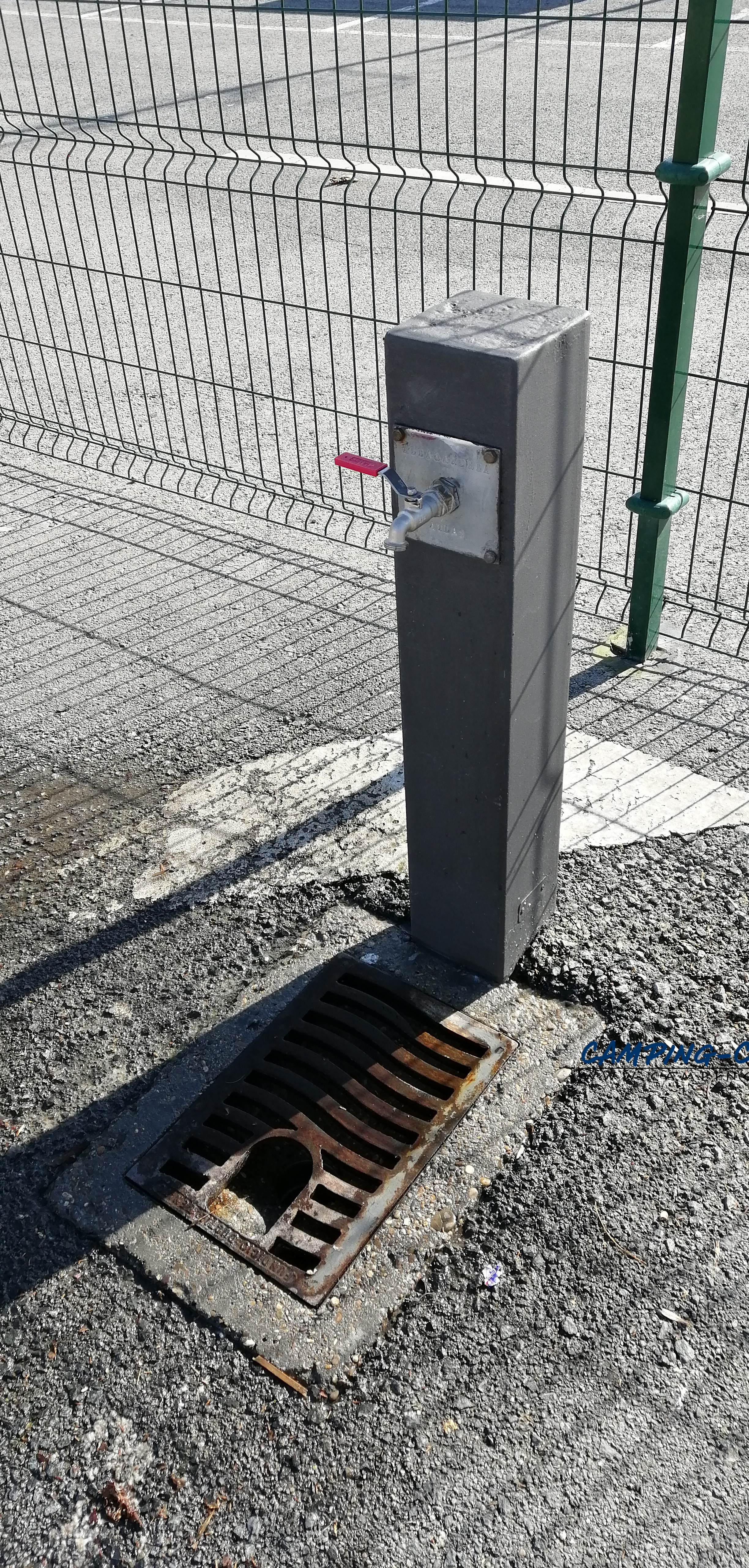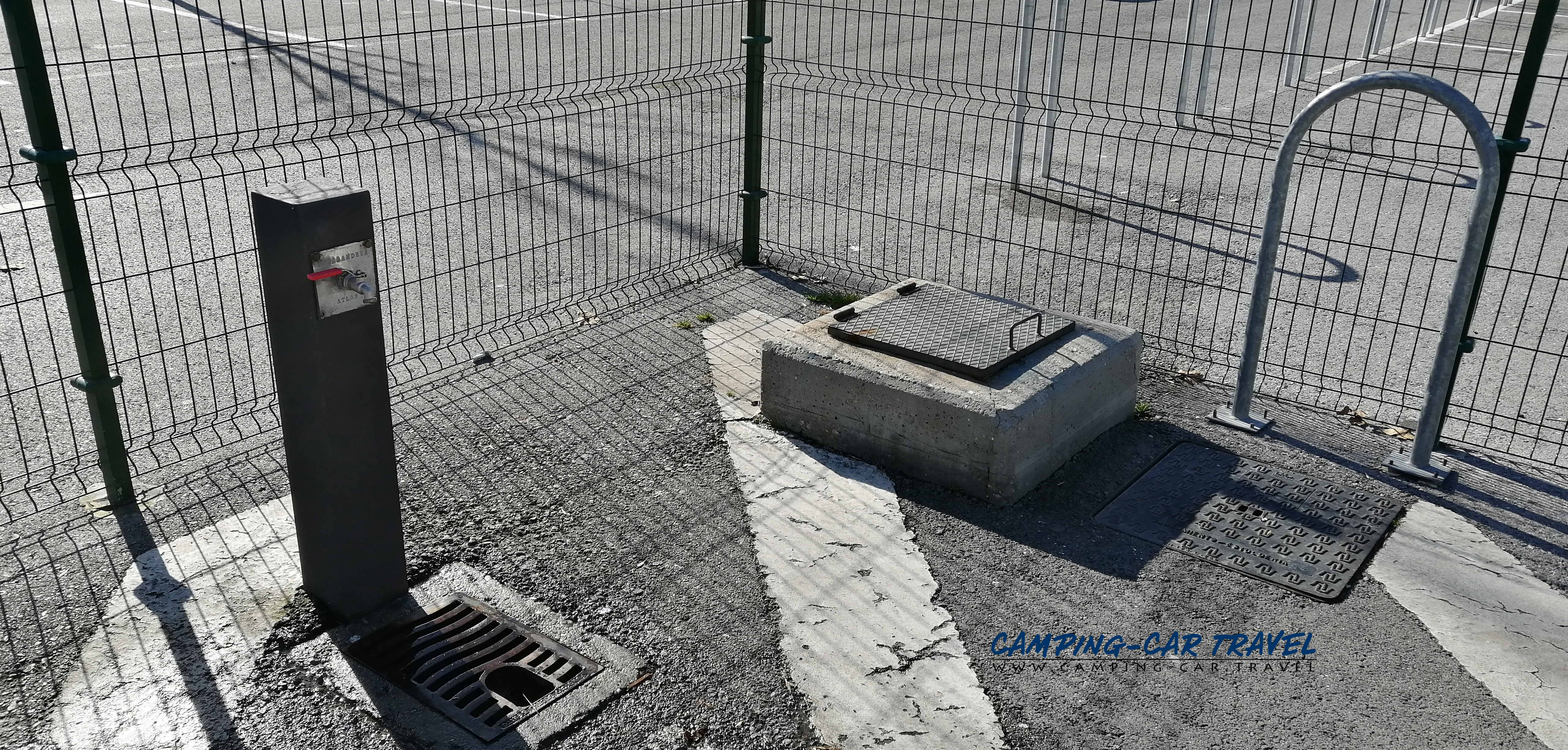 L’aire de services est située sur un grand parking dont une partie est réservée aux camping-cars.
